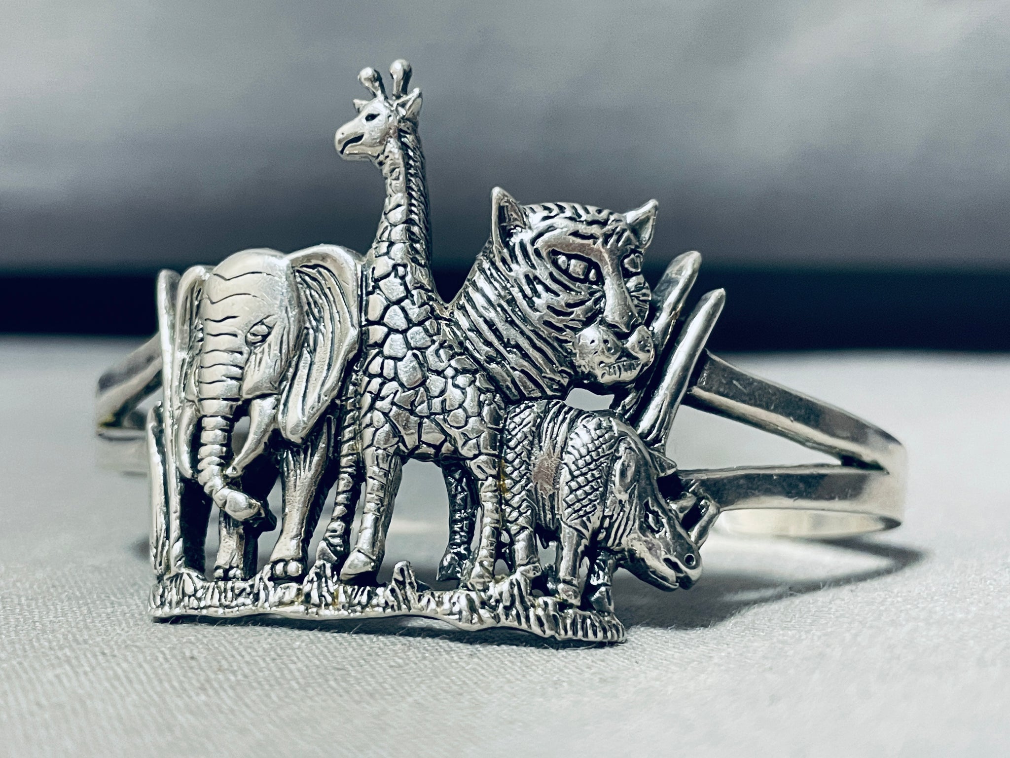 Jaguar Giraffe Rhino Vintage Sterling Silver Animal Bracelet