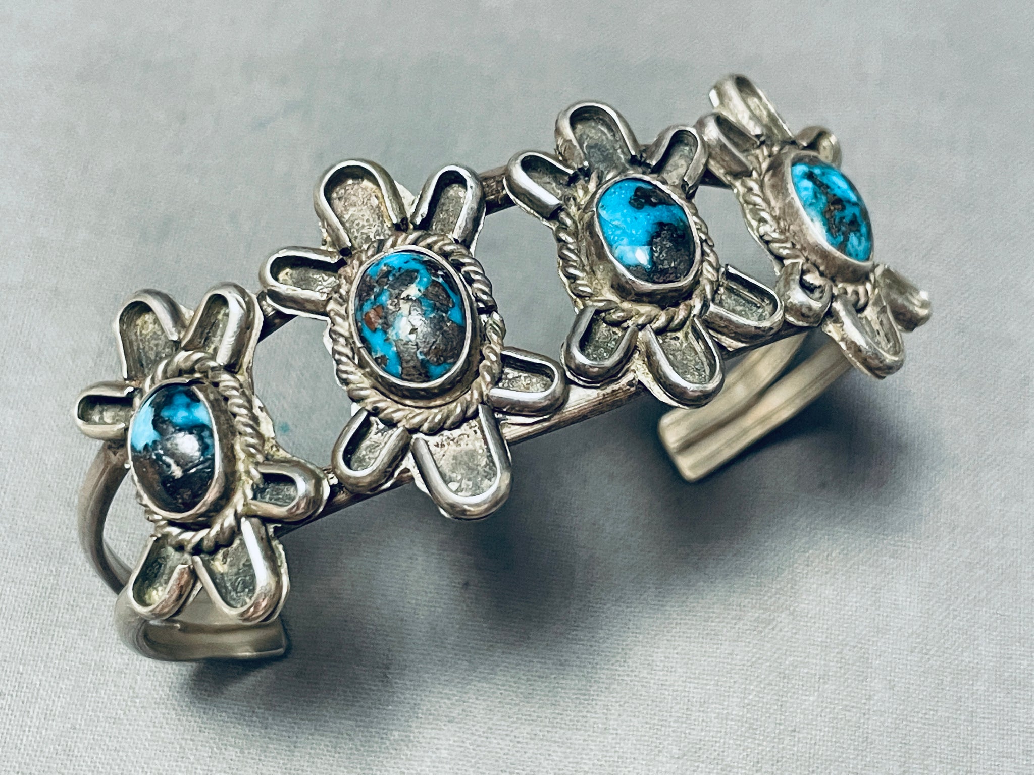 Jaw Dropping Old Bisbee Turquoise Vintage Native American Navajo Sterling Silver Bracelet
