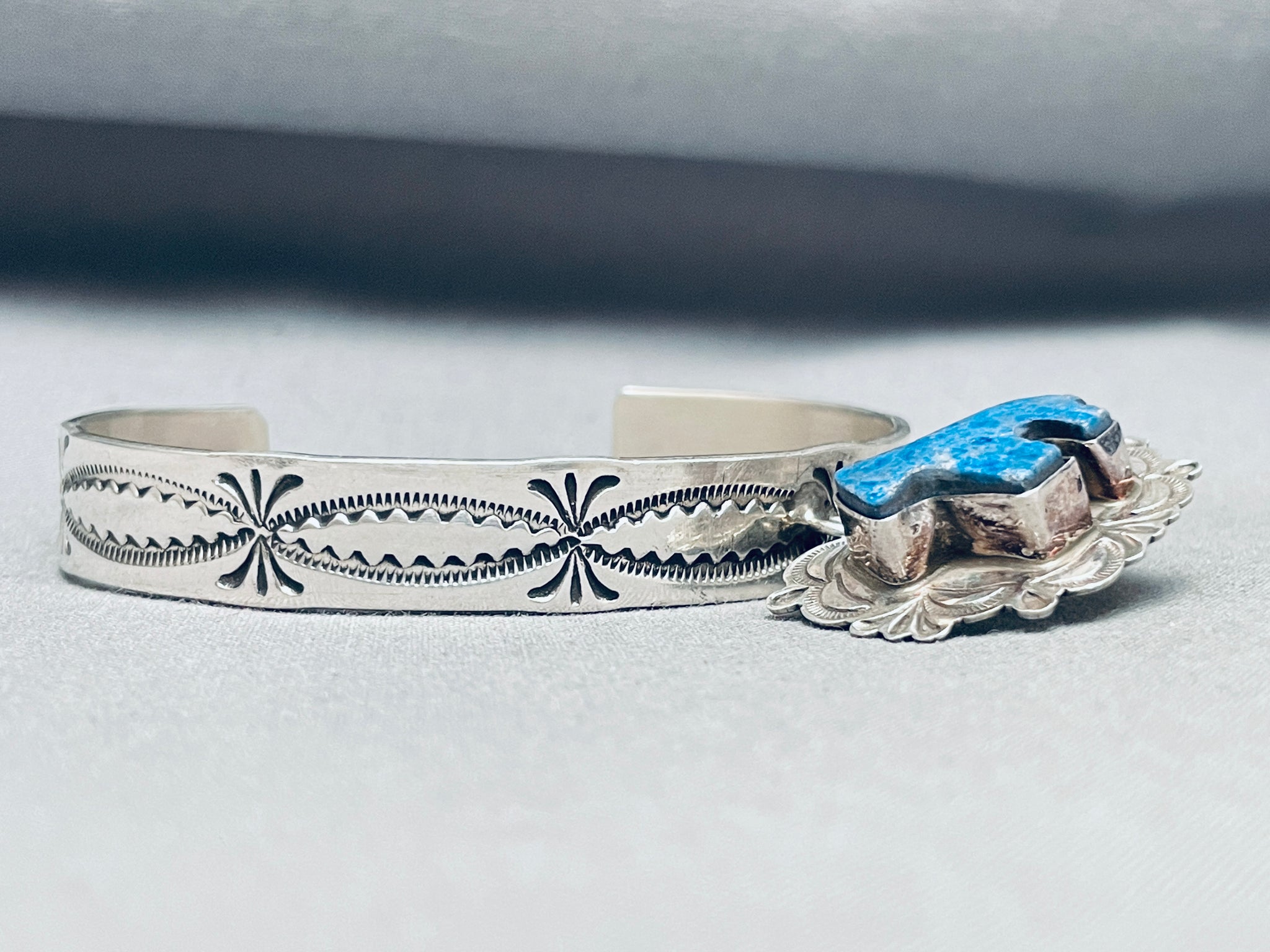 Lapis Bear Vintage Native American Navajo Sterling Silver Charm Bracelet!