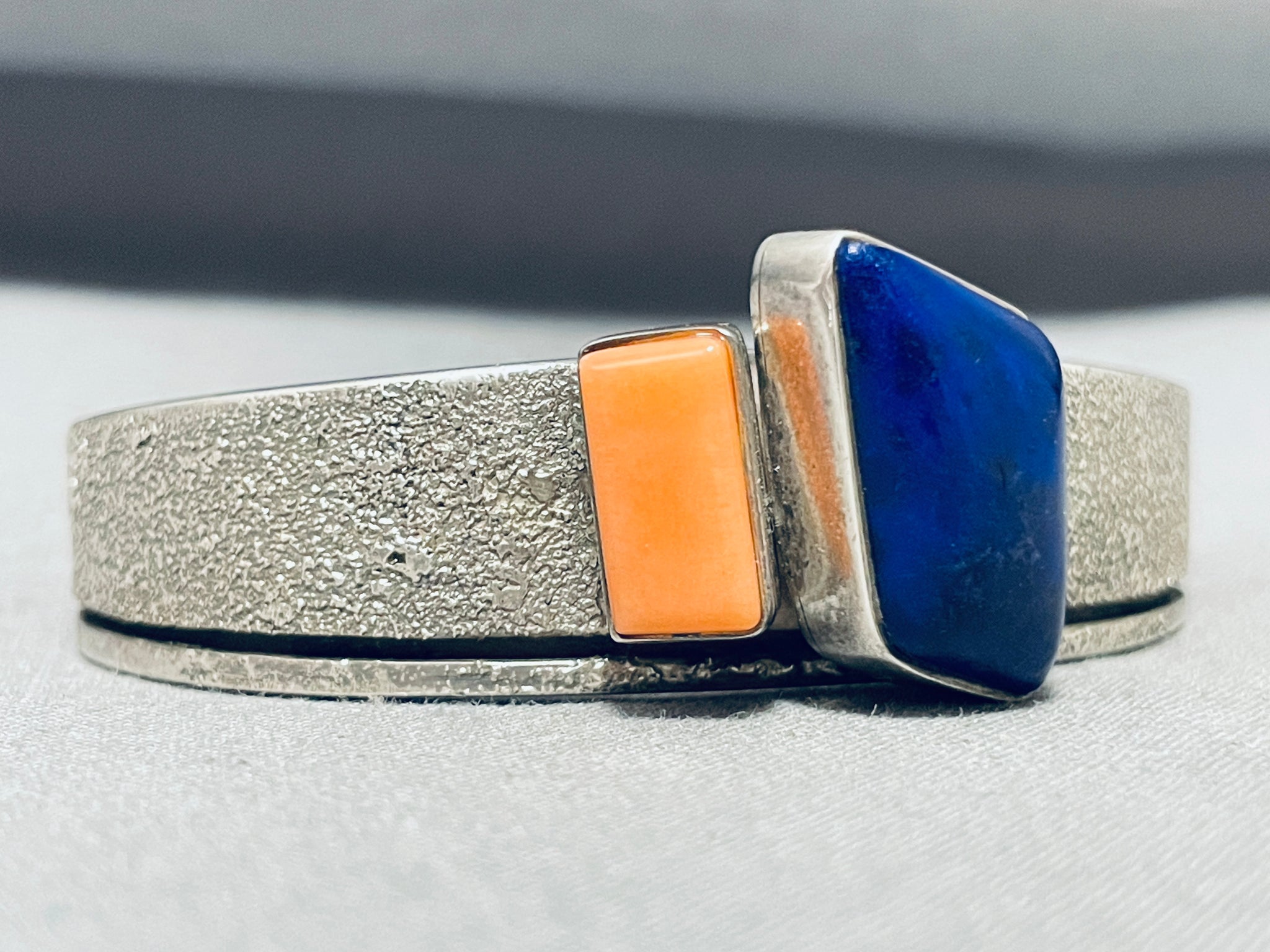 Larry Begay Vintage Native American Navajo Lapis Sterling Silver Bracelet