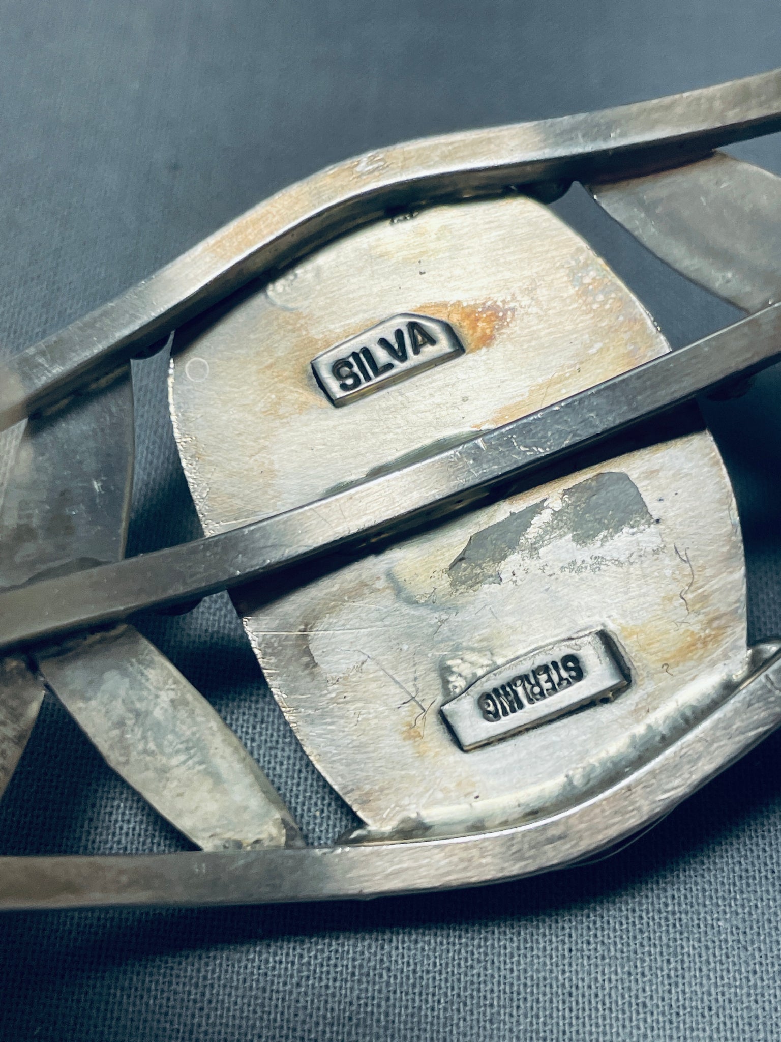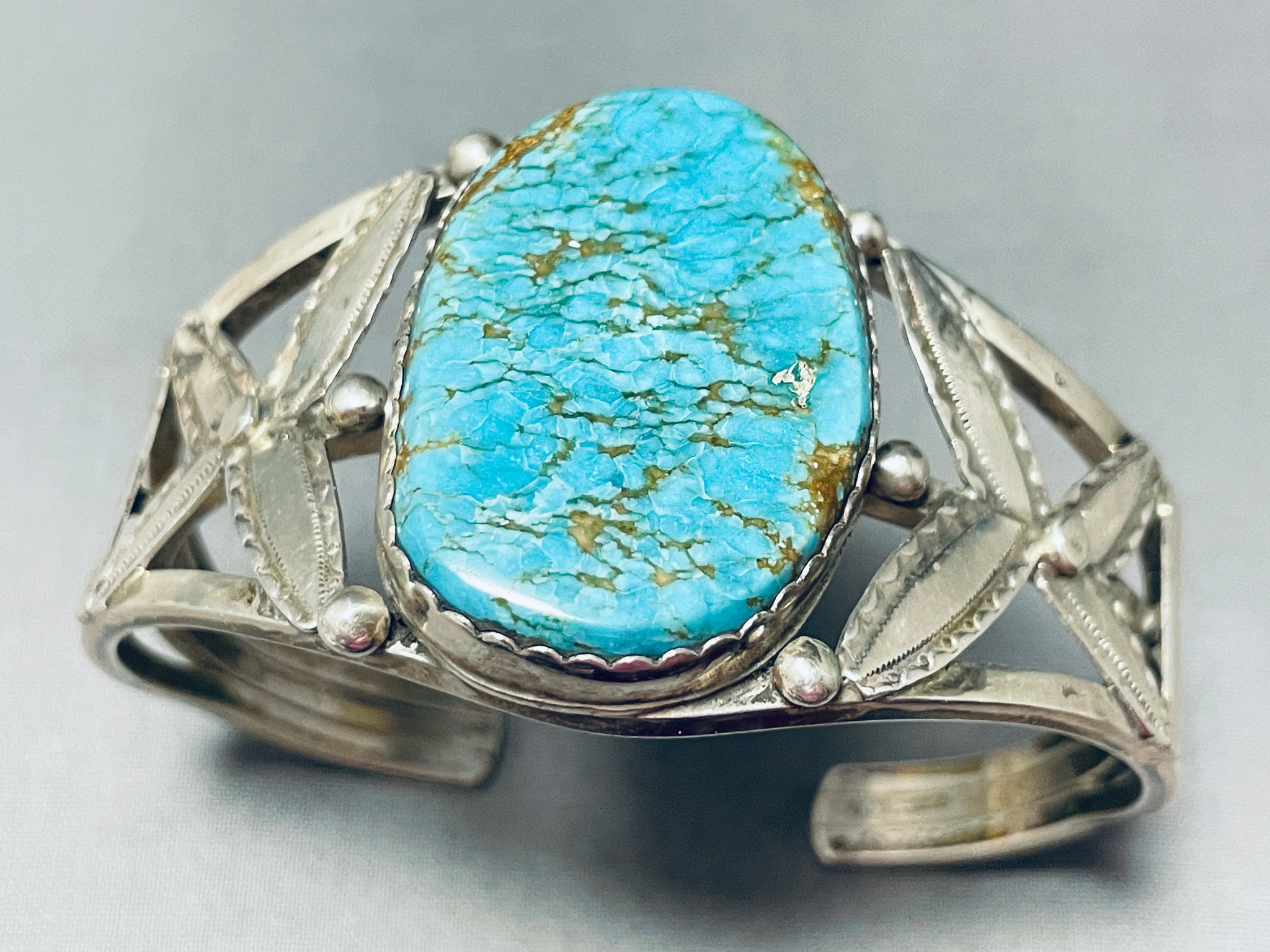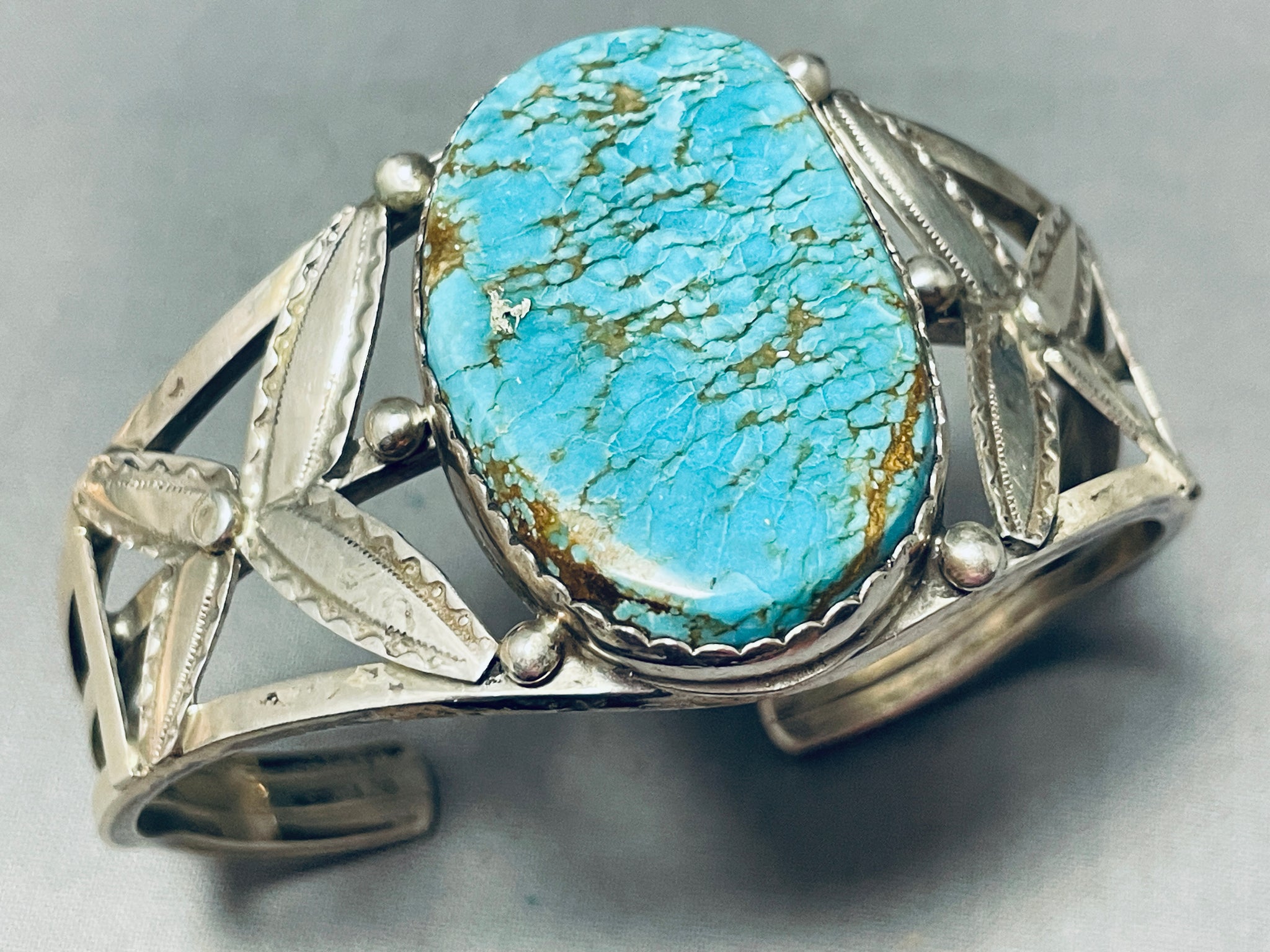 Leaf Flanks Vintage Native American Navajo Old Deposit #8 Turquoise Sterling Silver Bracelet