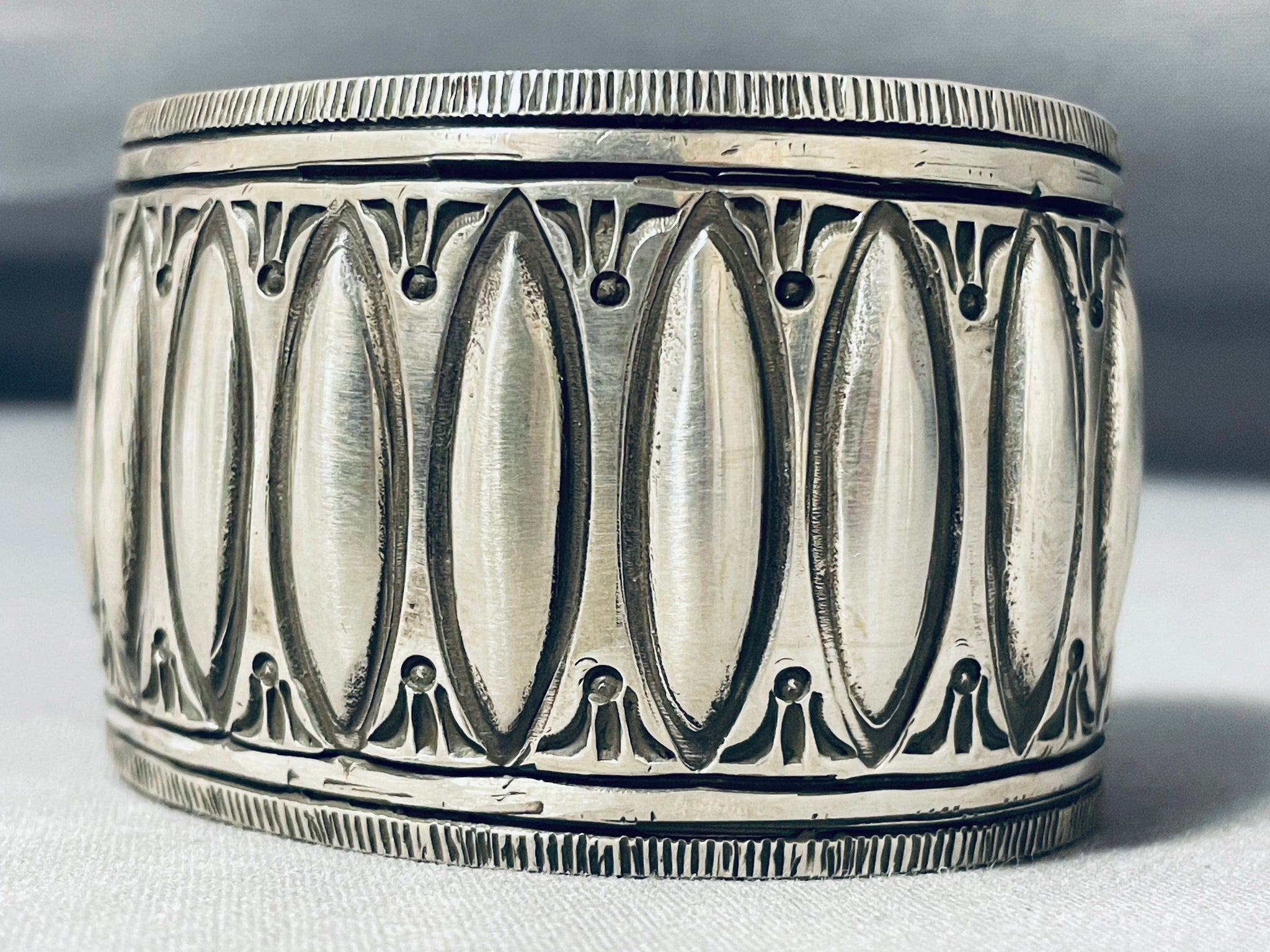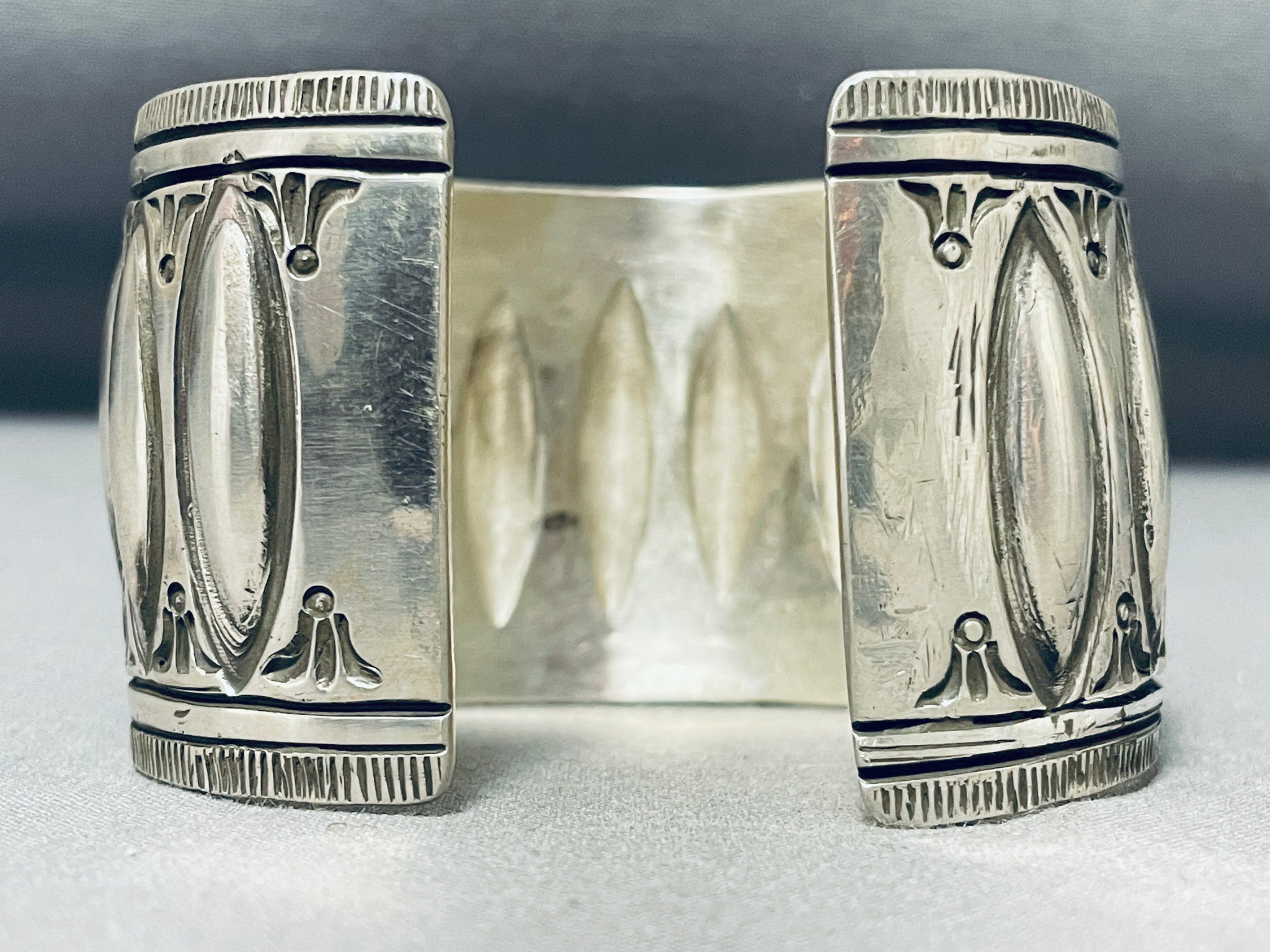 Long Shell One Of A Kind Vintage Native American Navajo Hand Tooled Sterling Silver Bracelet