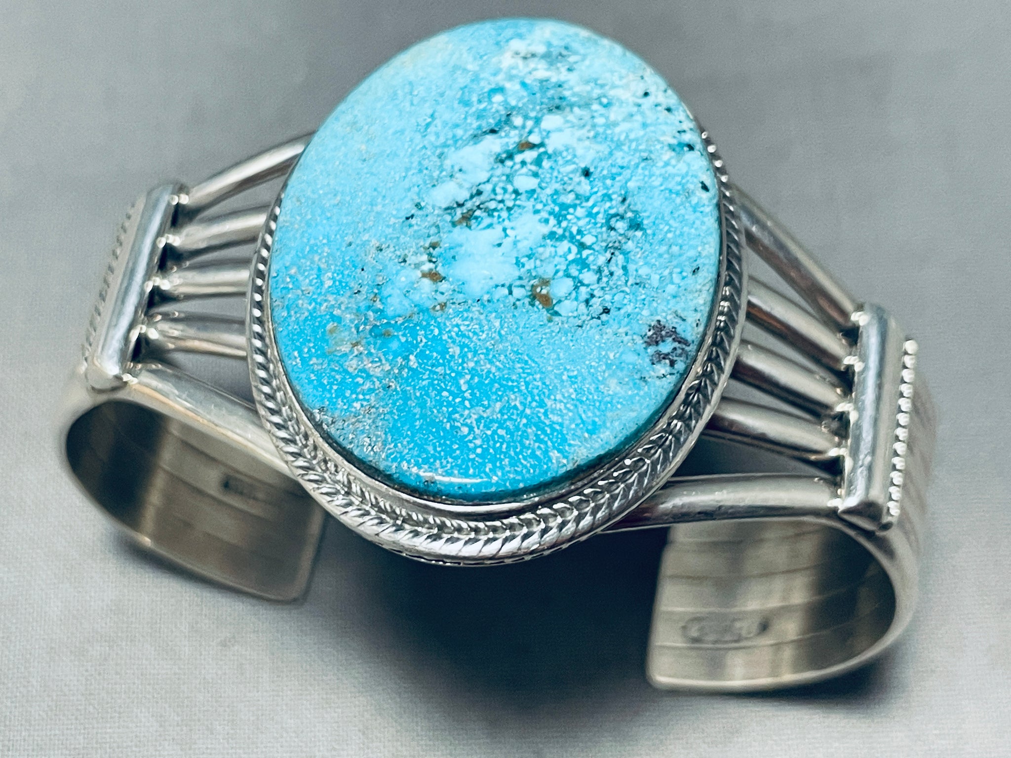 Majestic Vintage Signed Native American Navajo Blue Diamond Turquoise Sterling Silver Bracelet