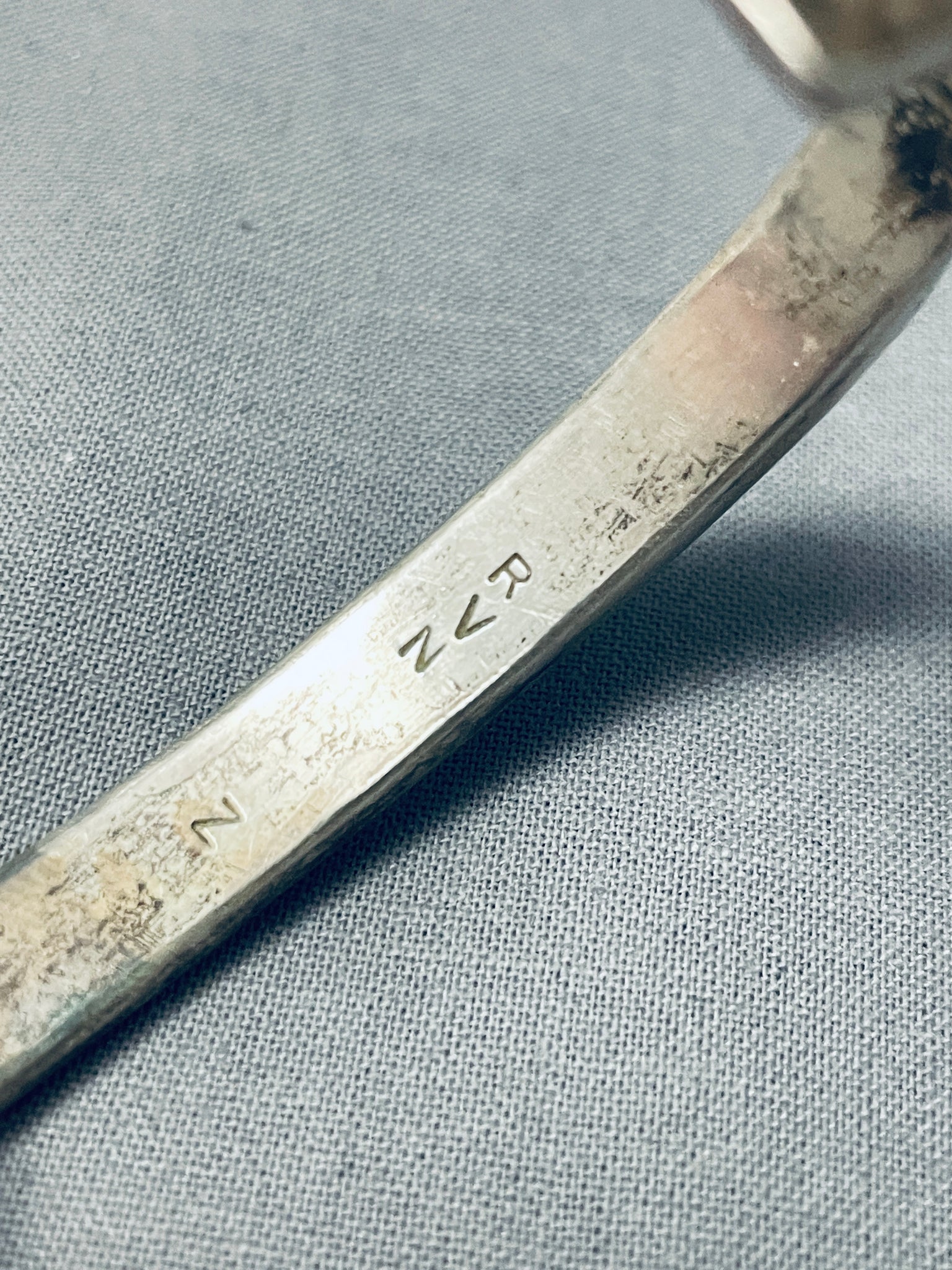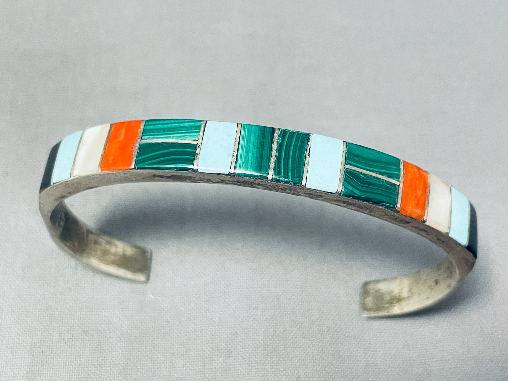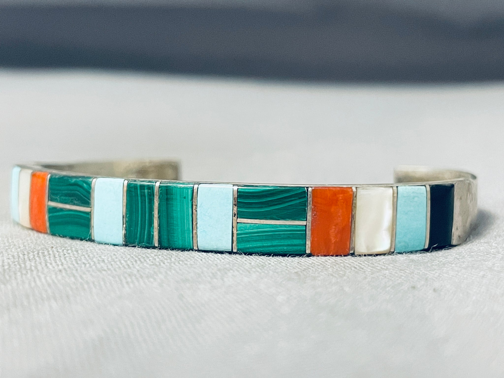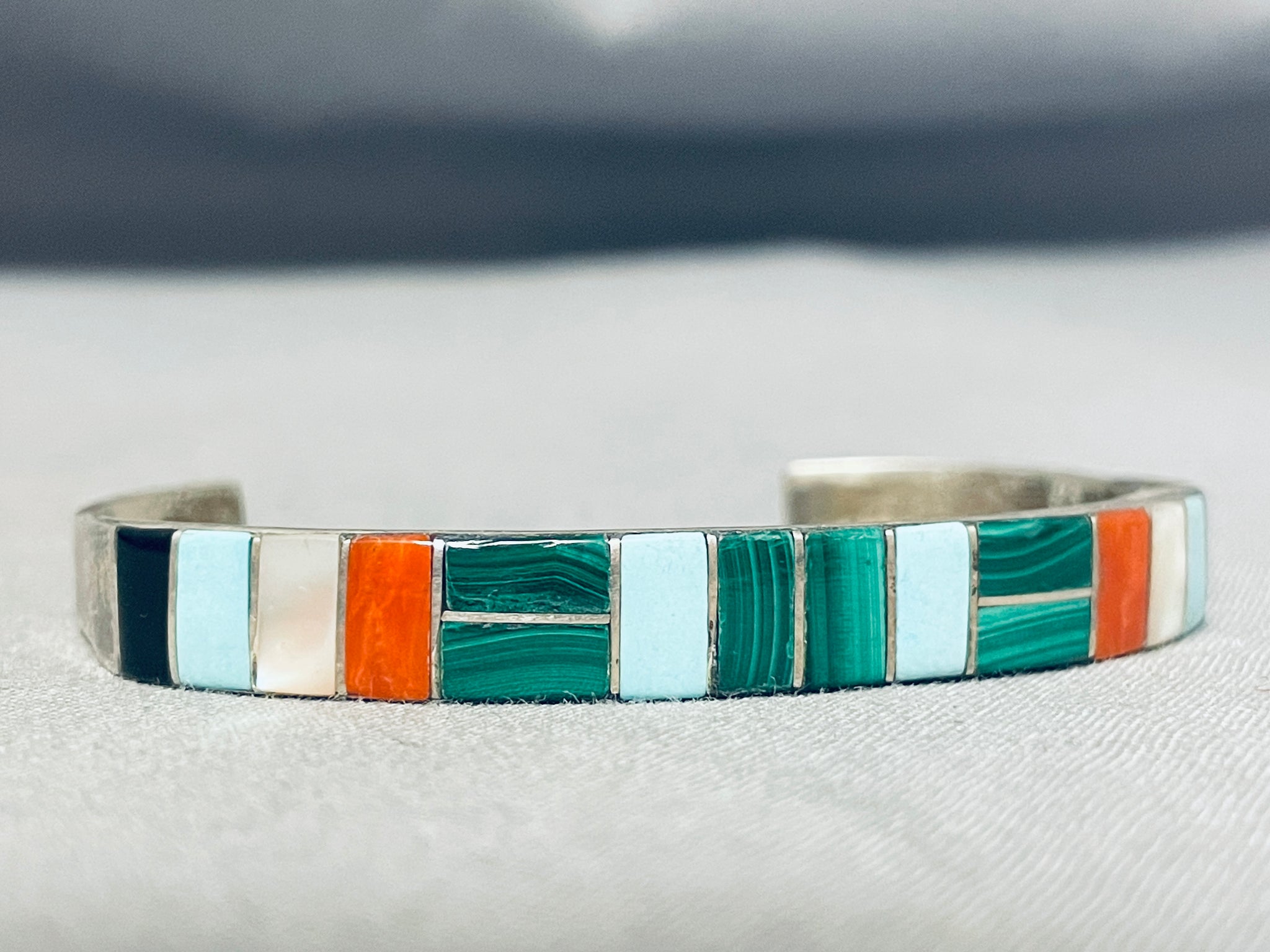 Marvelous Vintage Native American Navajo Malachite Sterling Silver Bracelet Signed