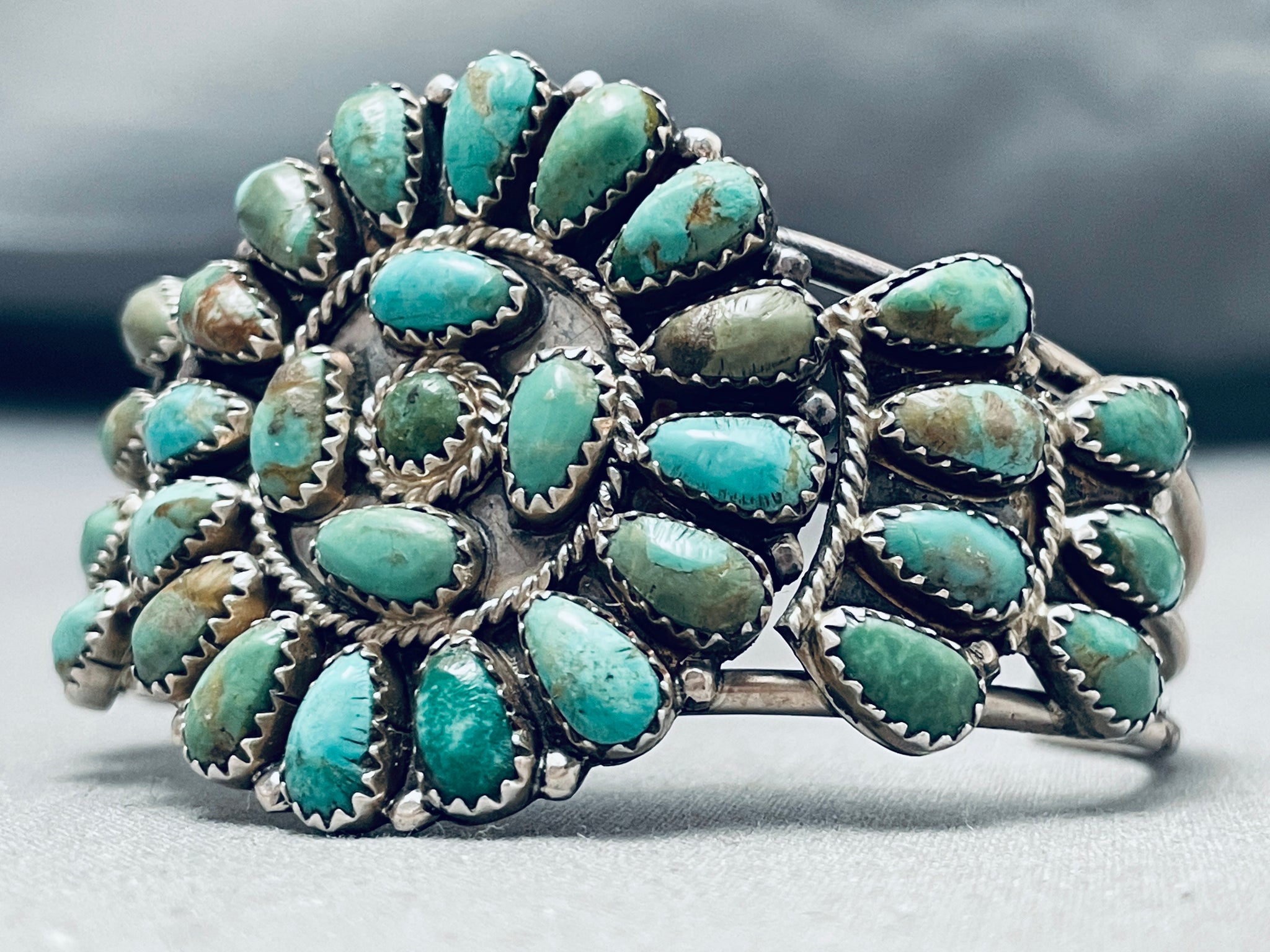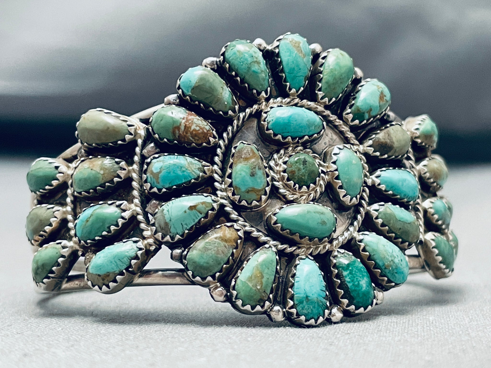 Marvelous Vintage Native American Zuni Turquoise Sterling Silver Cluster Bracelet