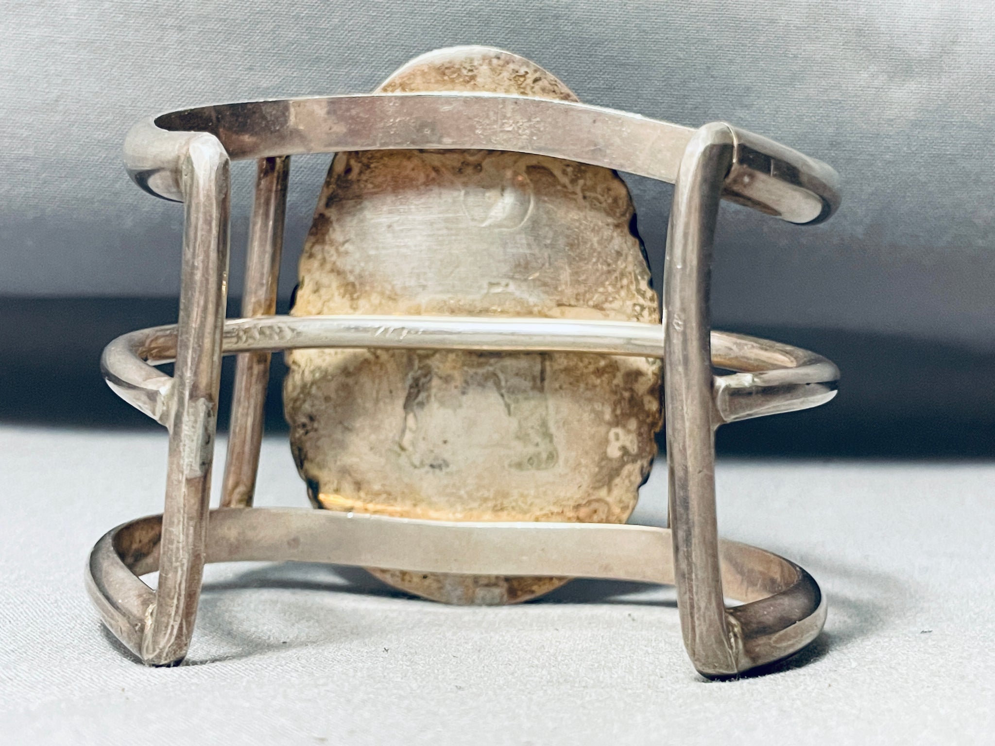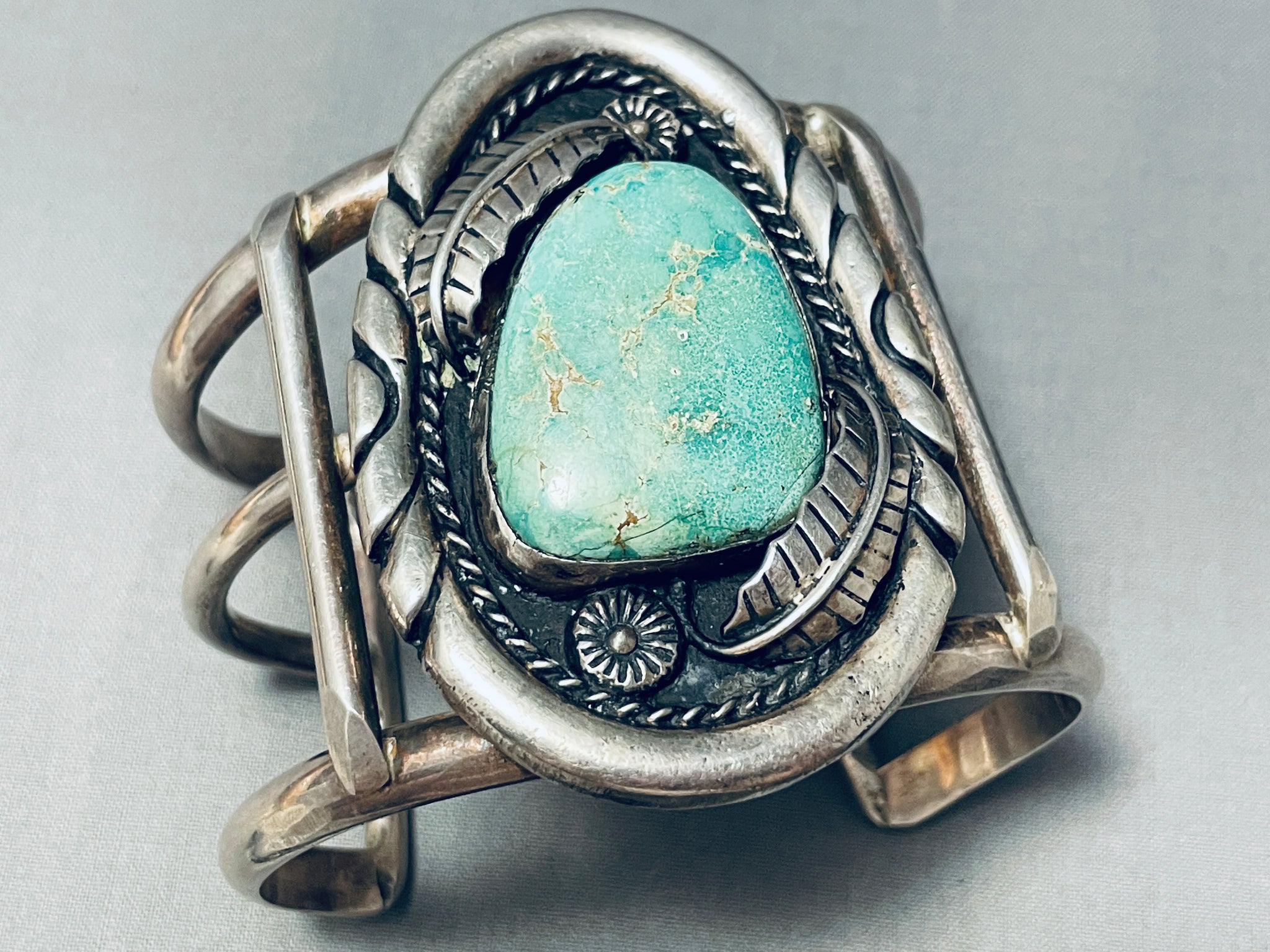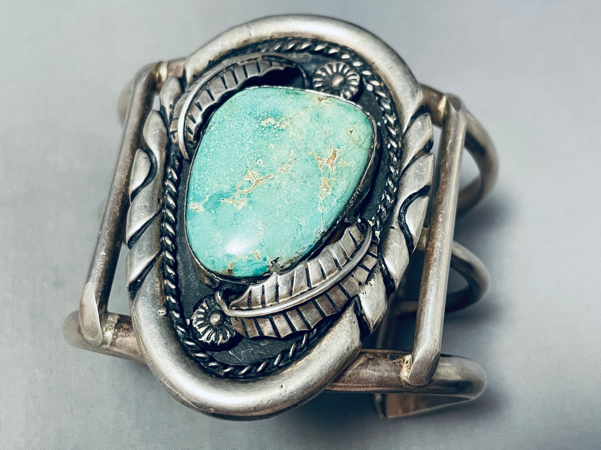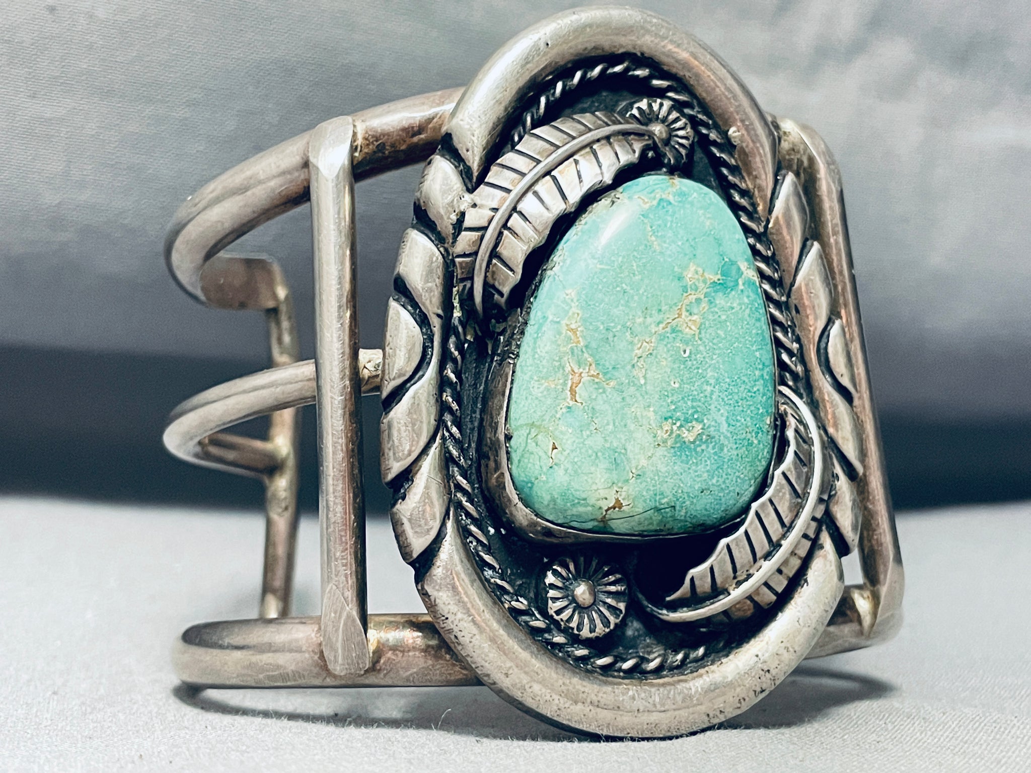Massive 172 Gram Vintage Native American Navajo Green Turquoise Sterling Silver Bracelet Old