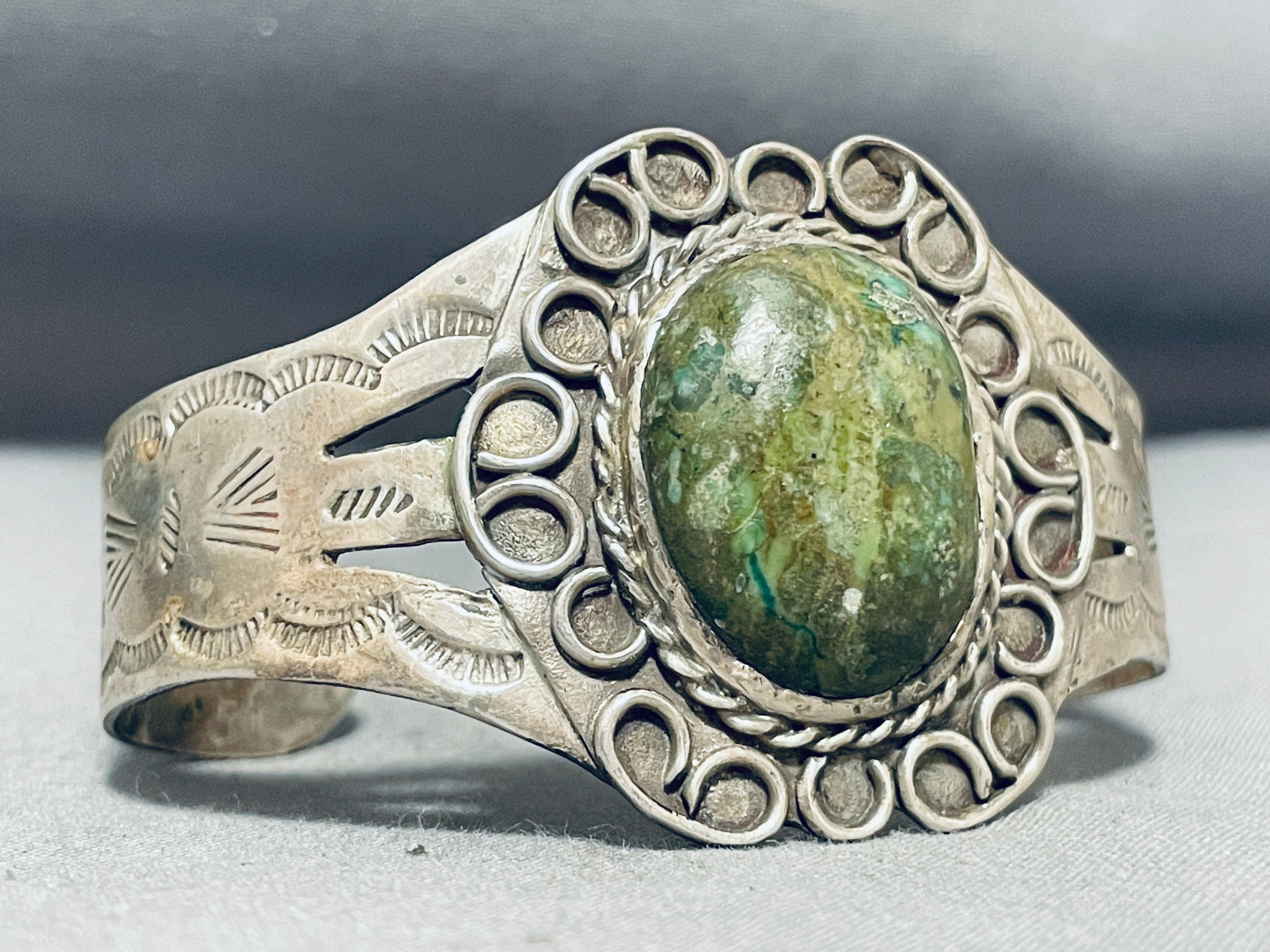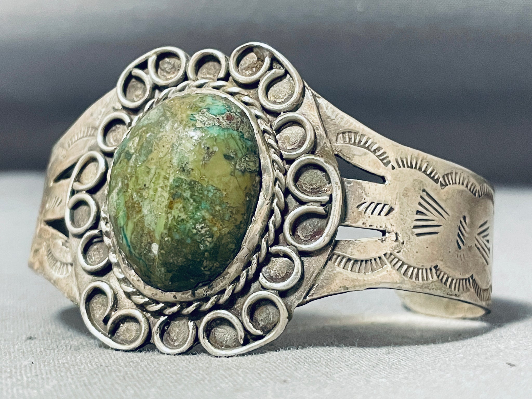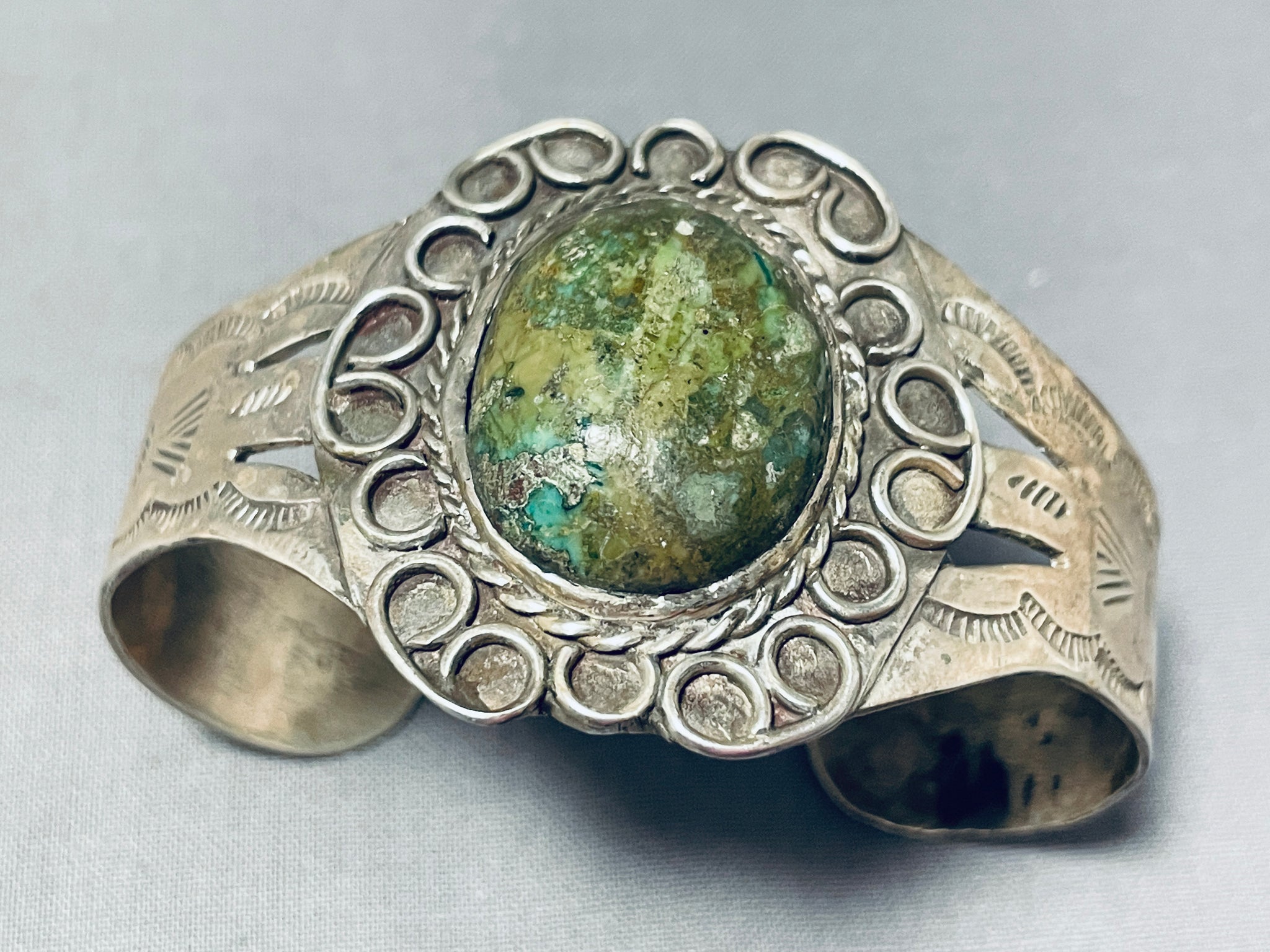 Mesmerizing Vintage Native American Navajo Huge Green Turquoise Sterling Silver Bracelet