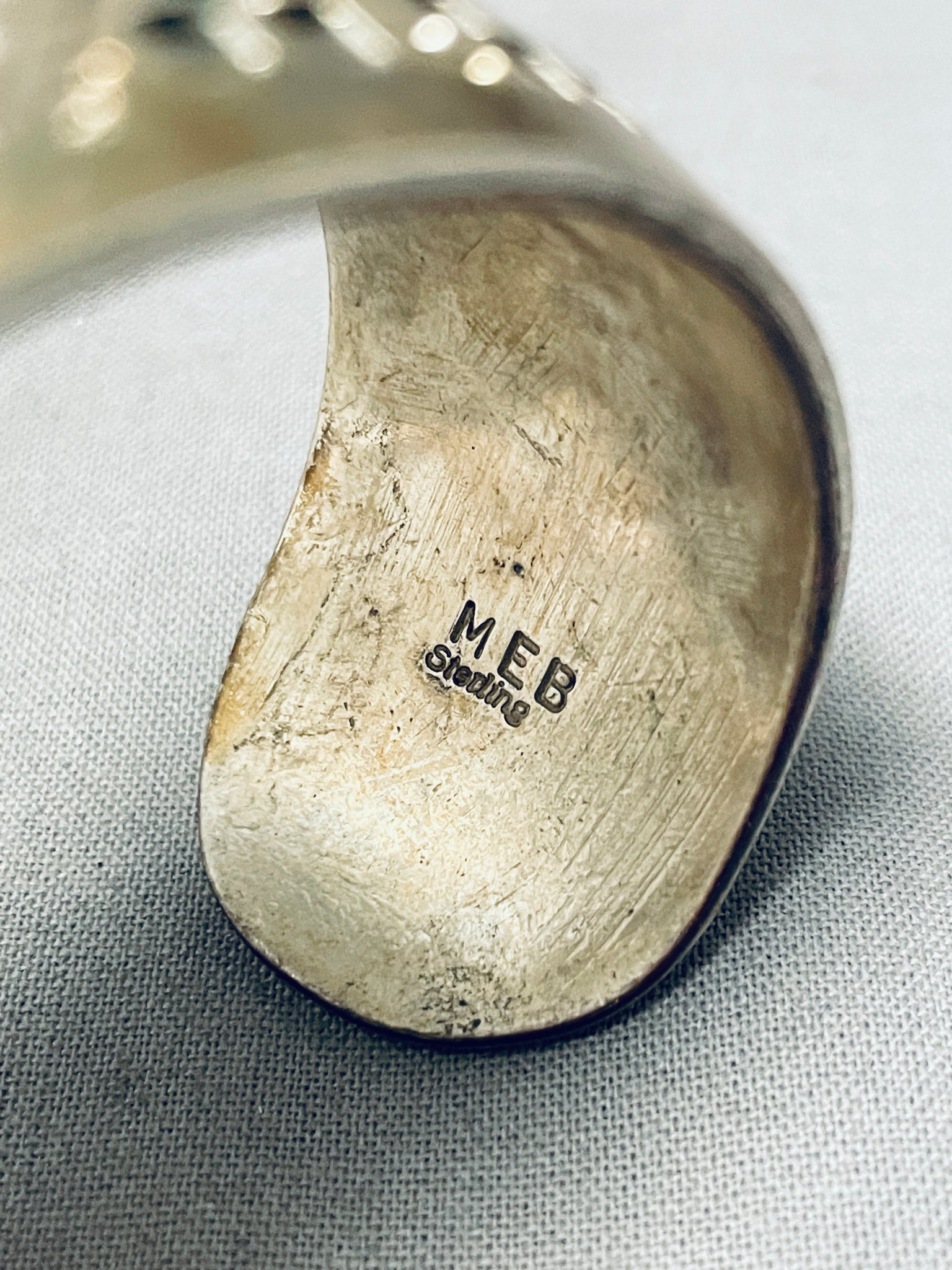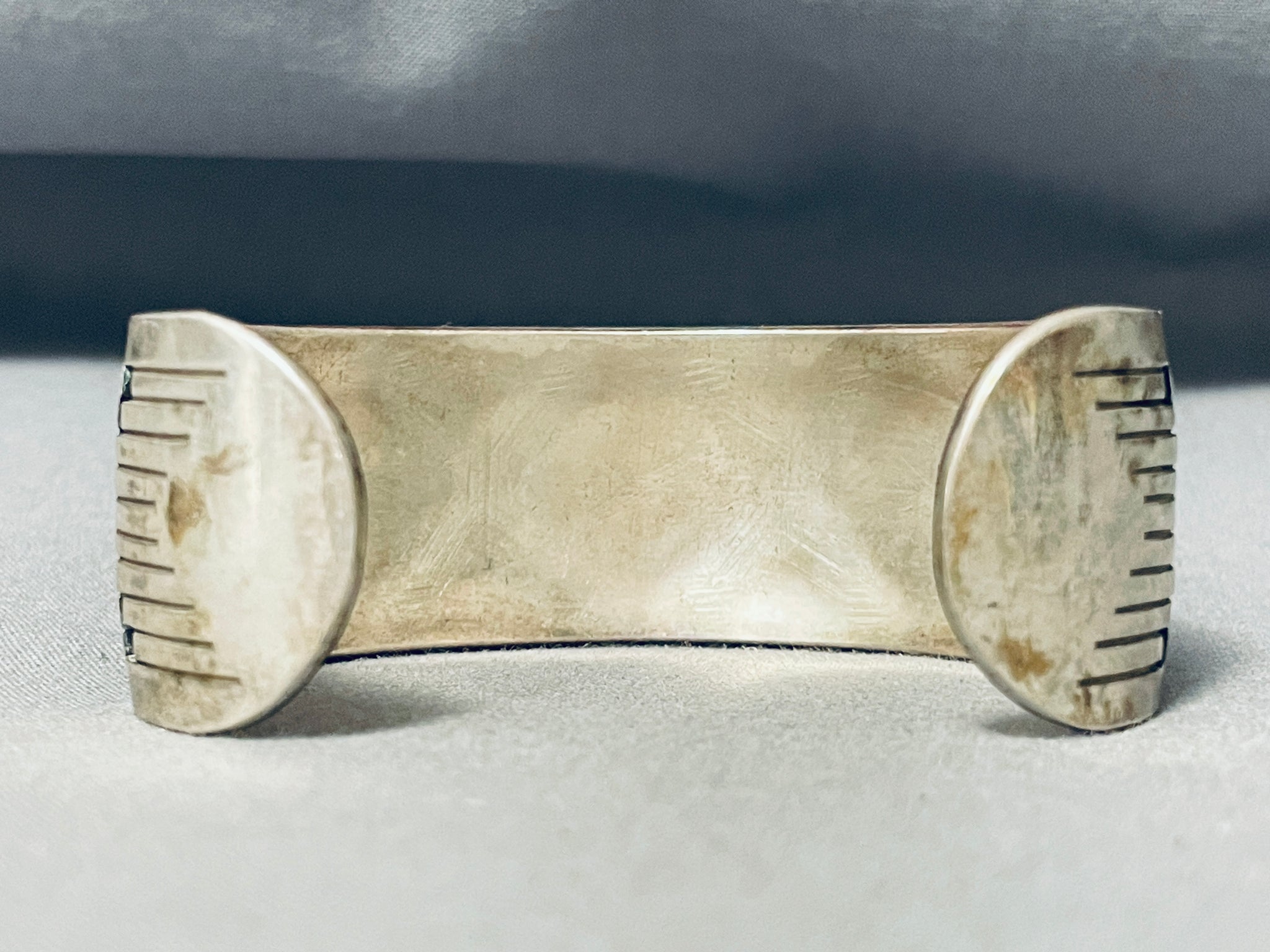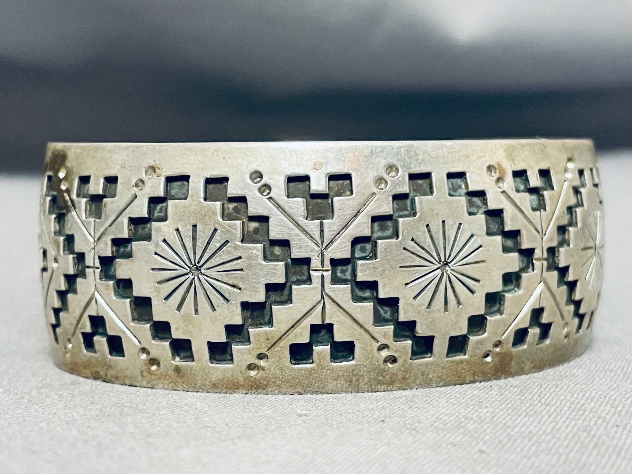 Mesmerizing Vintage Native American Navajo Sterling Silver Rug Designs Large Bracelet
