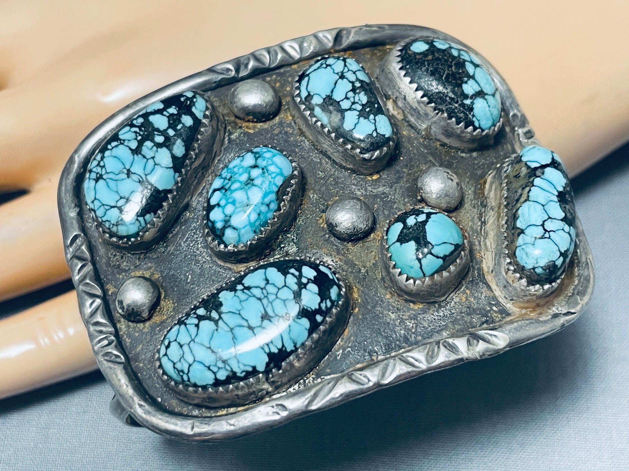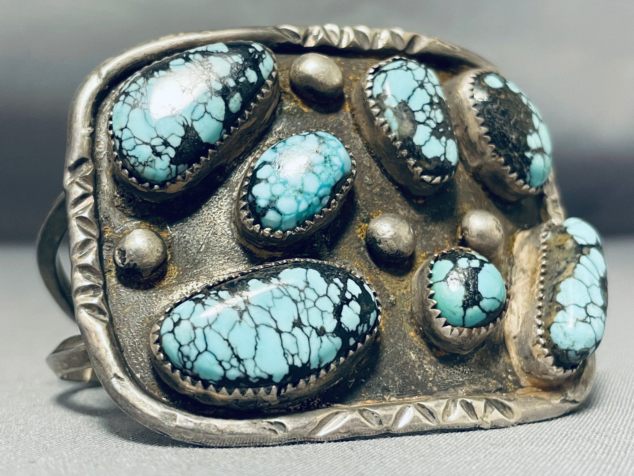 Museum Blue Wind Turquoise Vintage Native American Navajo Sterling Silver Bracelet
