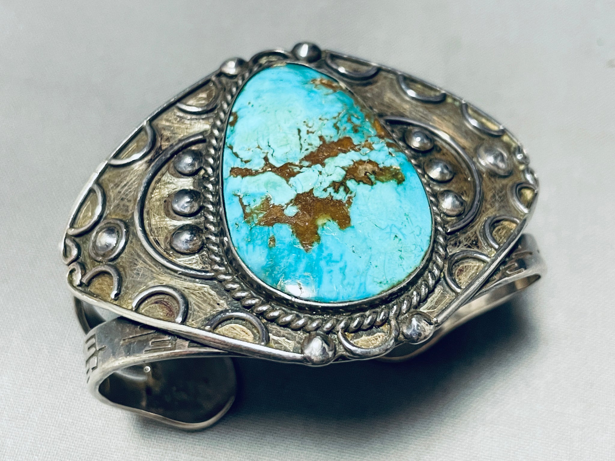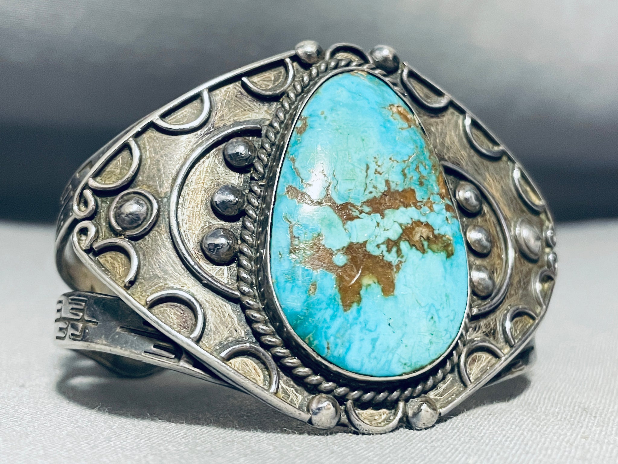 Museum Quality Early Vintage Native American Navajo Turquoise Sterling Silver Bracelet