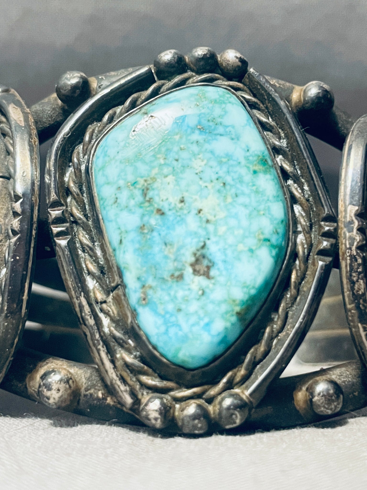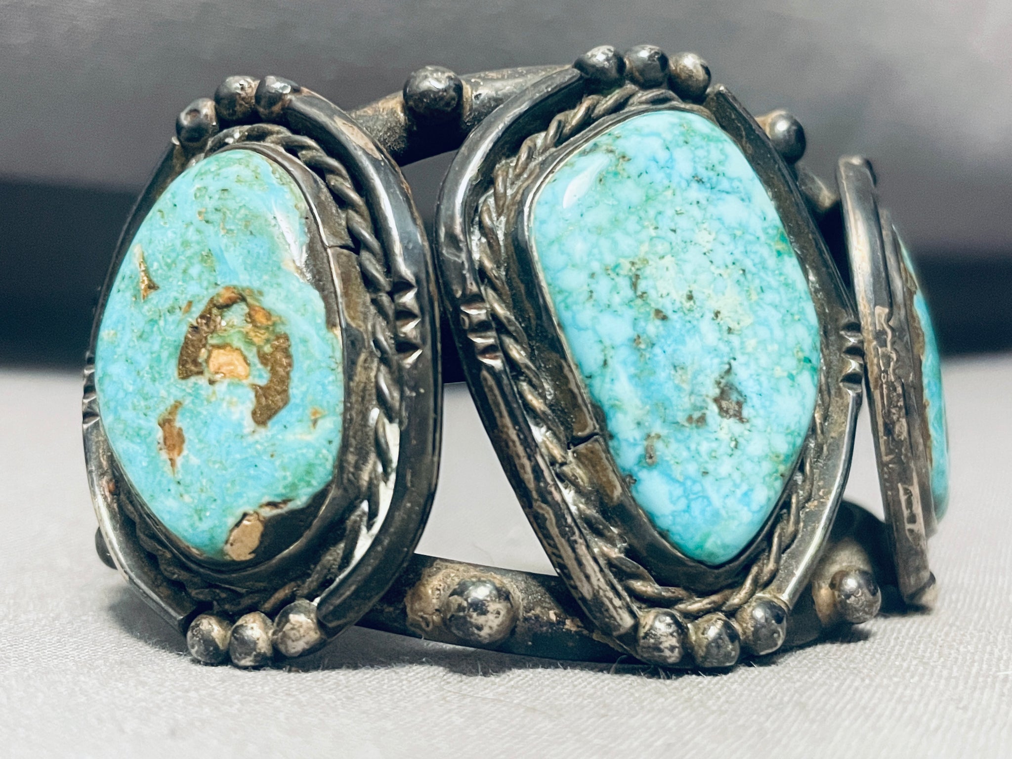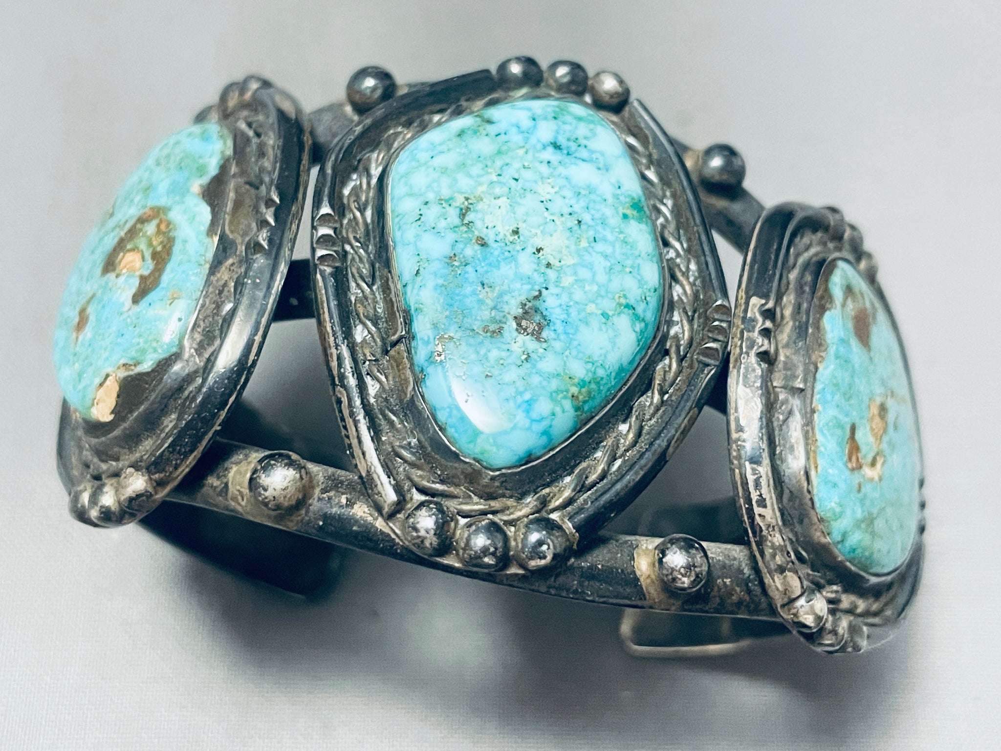 Museum Quality Vintage Native American Navajo Cairoc Lake Turquoise Sterling Silver Bracelet