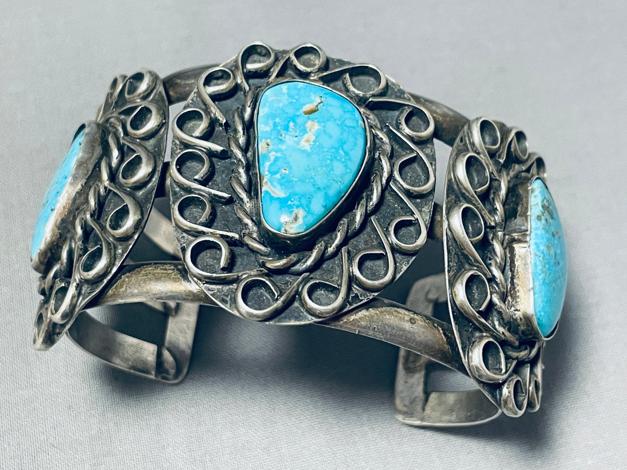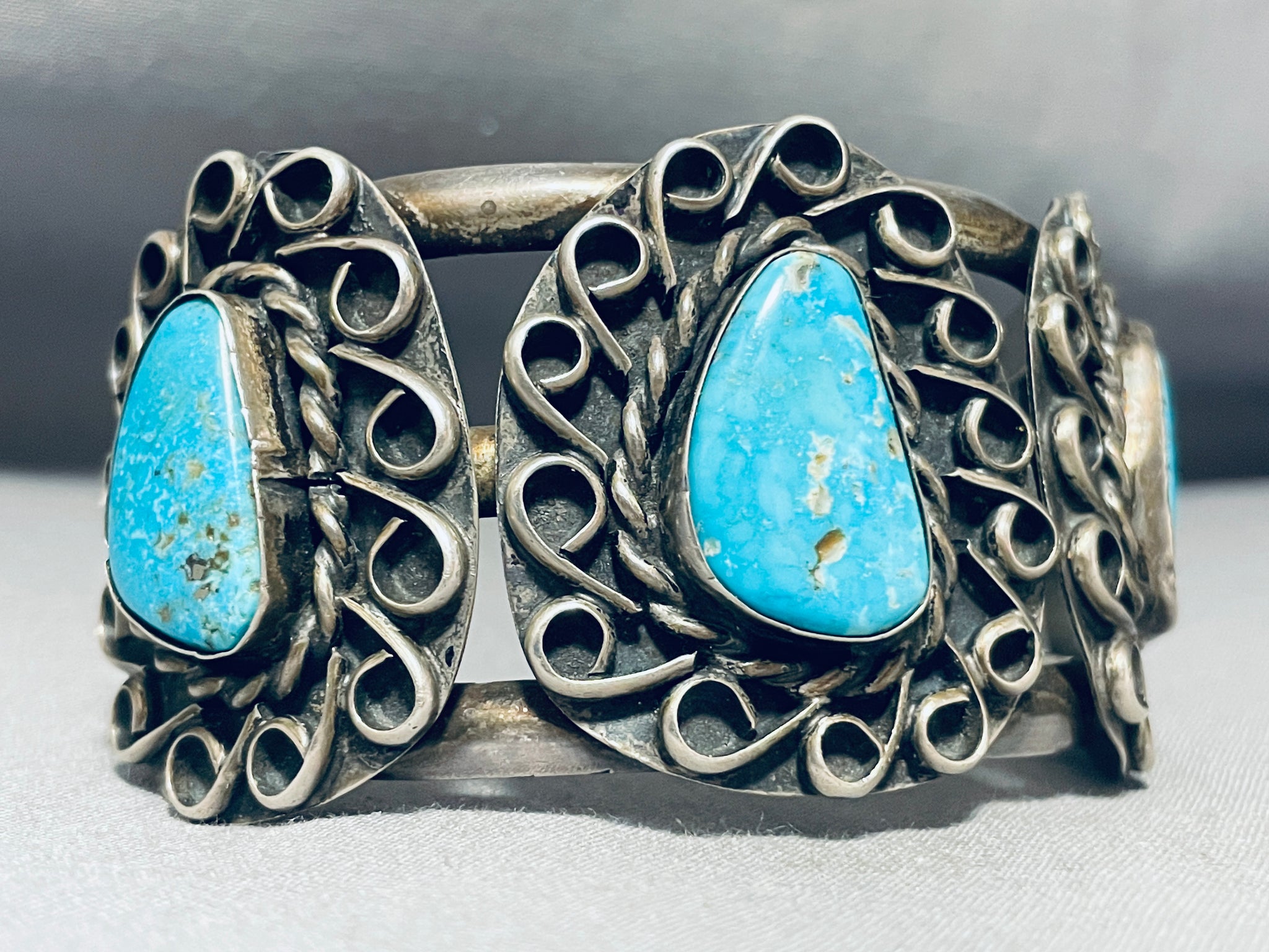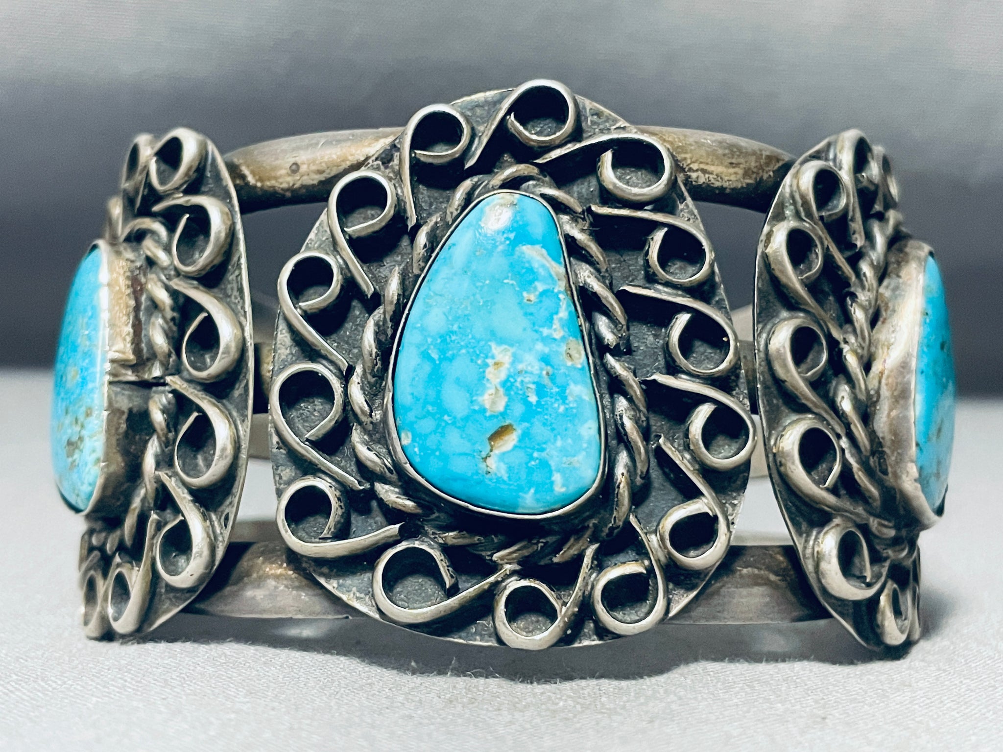 Museum Swirl Vintage Native American Navajo Blue Turquoise Sterling Silver Bracelet