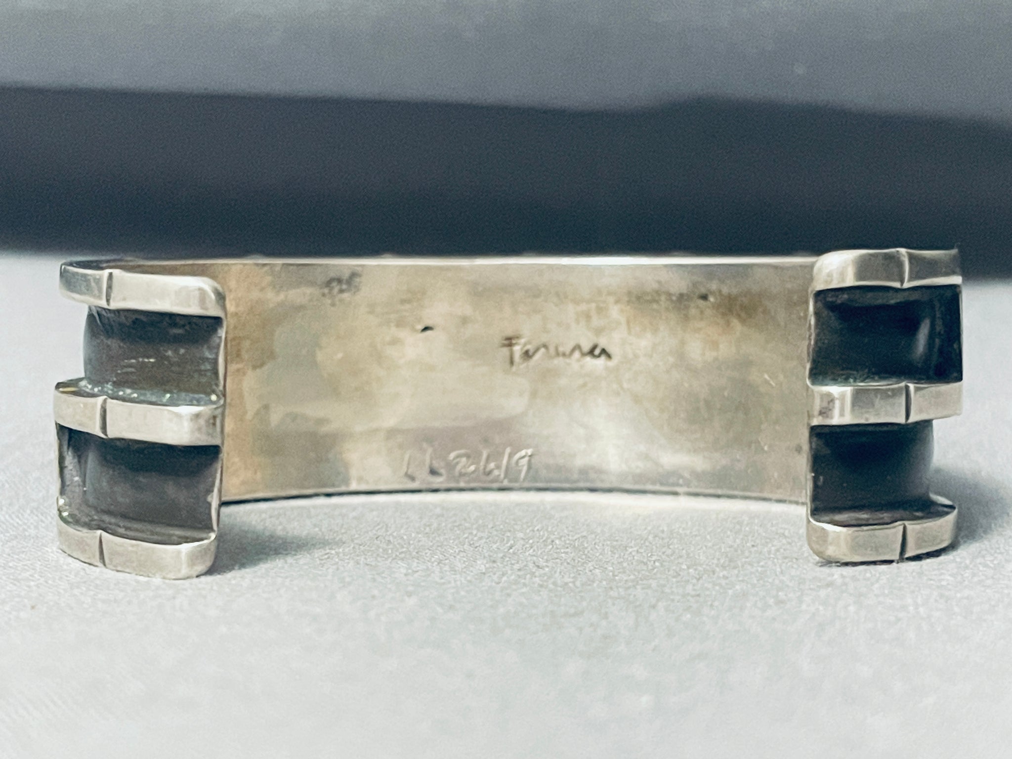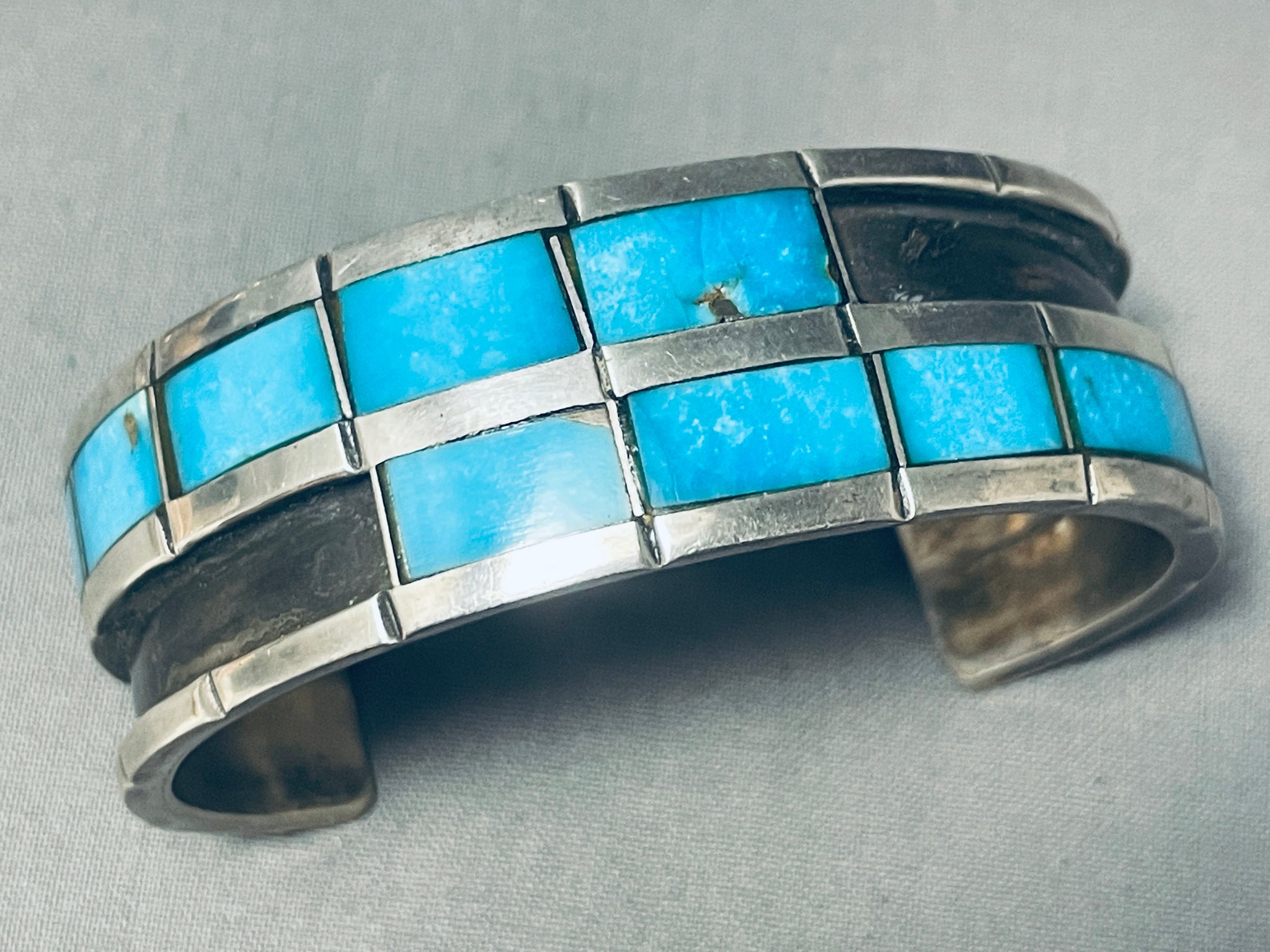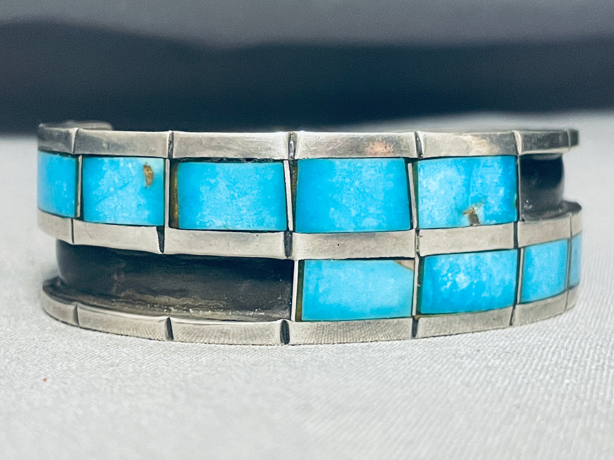 Native American 6-1/2 Wrist Vintage Navajo Turquoise Inlay Sterling Silver Bracelet Cuff Old