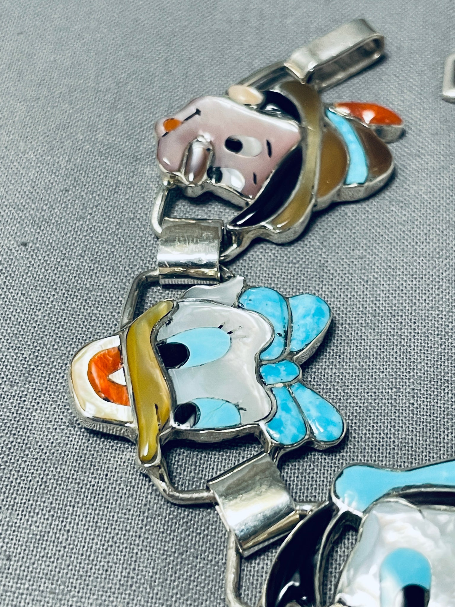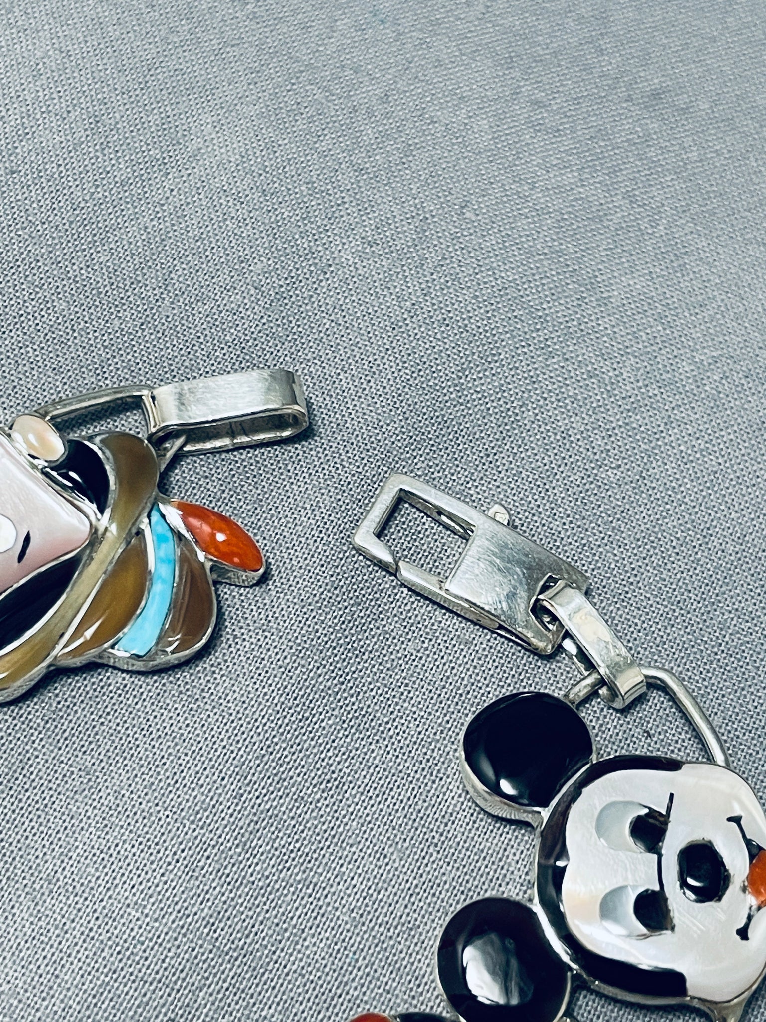 Native American Important Zuni Disney Turquoise Sterling Silver Sham Bracelet