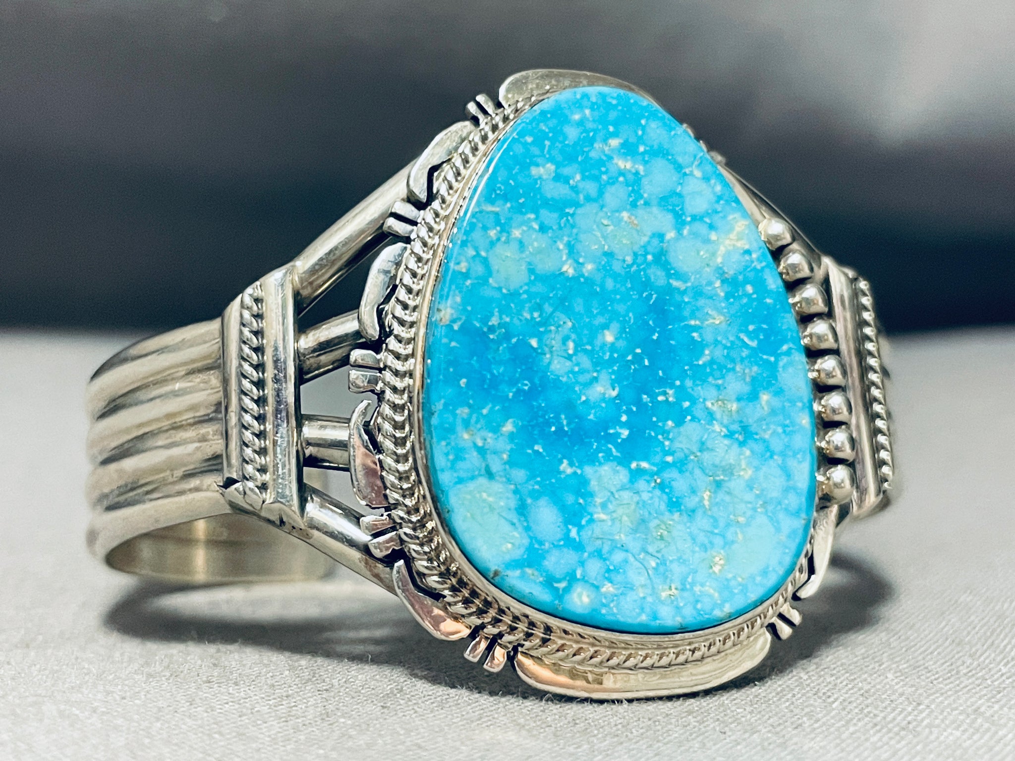Native American Ocean Blue Navajo Jerr Nelson Sterling Silver Bracelet Cuff