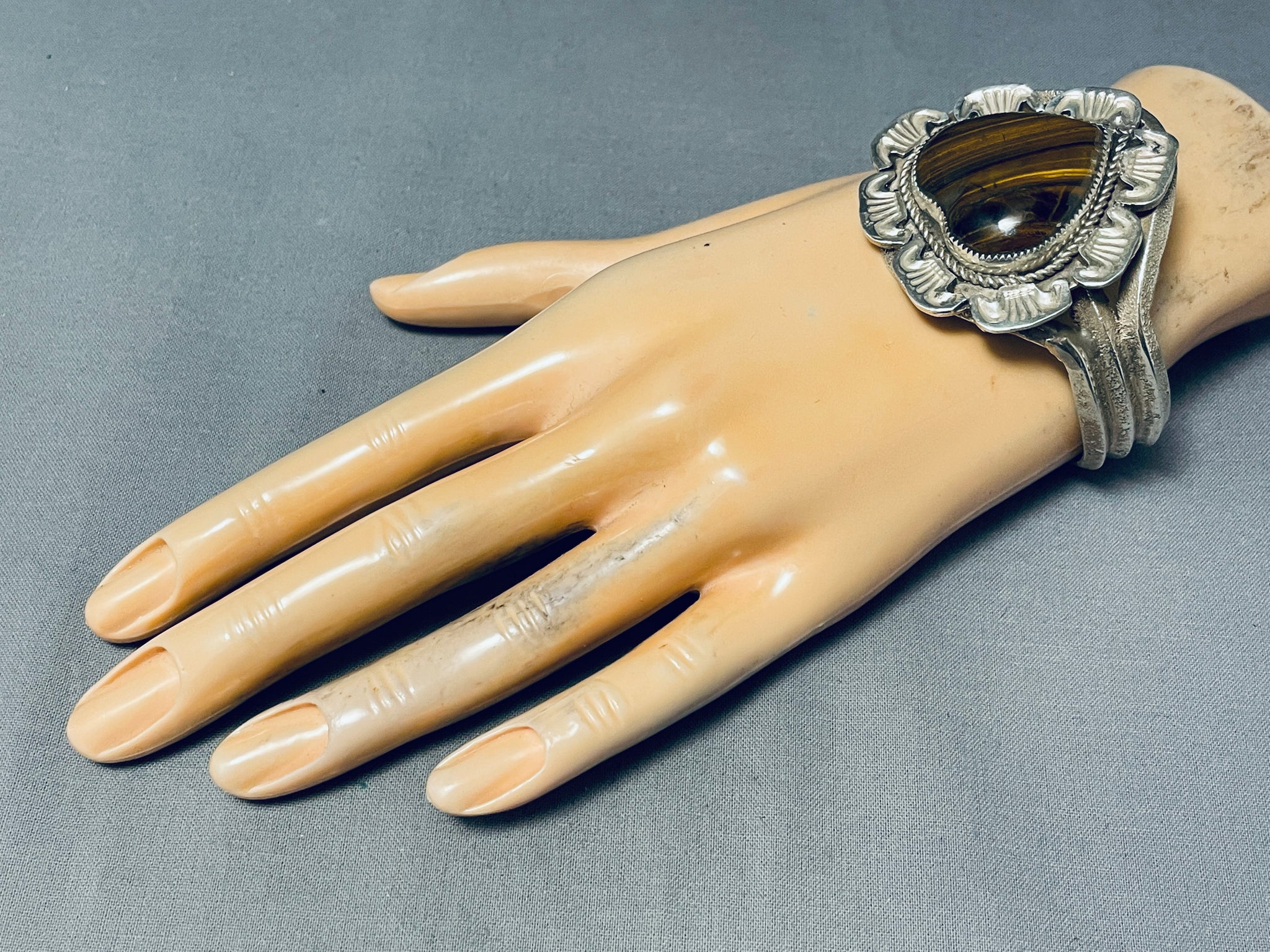 Native American Very Rare Tigers Eye Vintage Navajo Sterling Silver Bracelet
