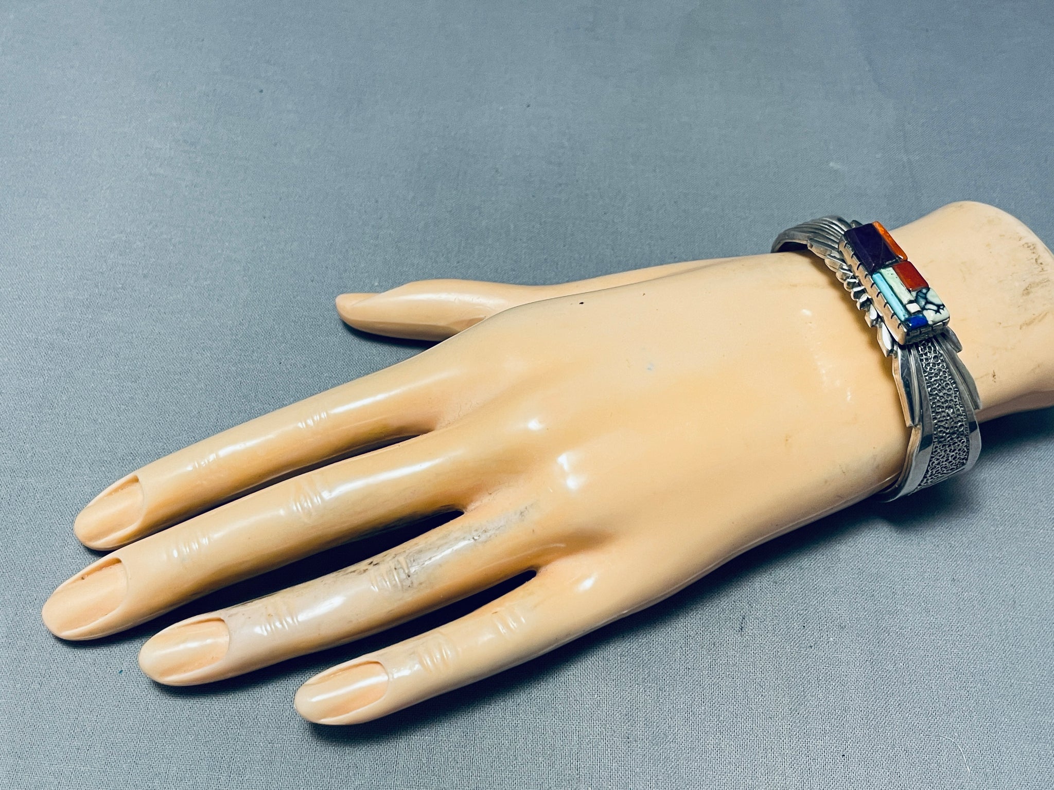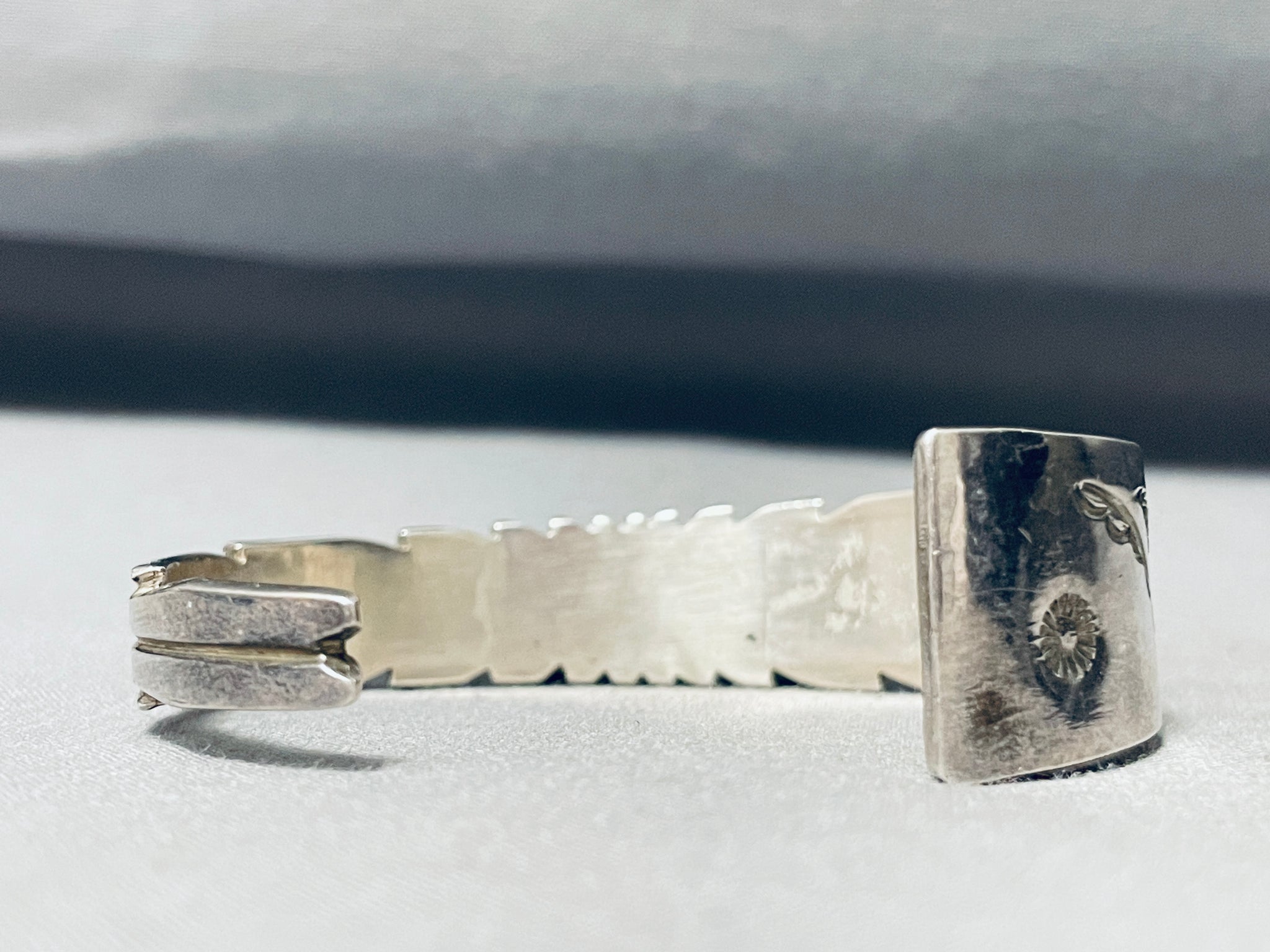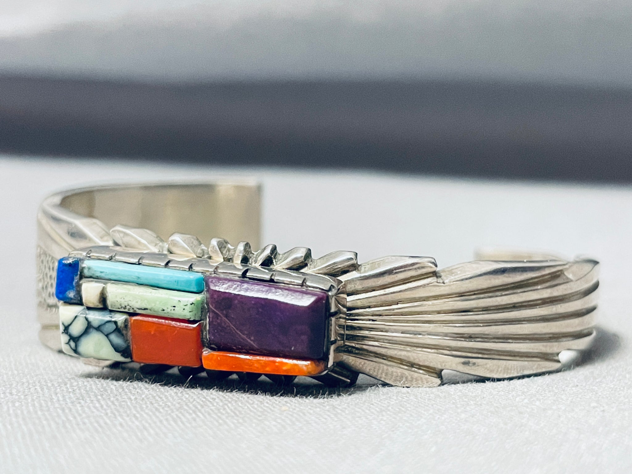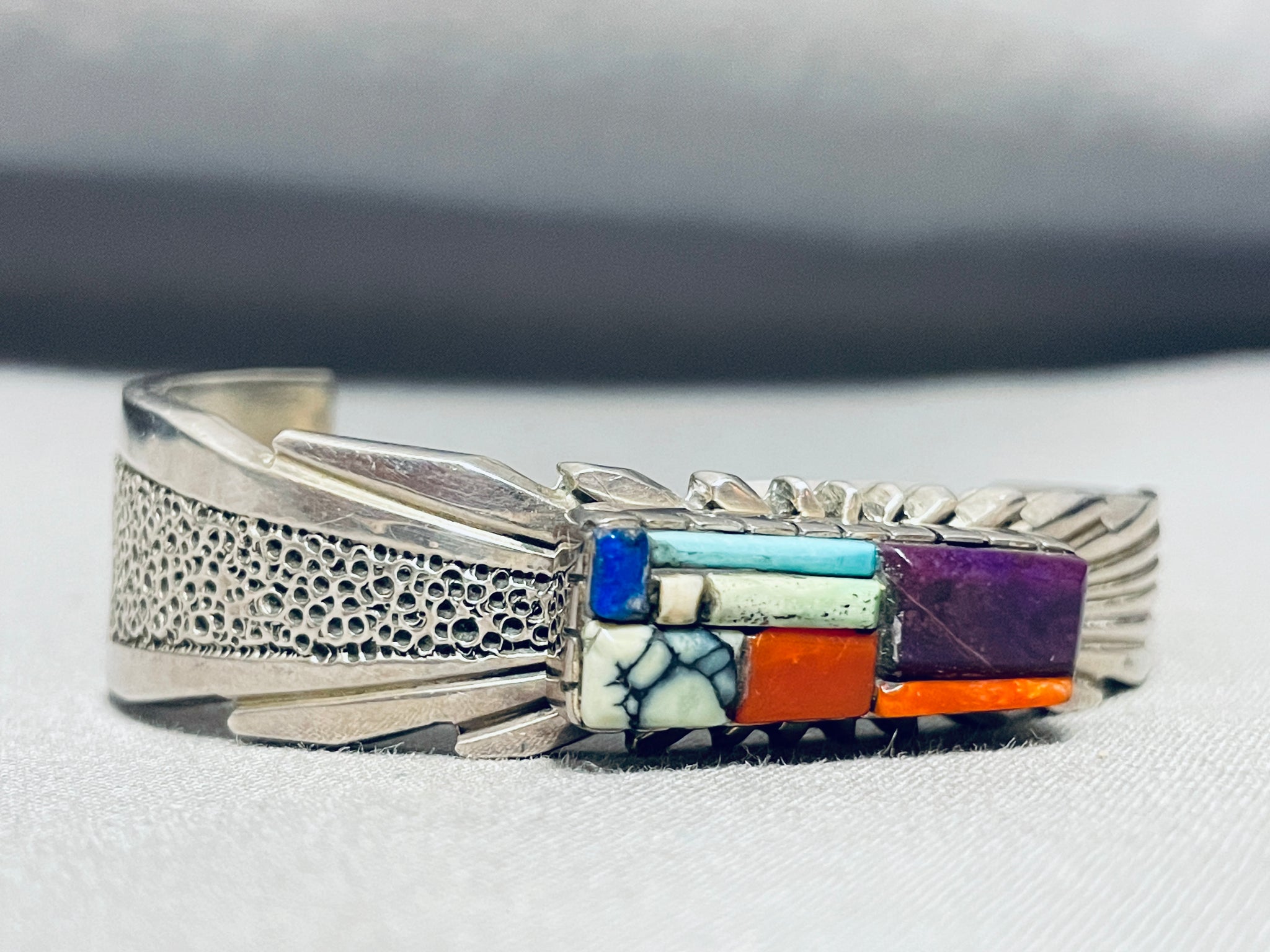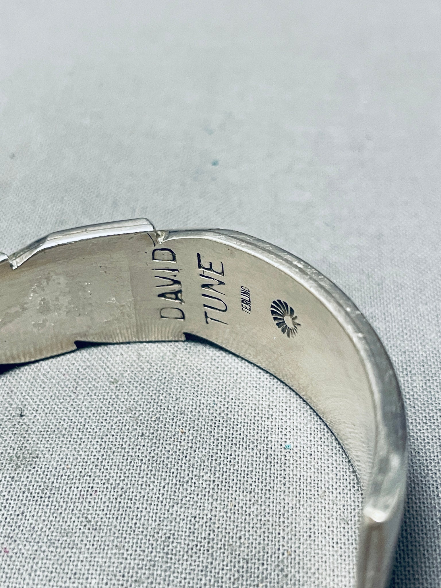 One Of Best Vintage Native American Navajo Dave Tune Turquoise Inlay Sterling Silver Bracelet
