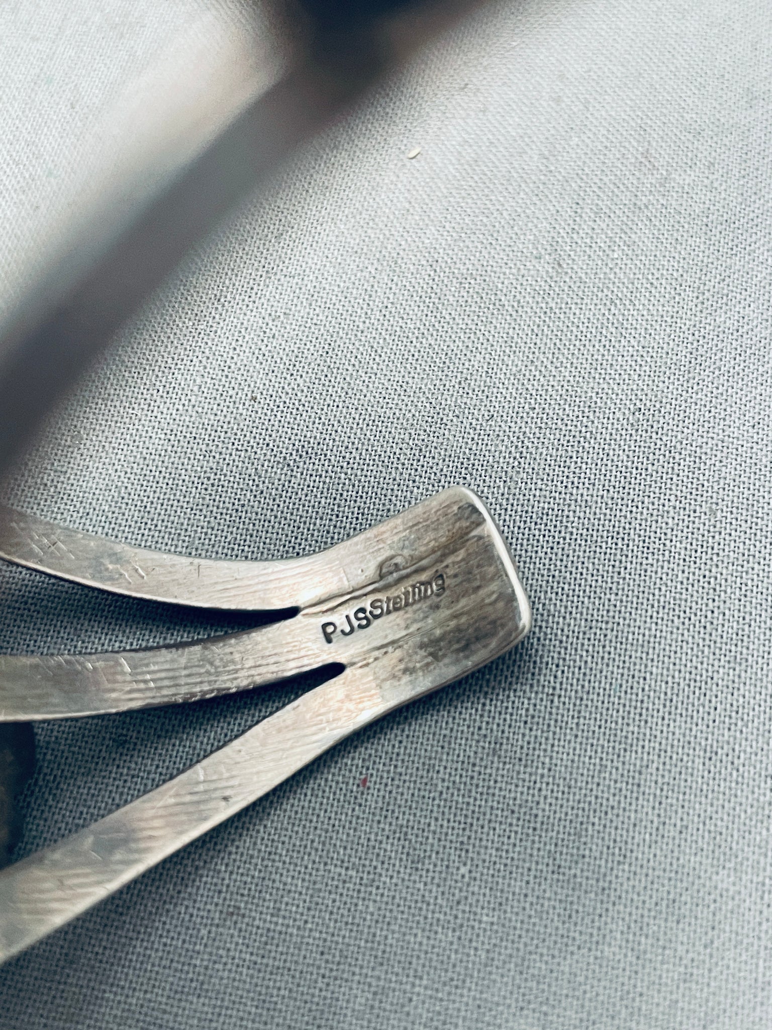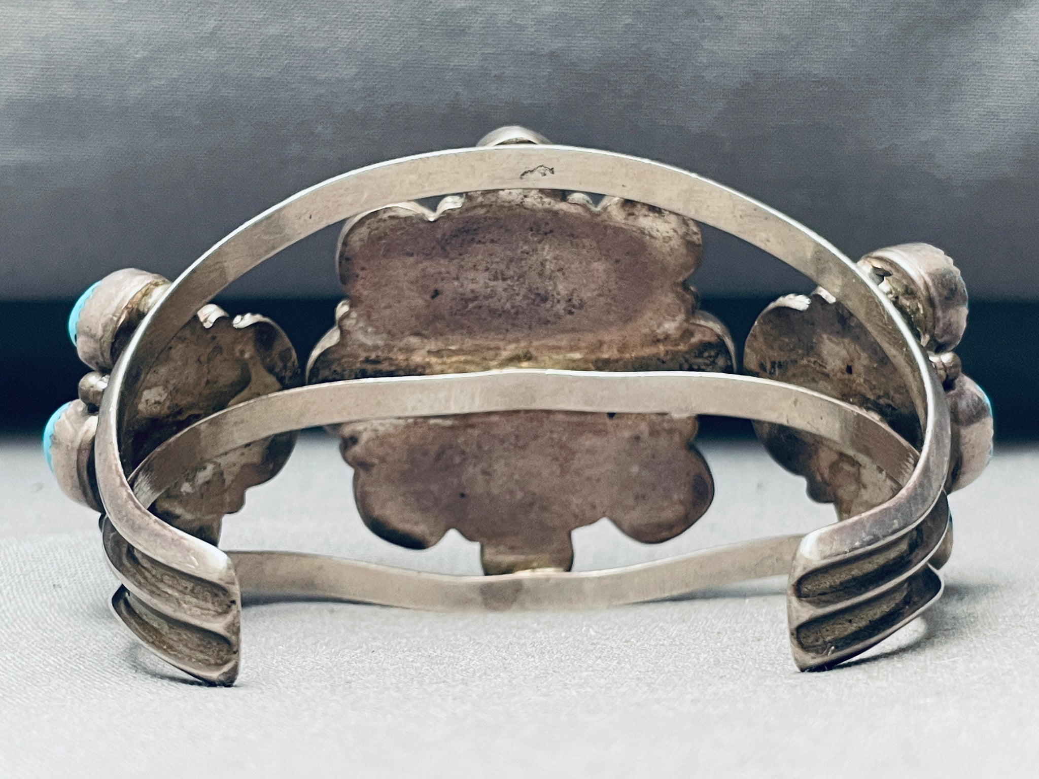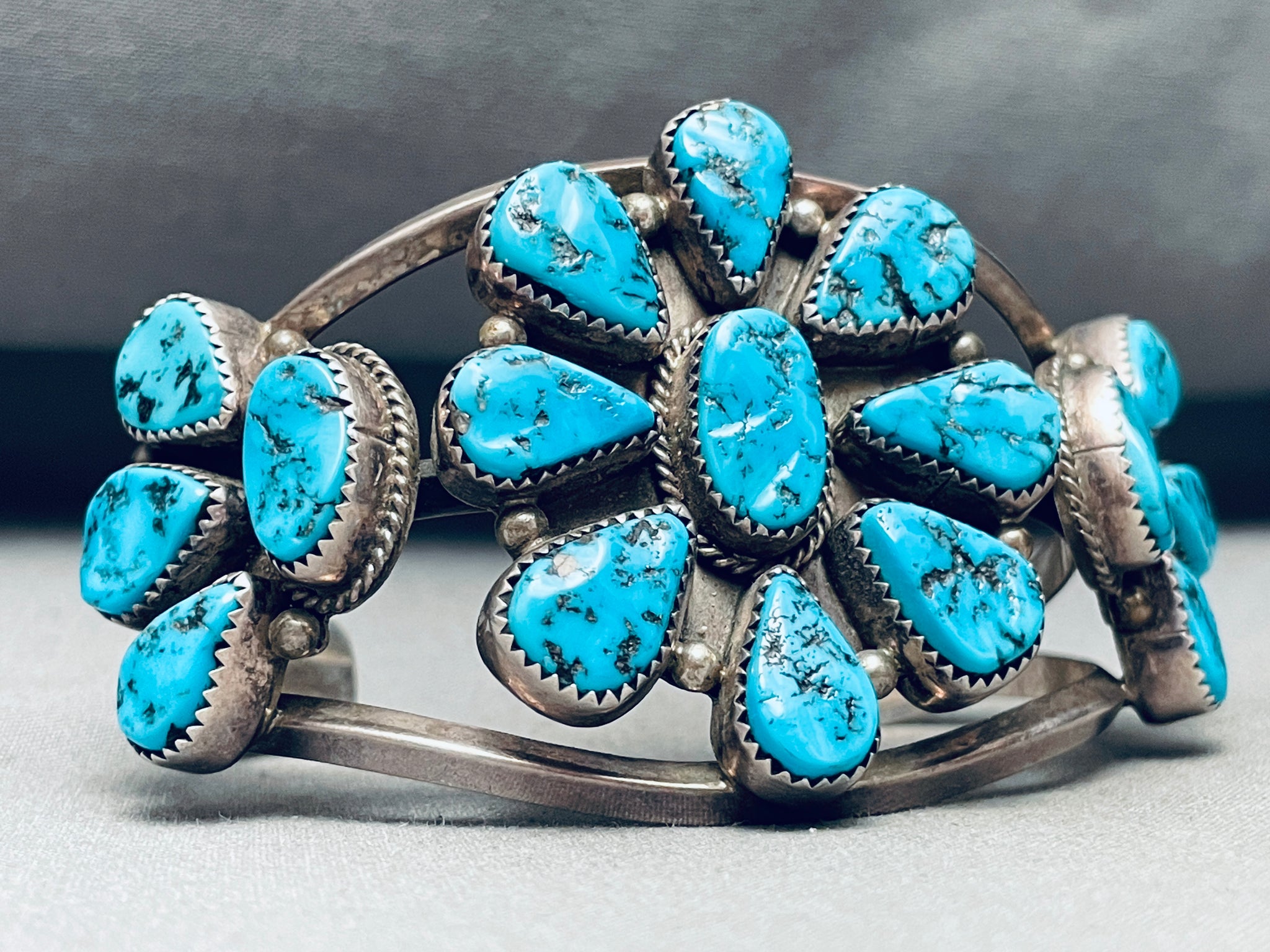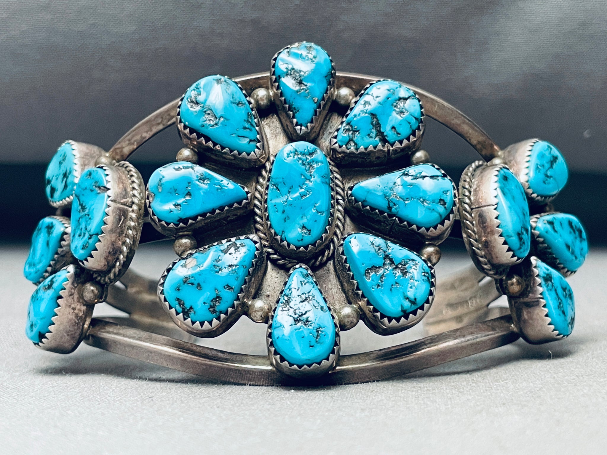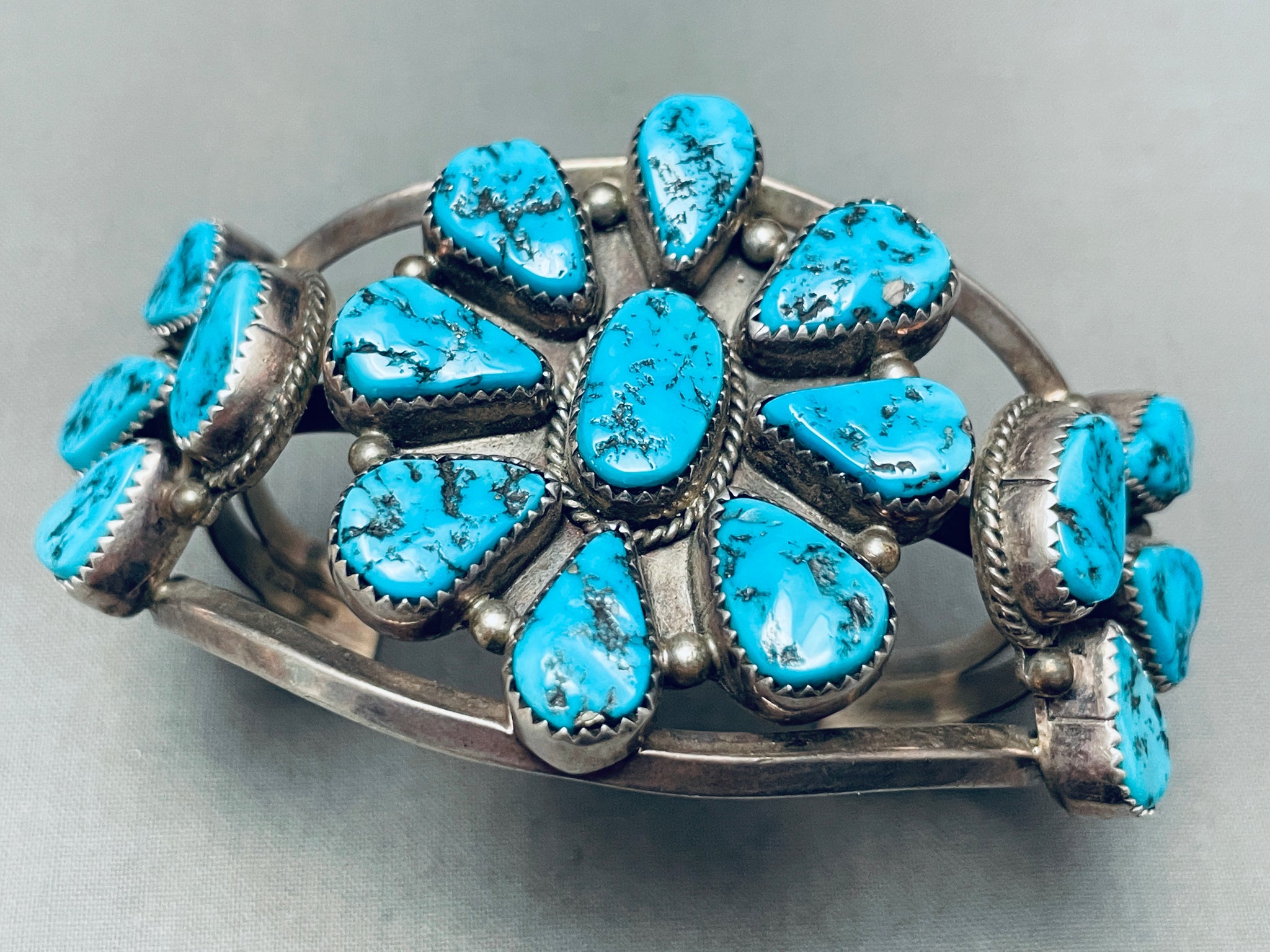 One Of Biggest Teardrop Stone Turquoise Vintage Native American Navajo Sterling Silver Bracelet