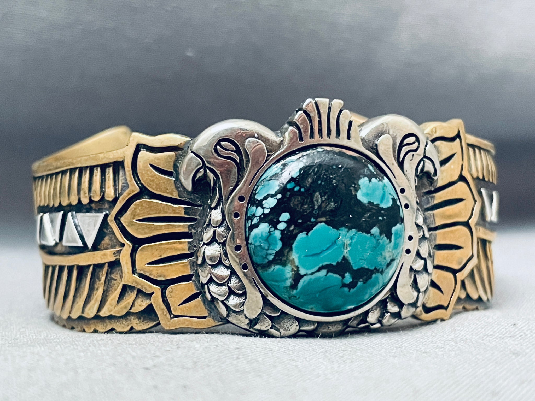 One Of Most Unique Vintage Native American Navajo Spiderweb Turquoise Sterling Silver Bracelet