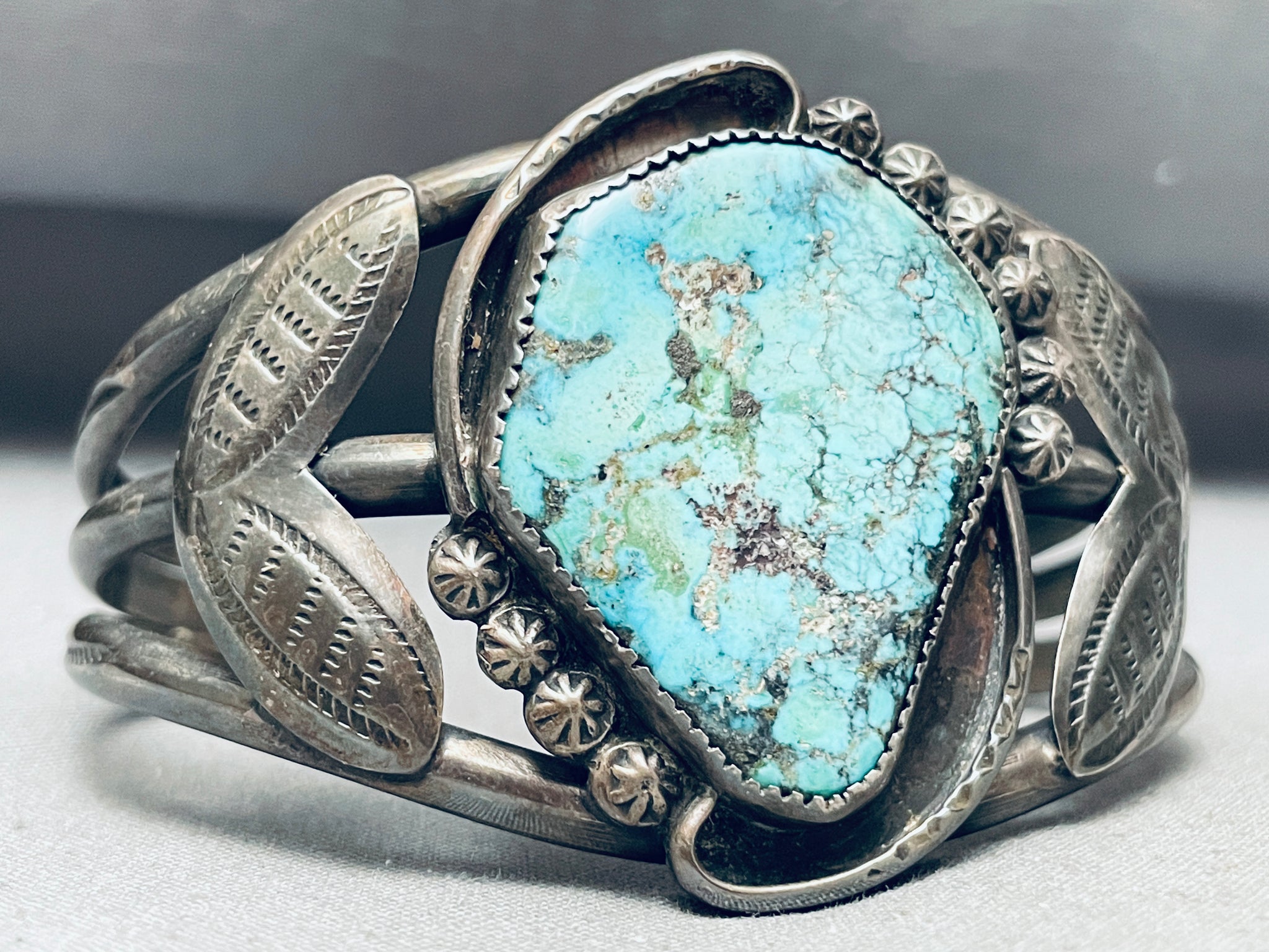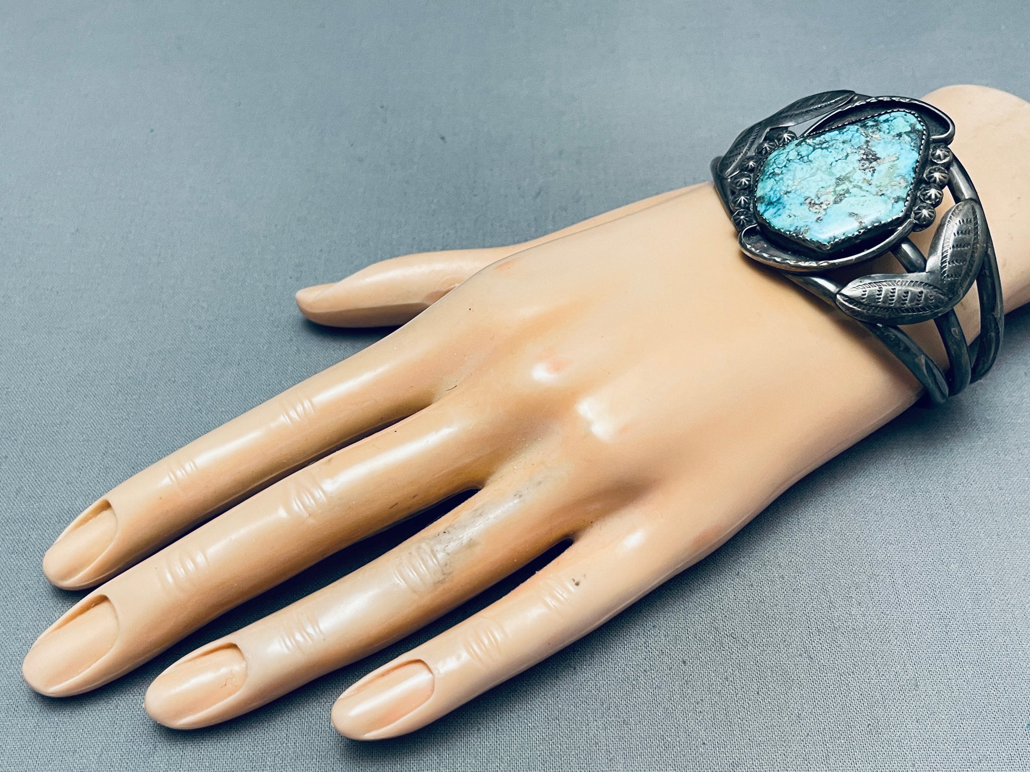One Of The Best Ever Vintage Native American Navajo Gilbert Turquoise Sterling Silver Bracelet
