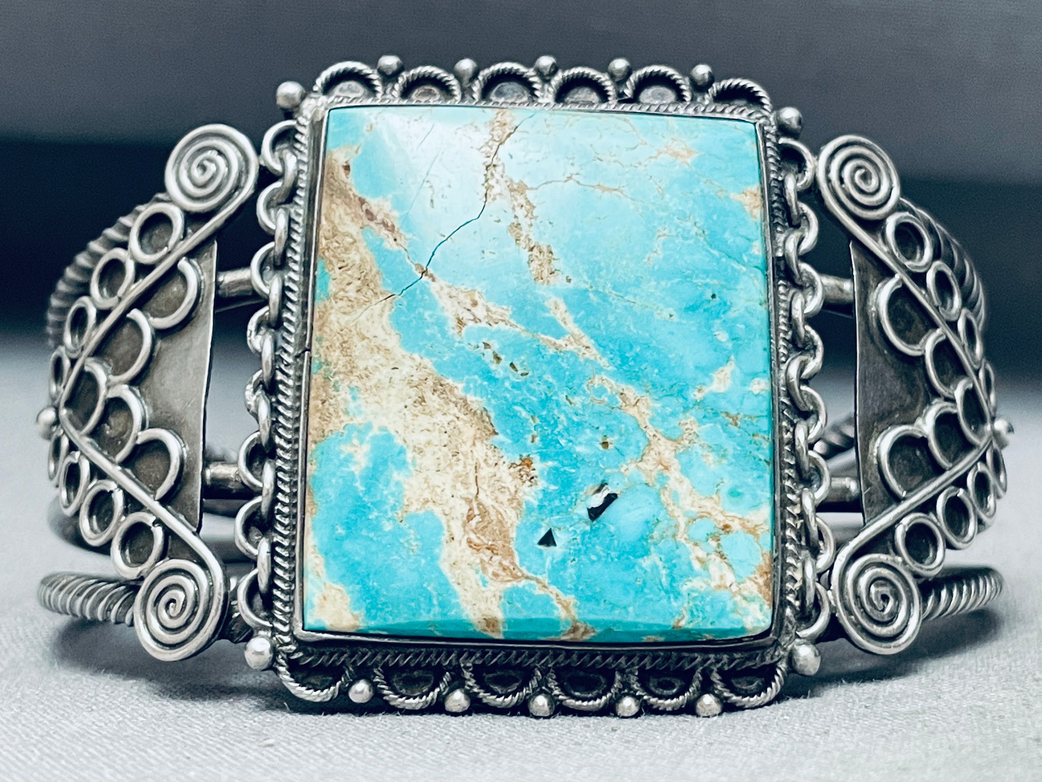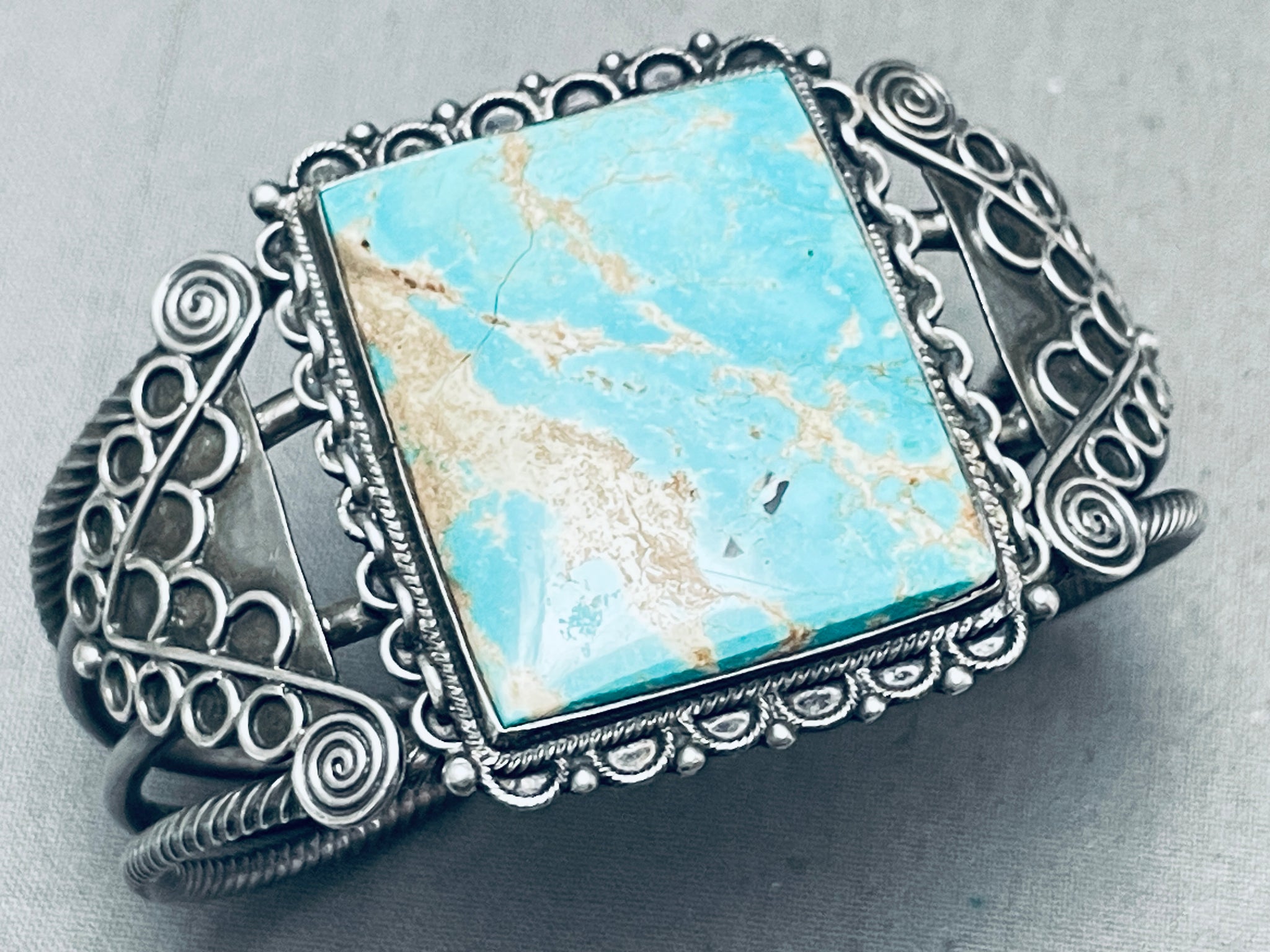 One Of The Best Ever Vintage Native American Navajo Squared Turquoise Sterling Silver Bracelet