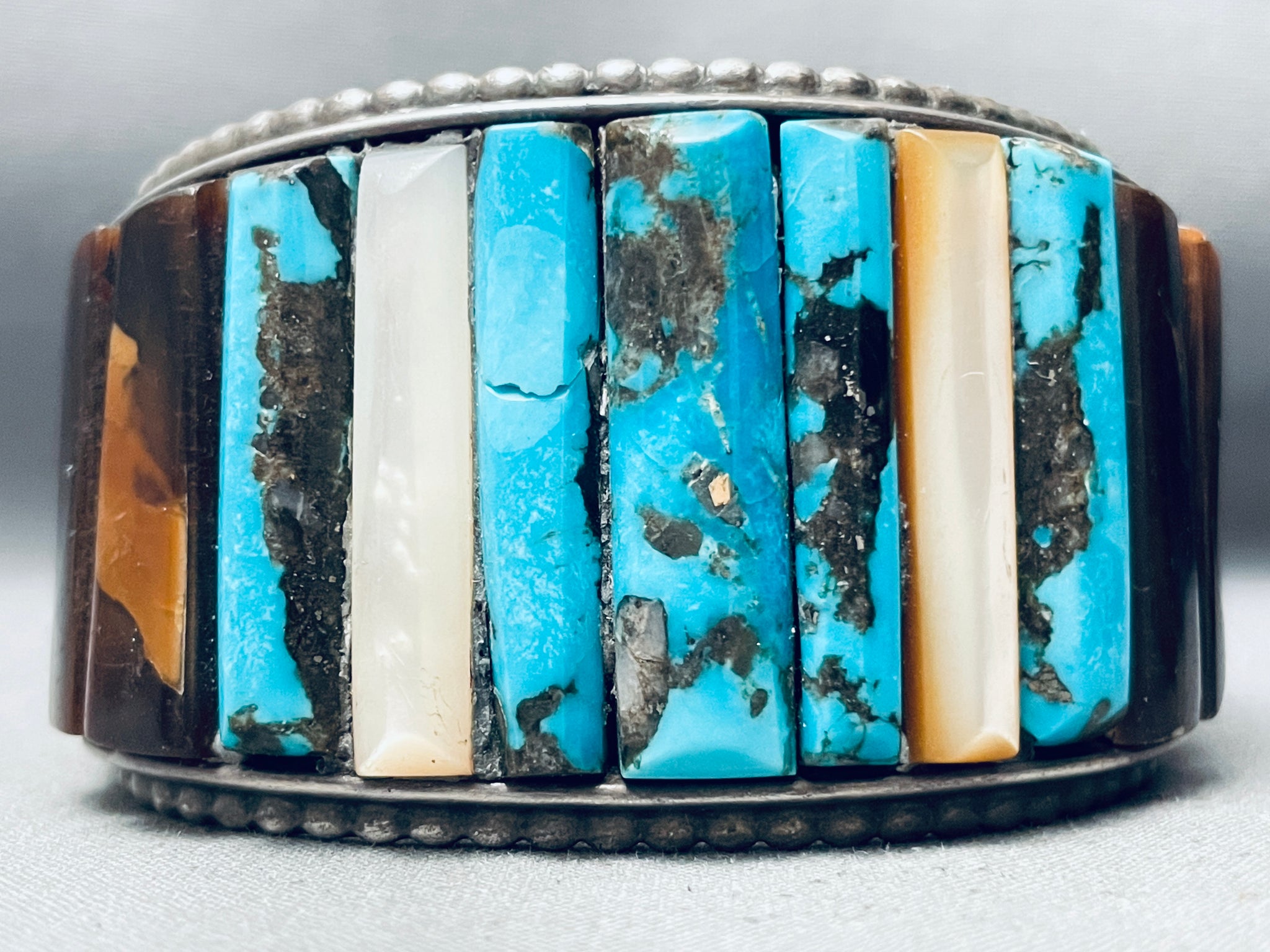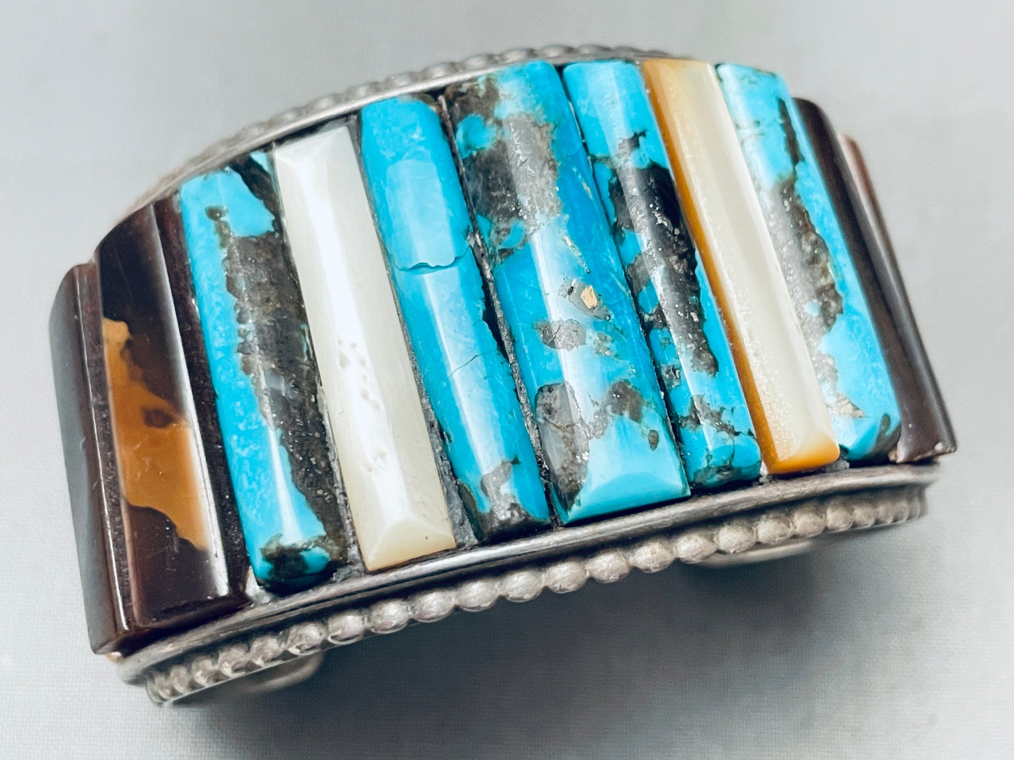 One Of The Best Ever Vintage Native American Navajo Turquoise Inlay Sterling Silver Bracelet