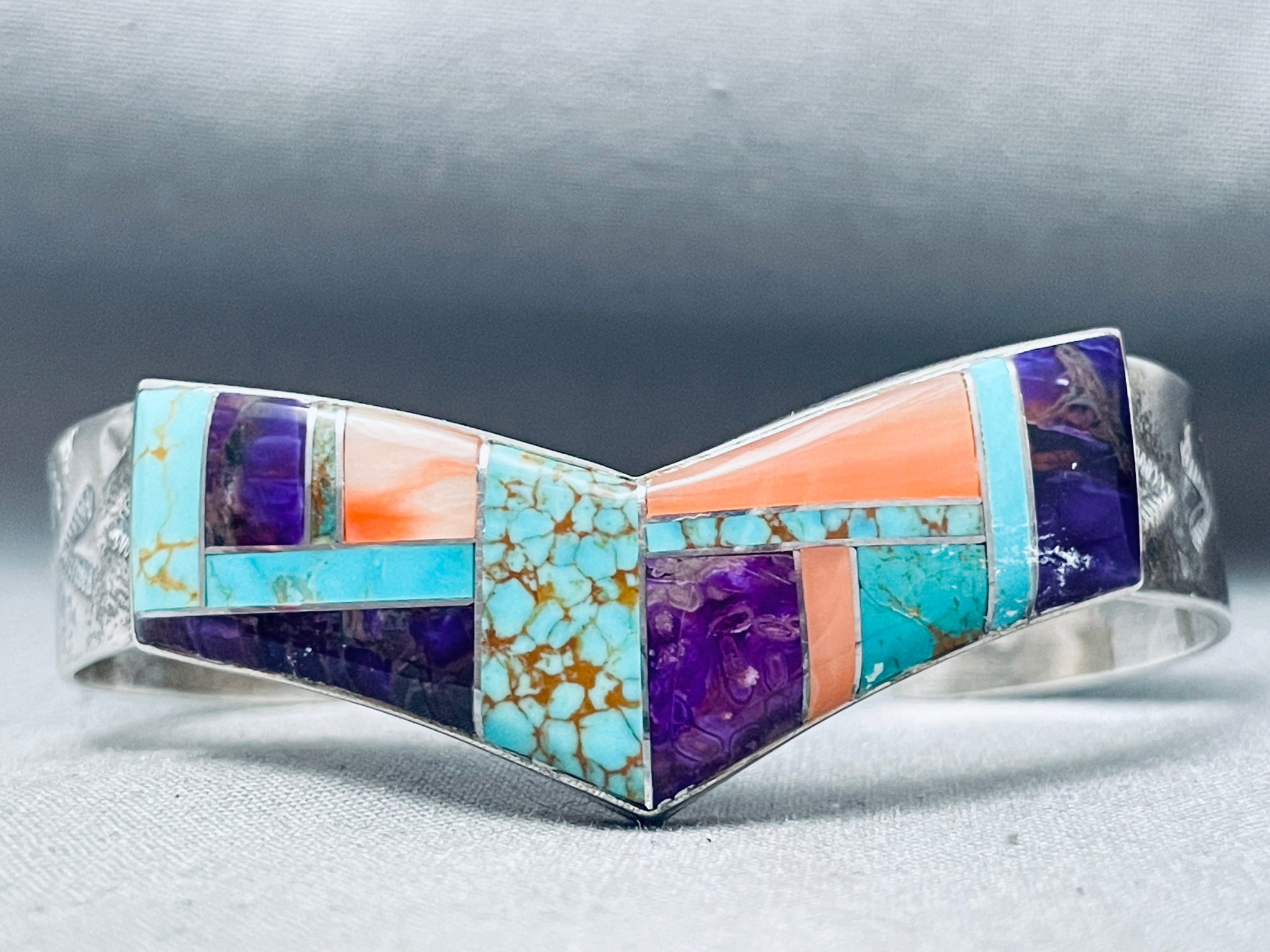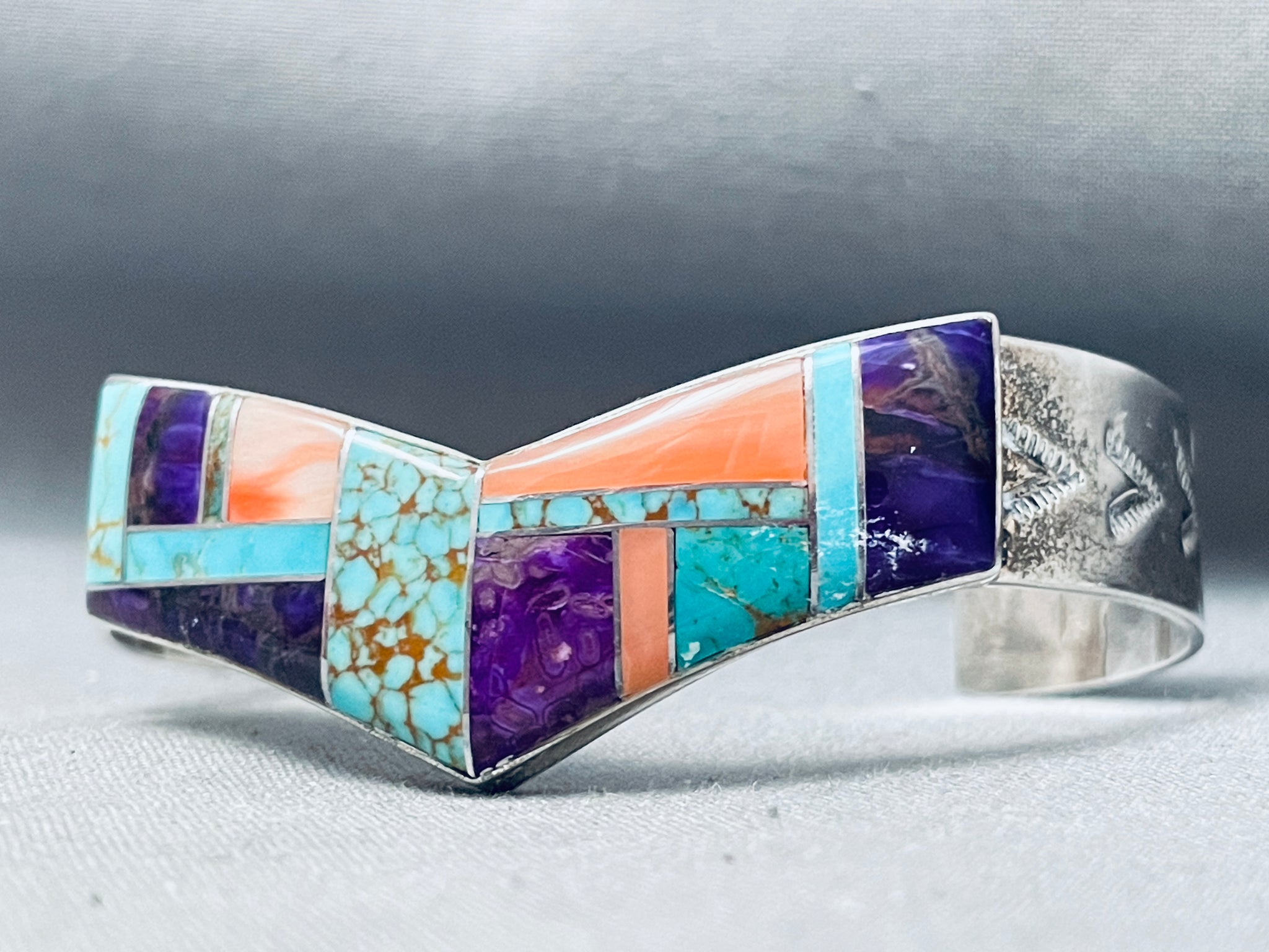 One Of The Best Ever Vintage Native American Navajo Turquoise Inlay Sterling Silver Bracelet
