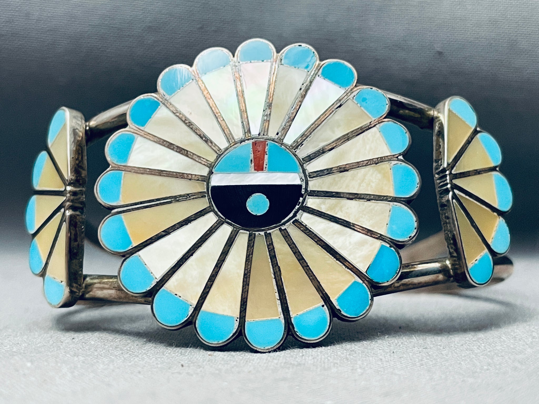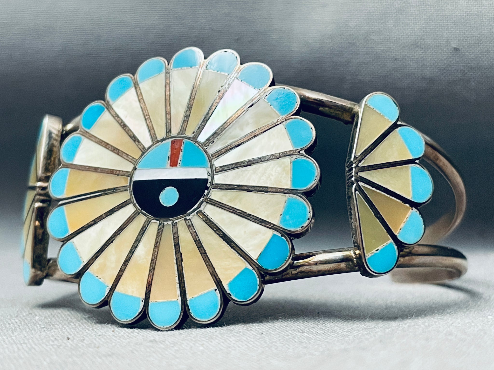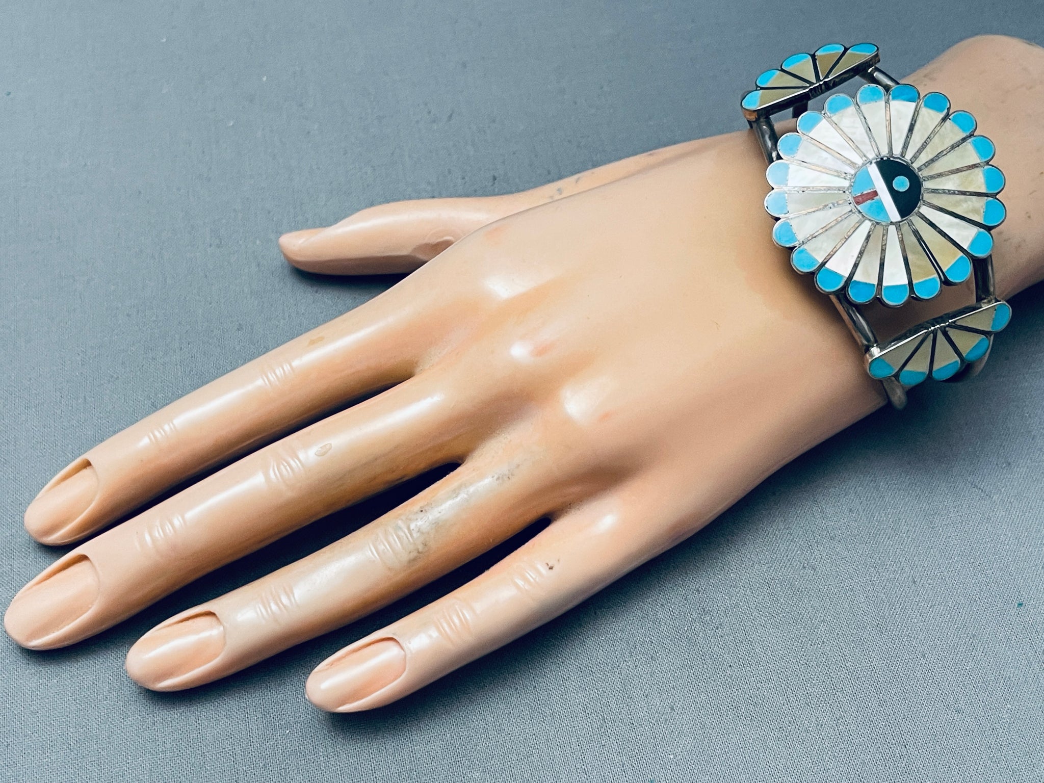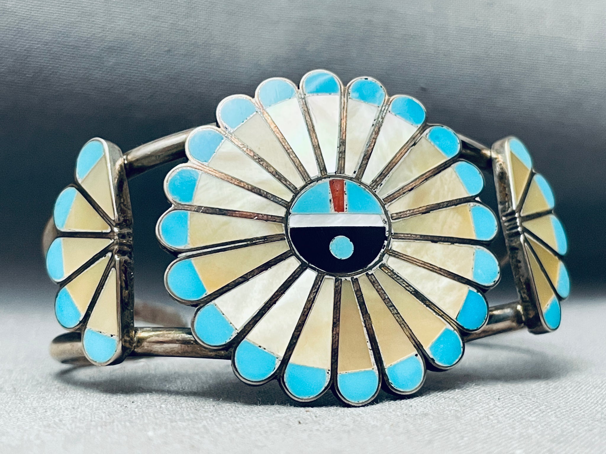 One Of The Best Ever Vintage Zuni Turquoise Inlay Sterling Silver Bracelet