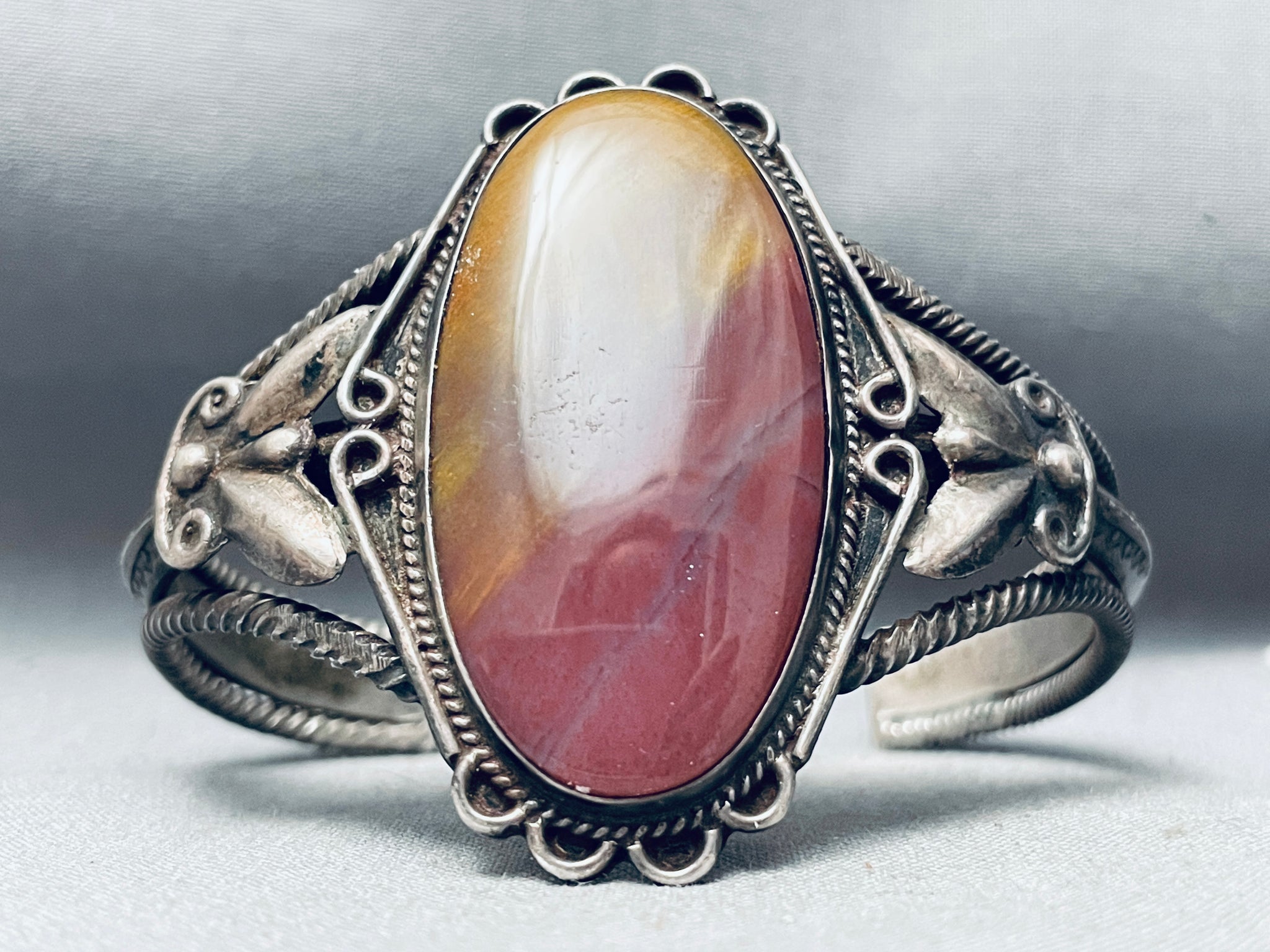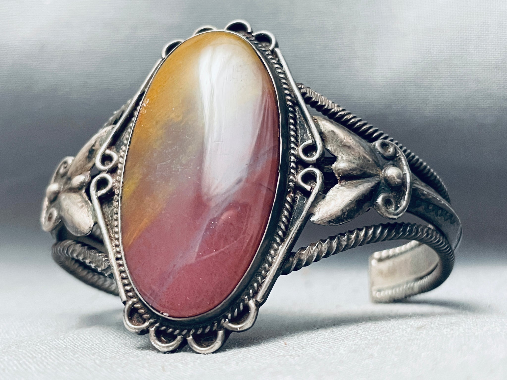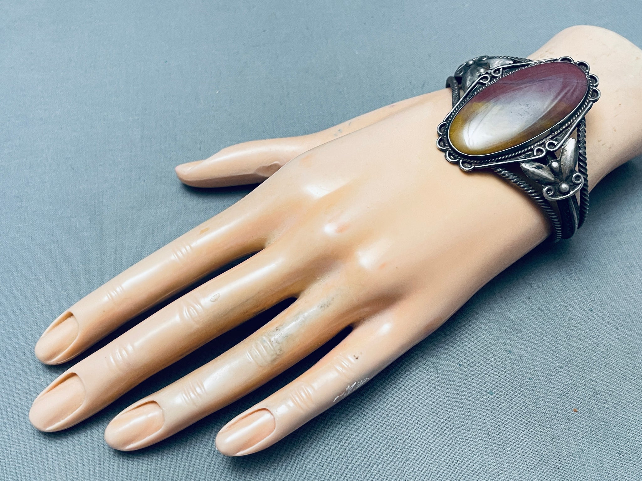 One Of The Best Vintage Early Native American Navajo Agate Sterling Silver Bracelet