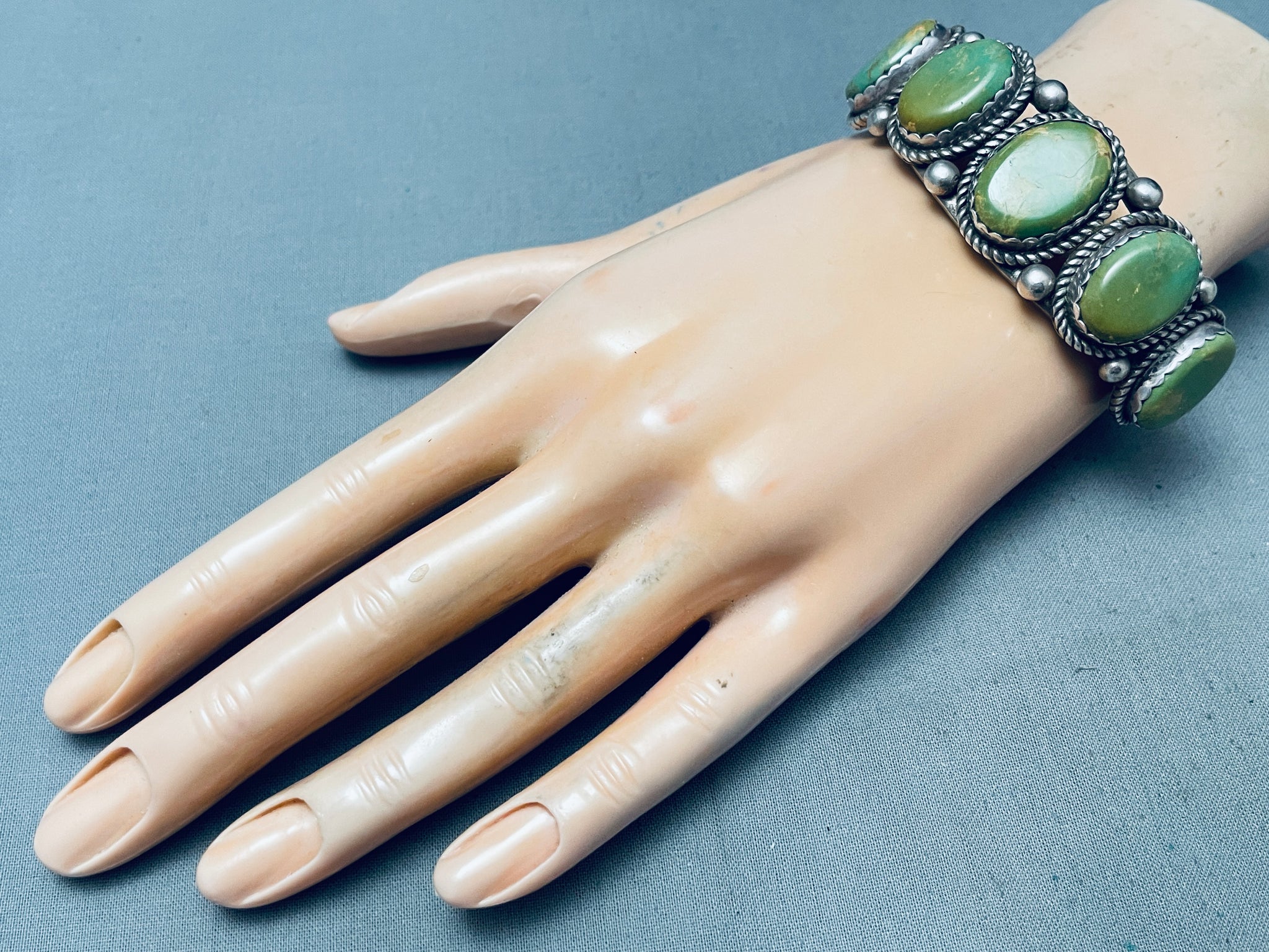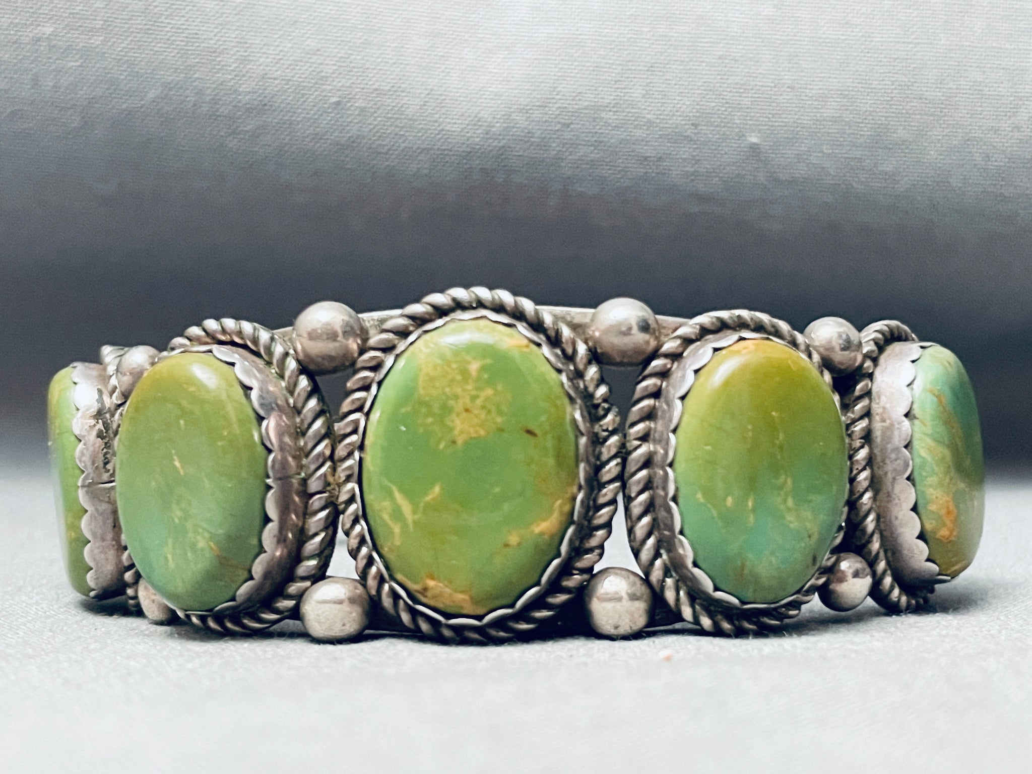 One Of The Best Vintage Native American Navajo Green Turquoise Sterling Silver Bracelet