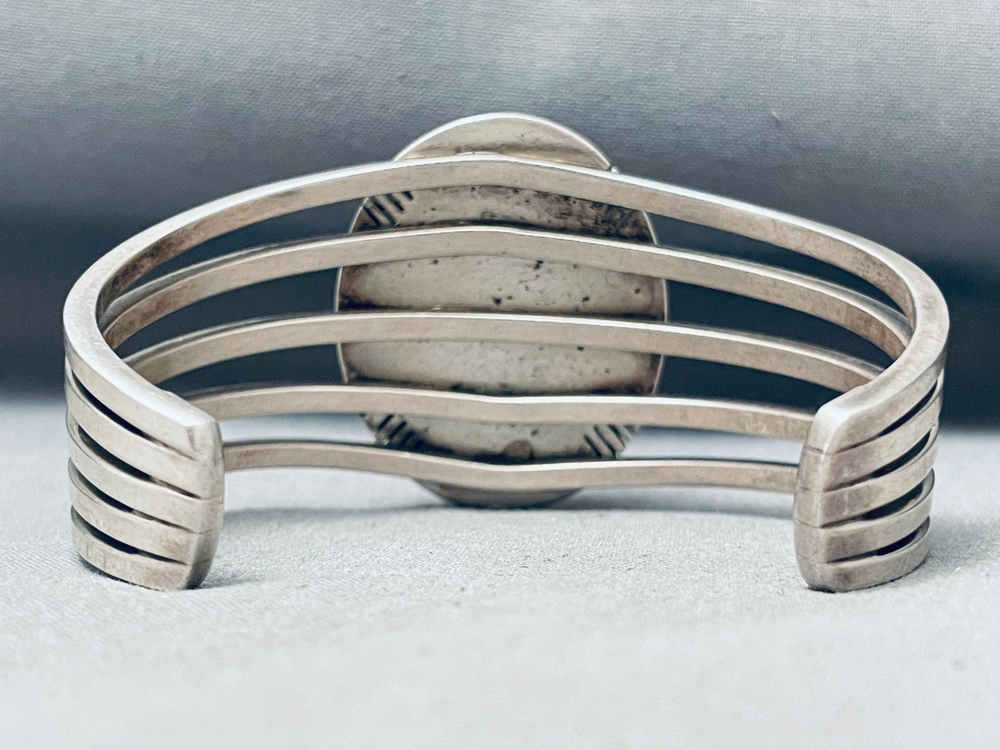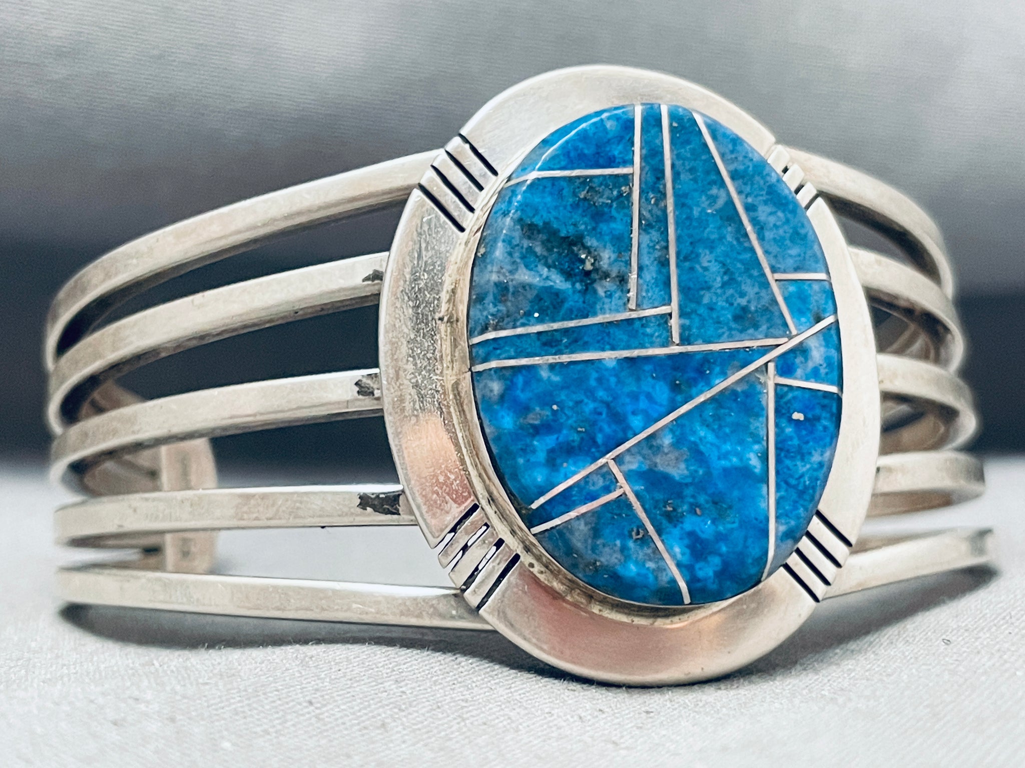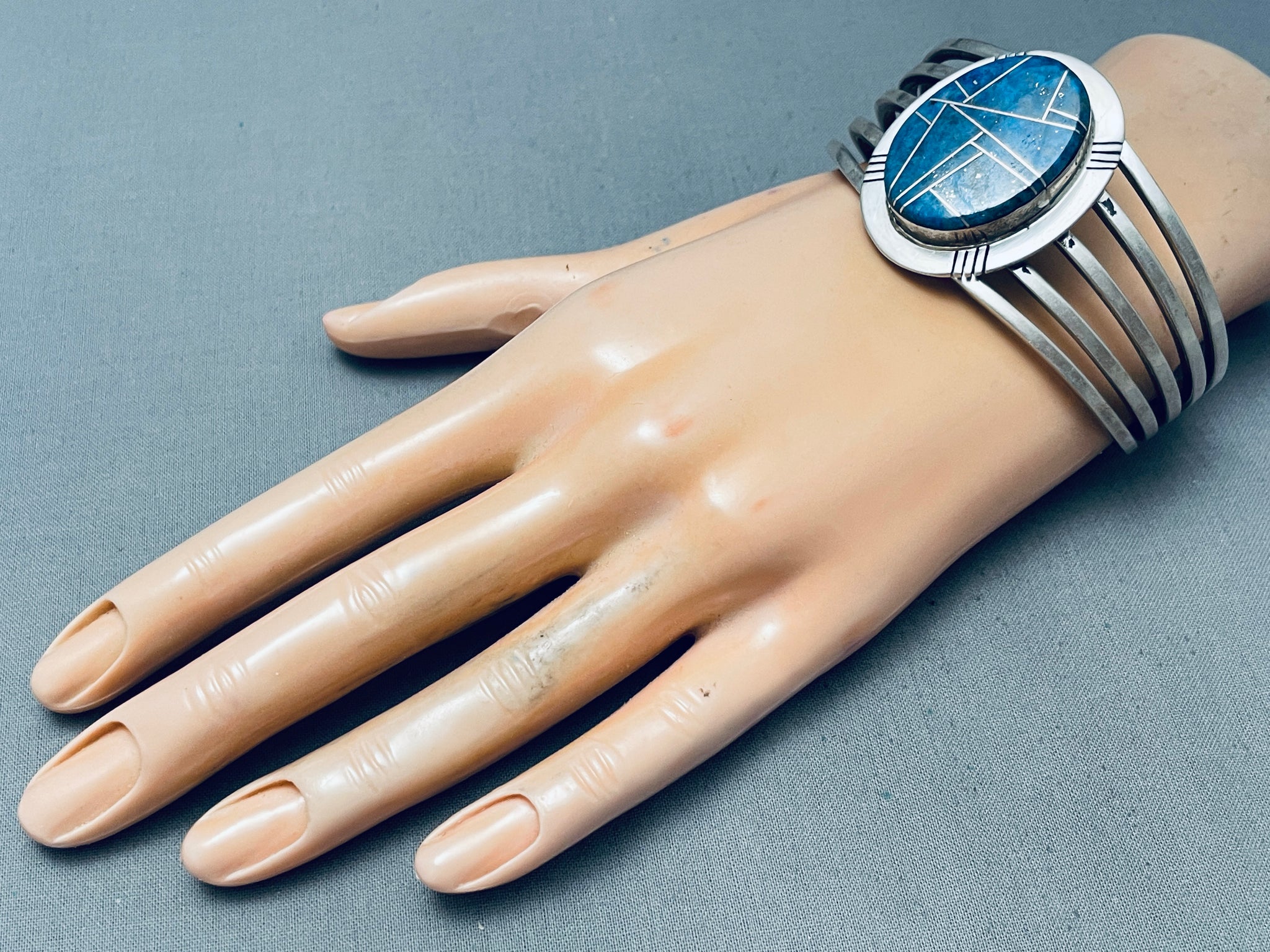 One Of The Best Vintage Native American Navajo Lapis Inlay Sterling Silver Bracelet
