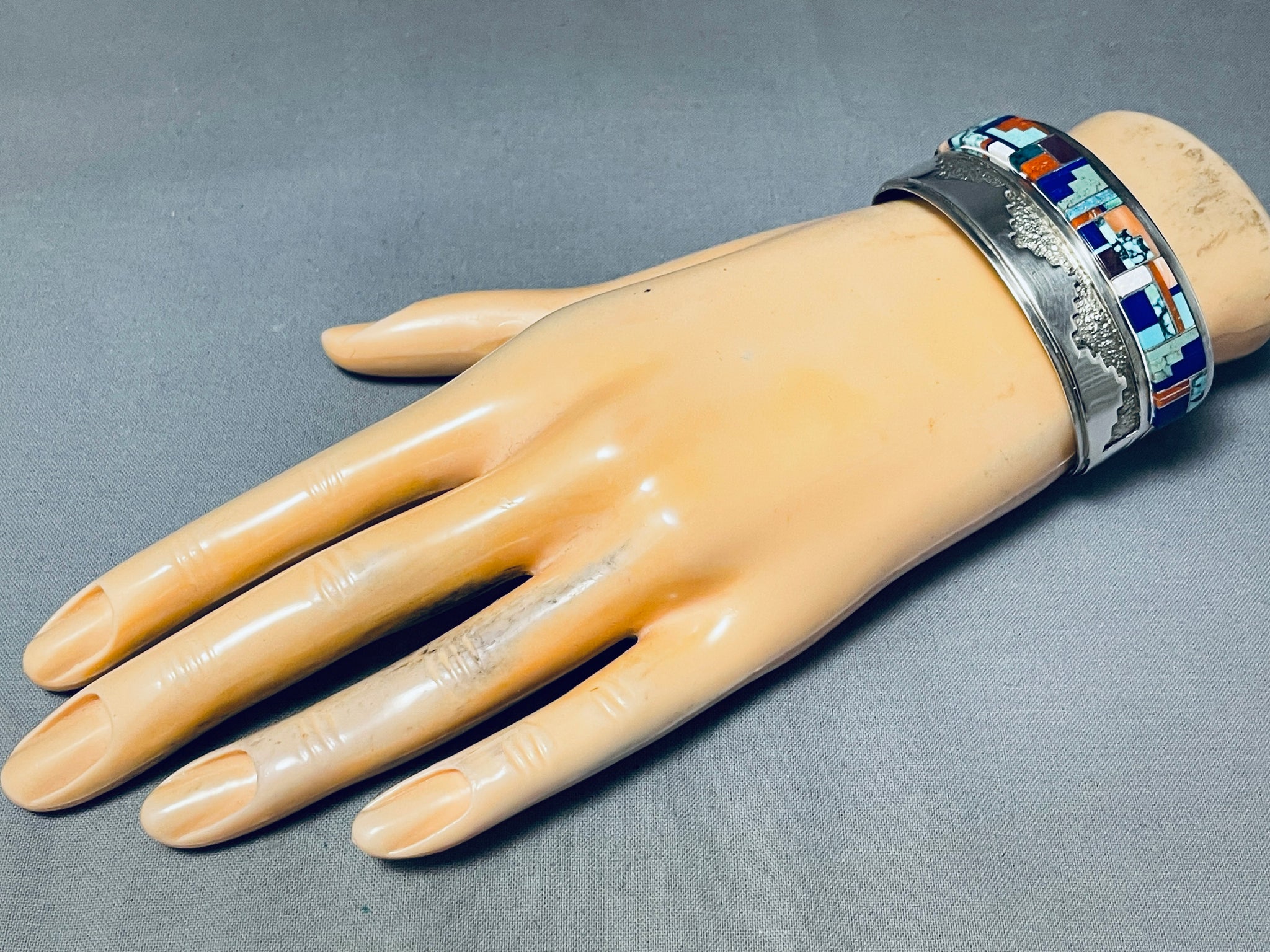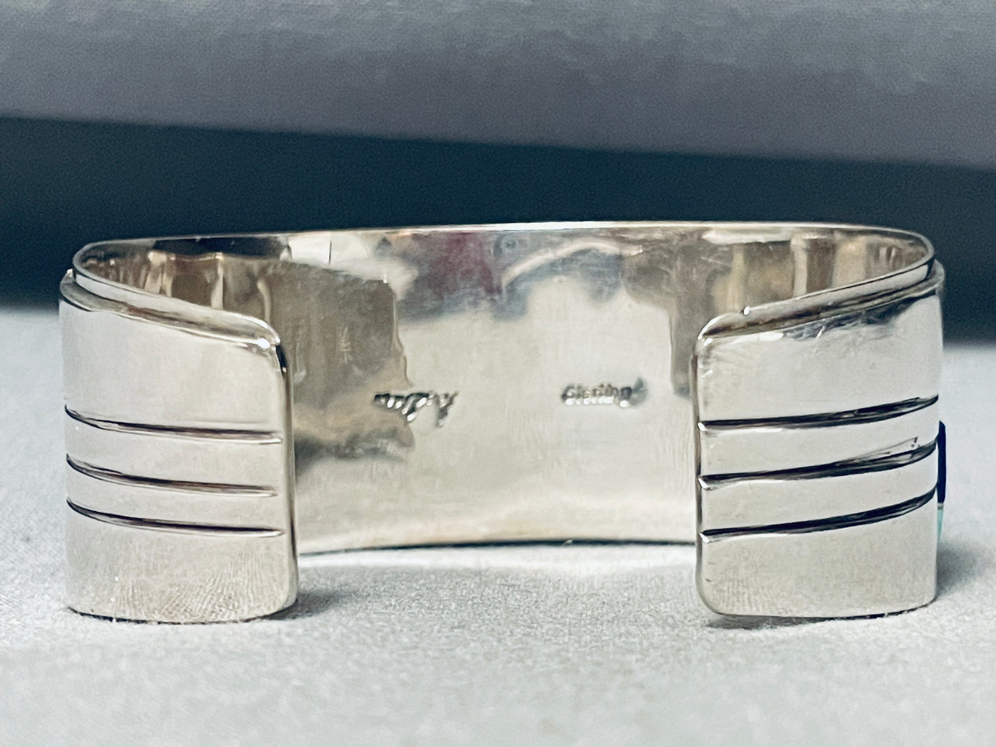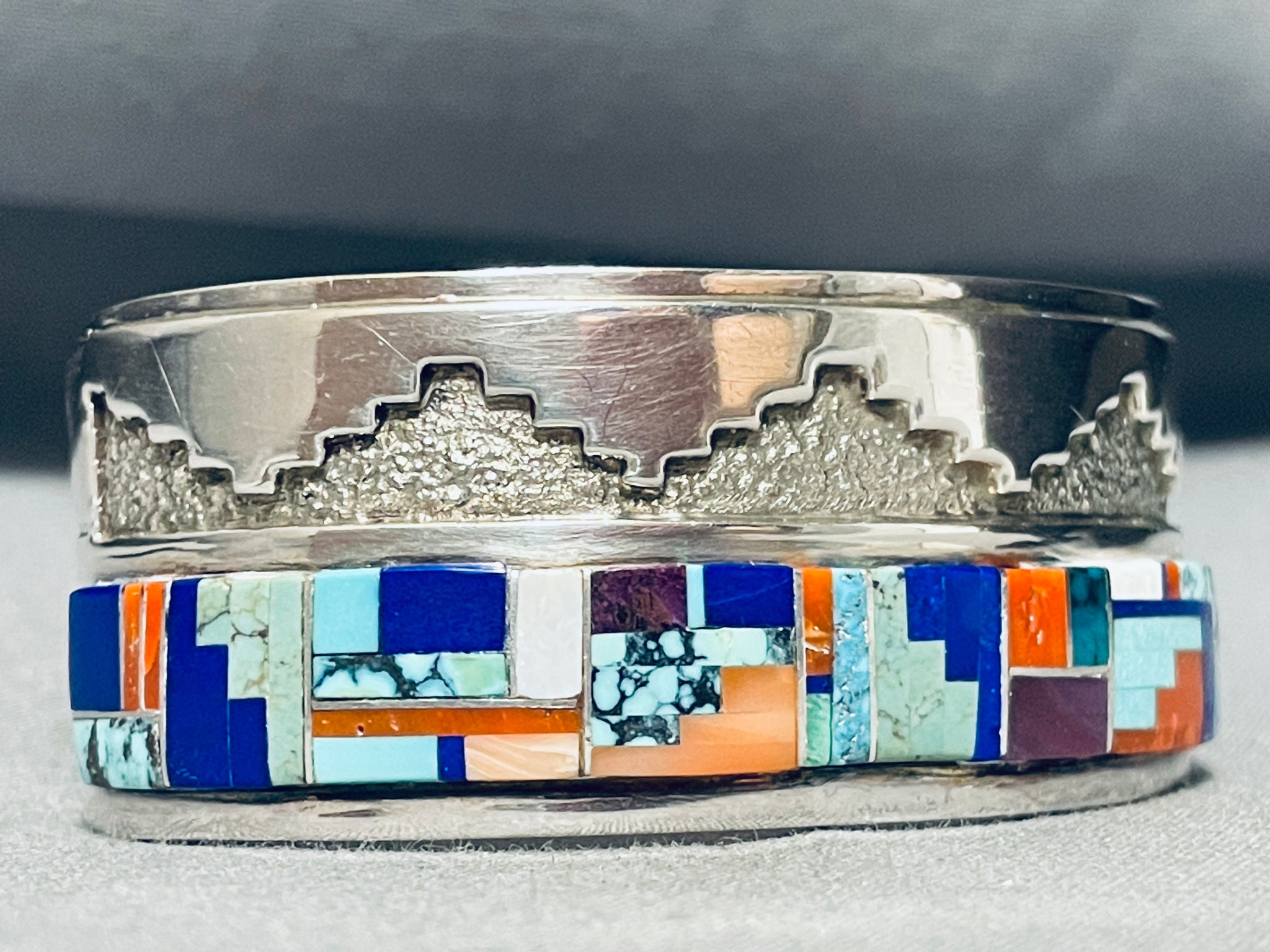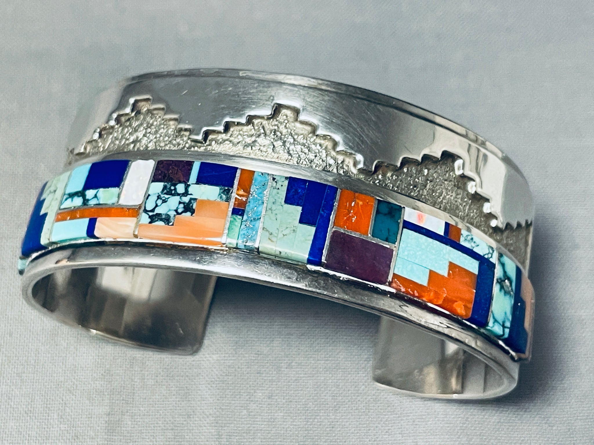 One Of The Best Vintage Native American Navajo Turquoise Inlay Sterling Silver Bracelet