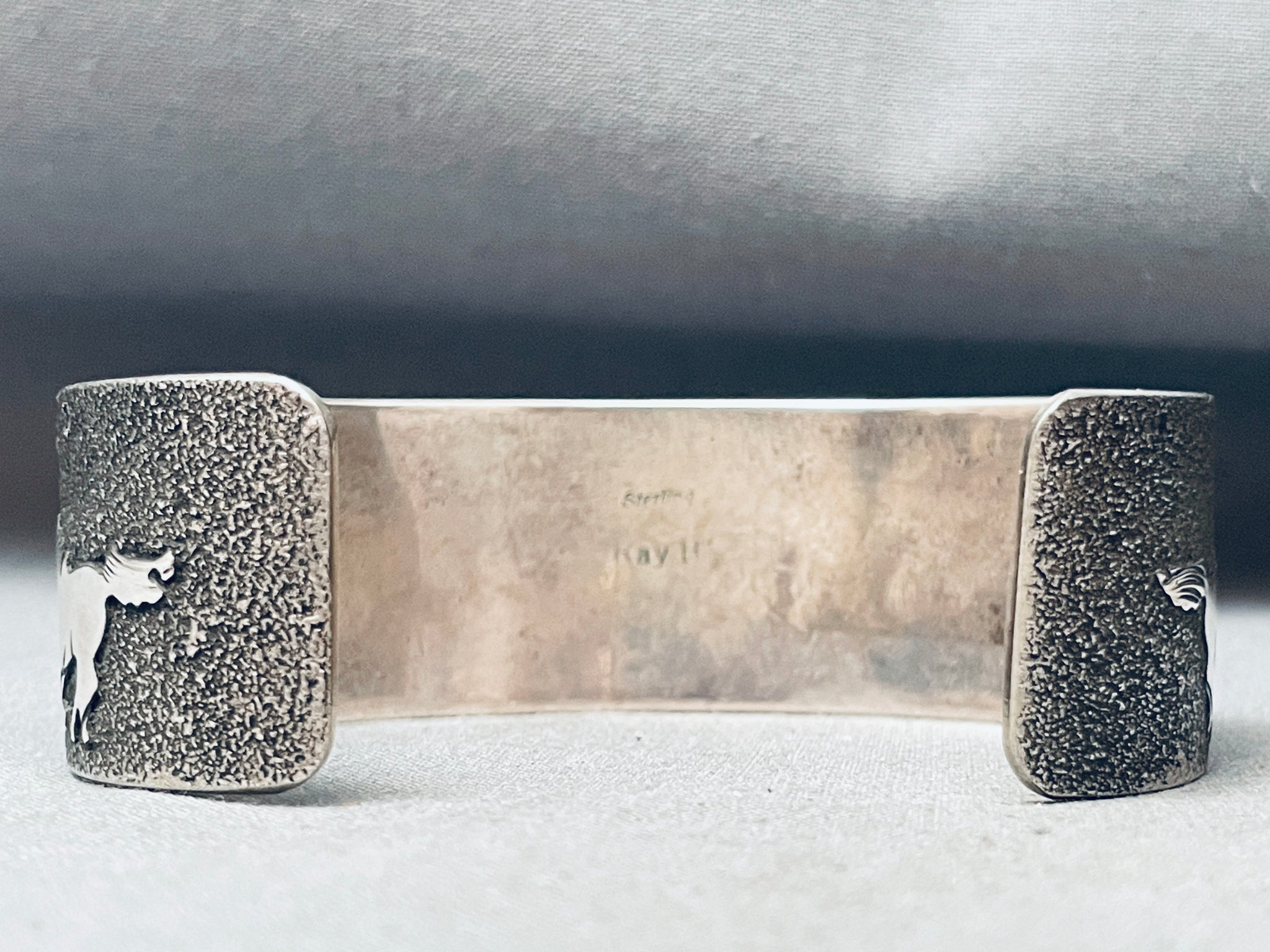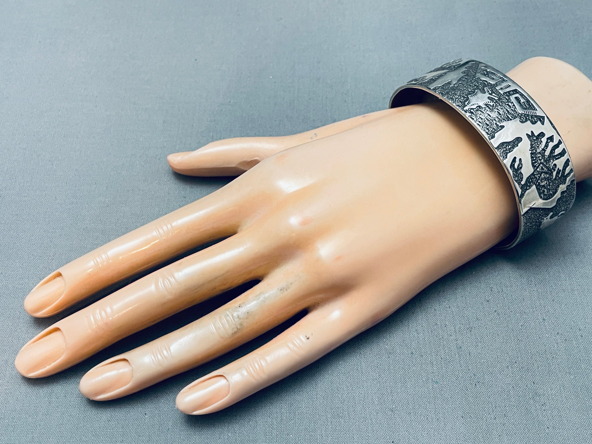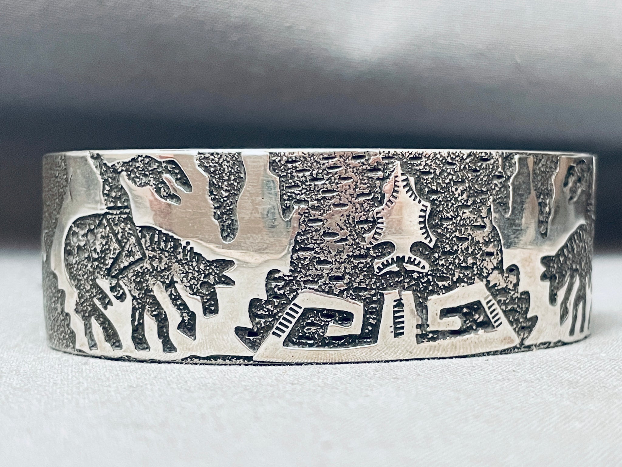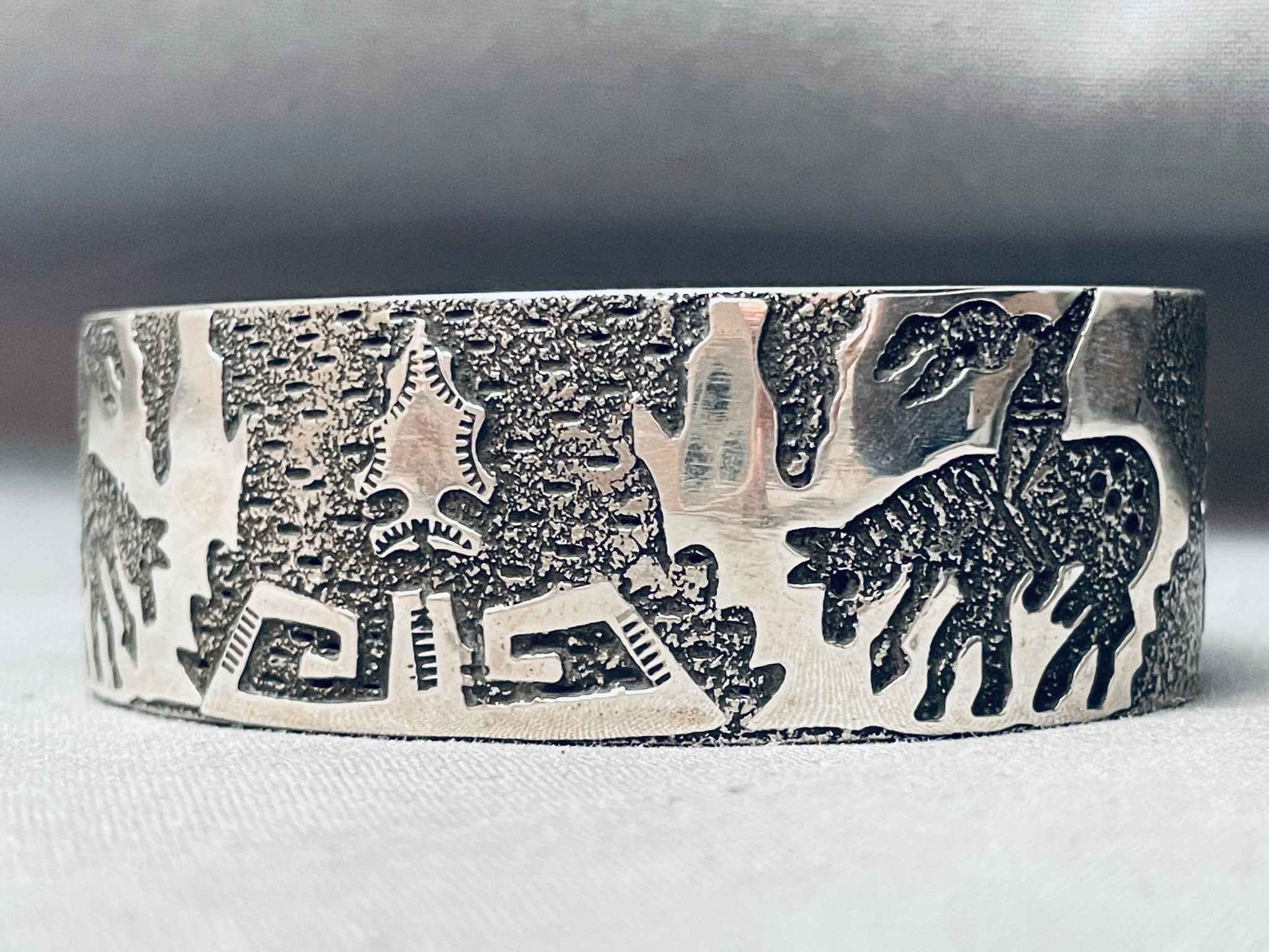One Of The Most Detailed Vintage Native American Navajo Geometirc Sterling Silver Bracelet
