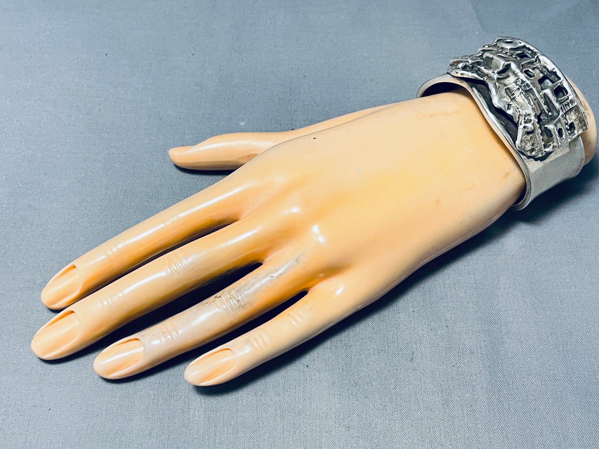 One Of The Most Detailed Vintage Navajo Sterling Silver Pueblo Bracelet