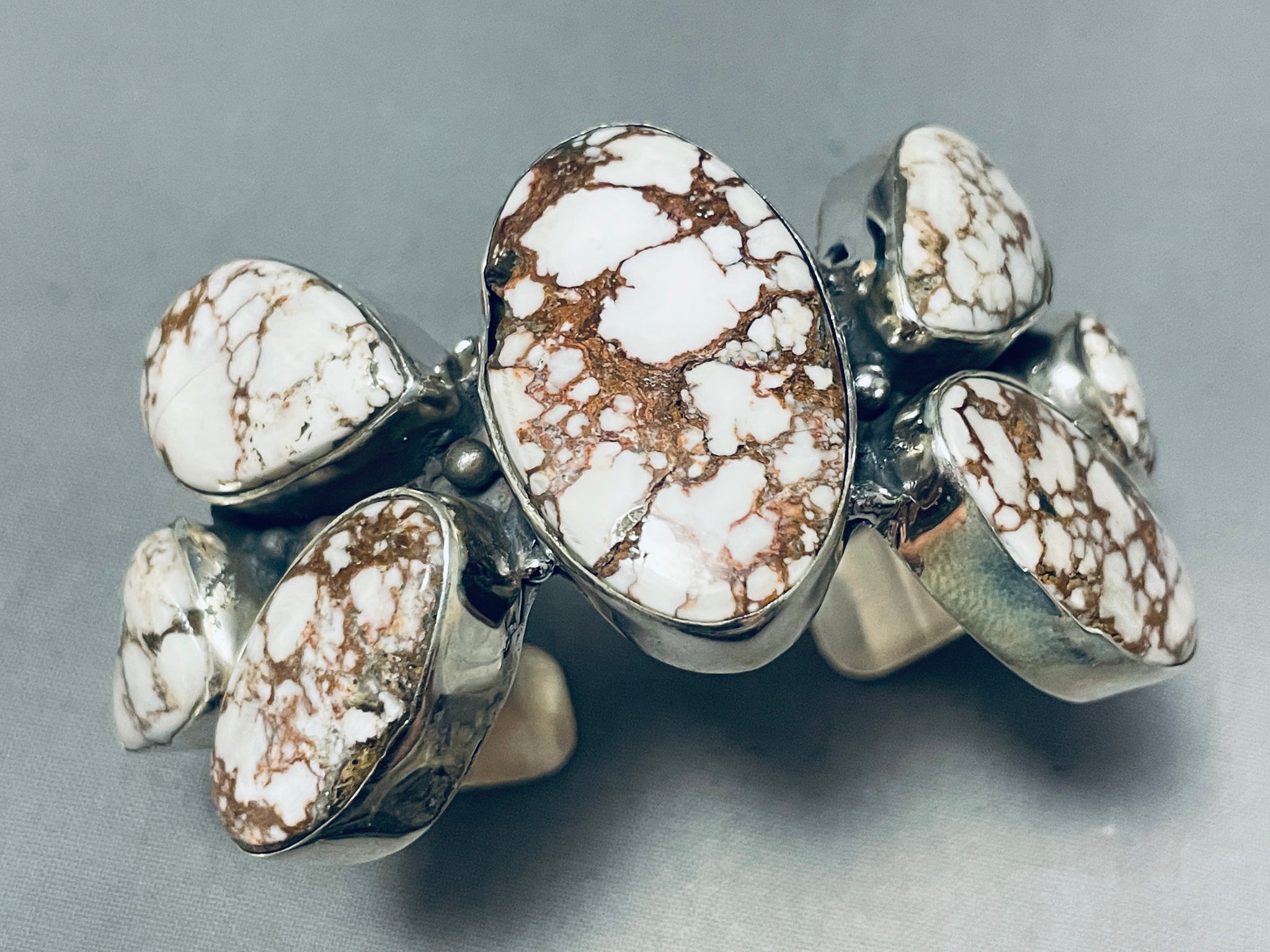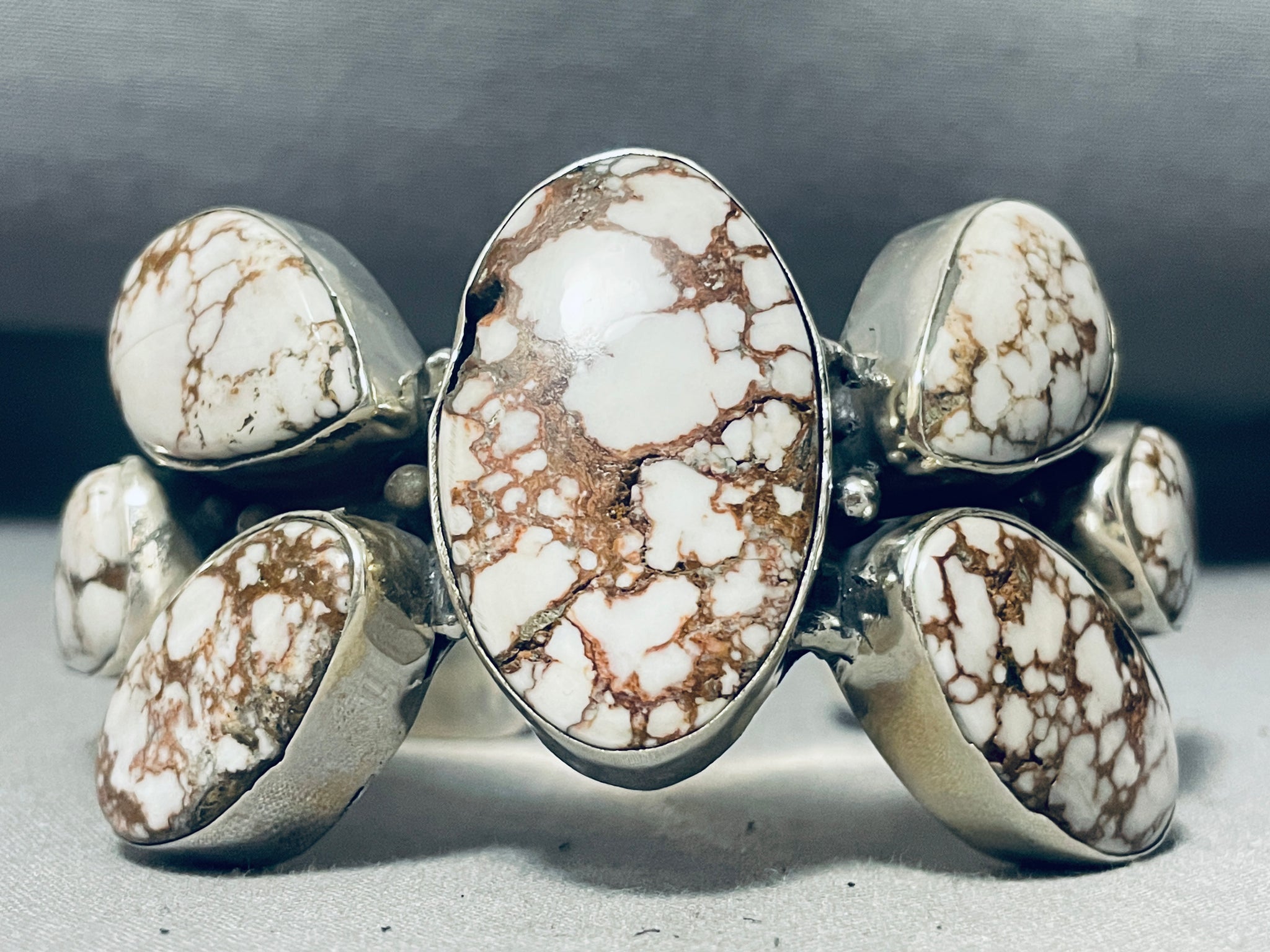 One Of The Most Unique Agate Vintage Native American Navajo Sterling Silver Bracelet