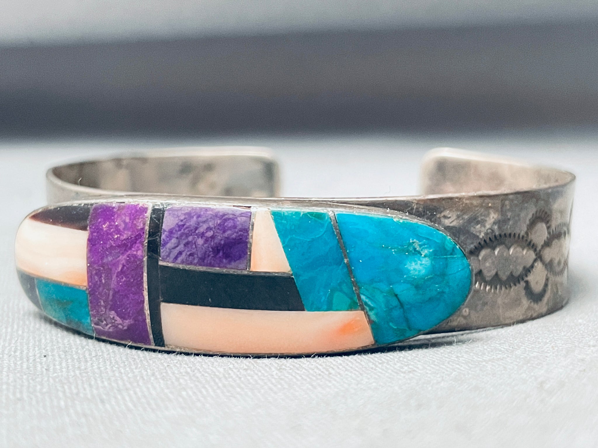 One Of The Most Unique Vintage Native American Navajo Inlay Turquoise Sterling Silver Bracelet
