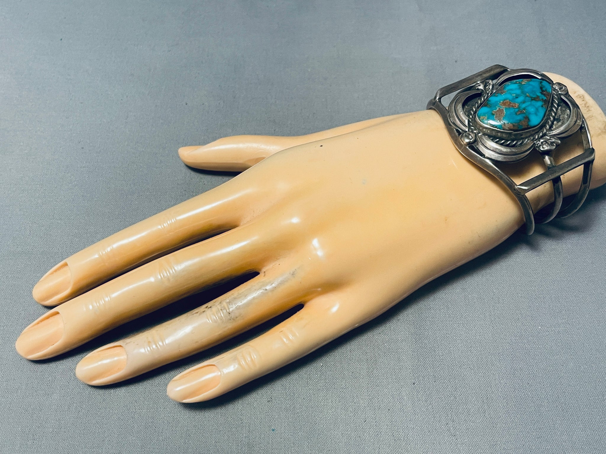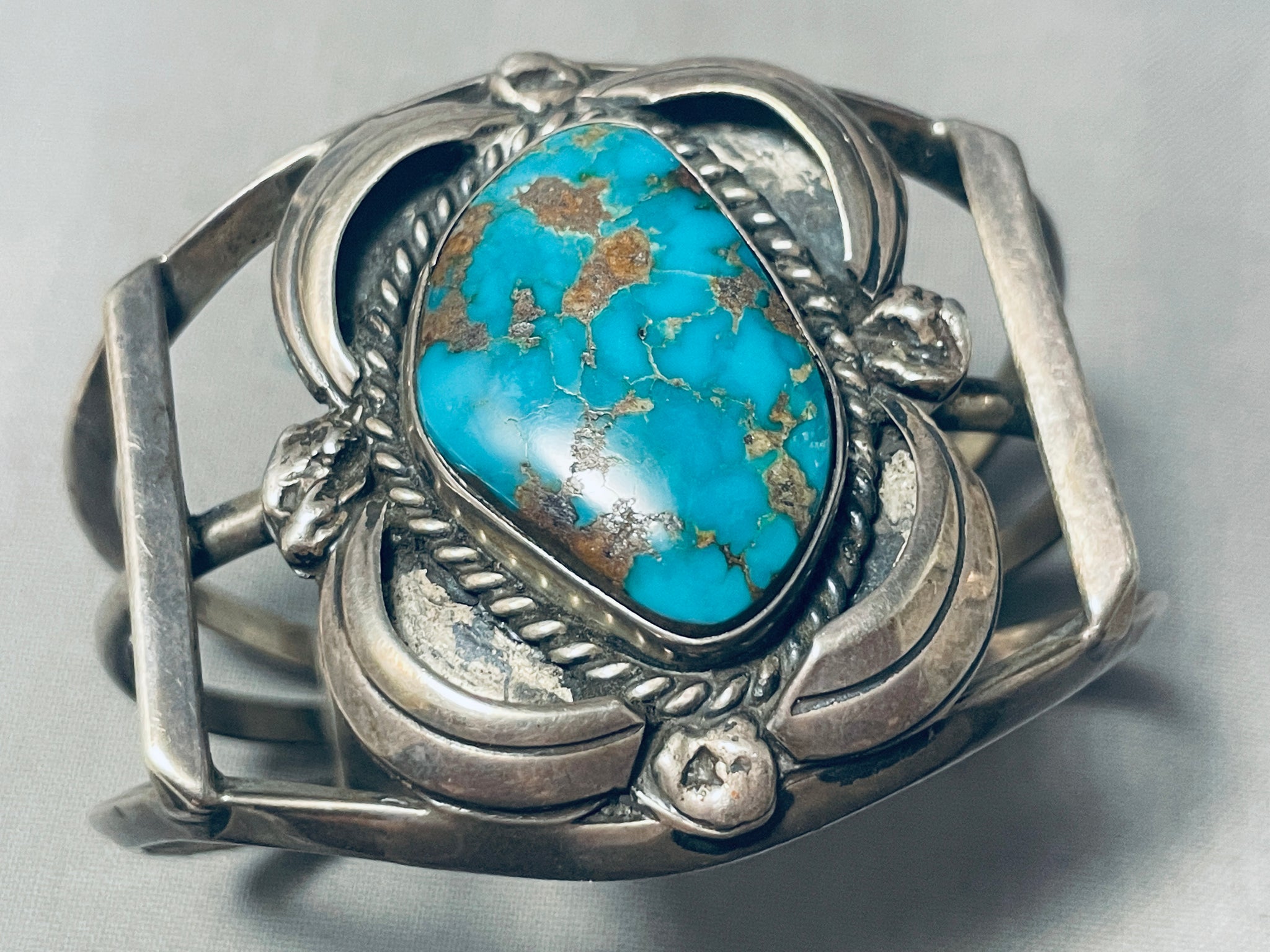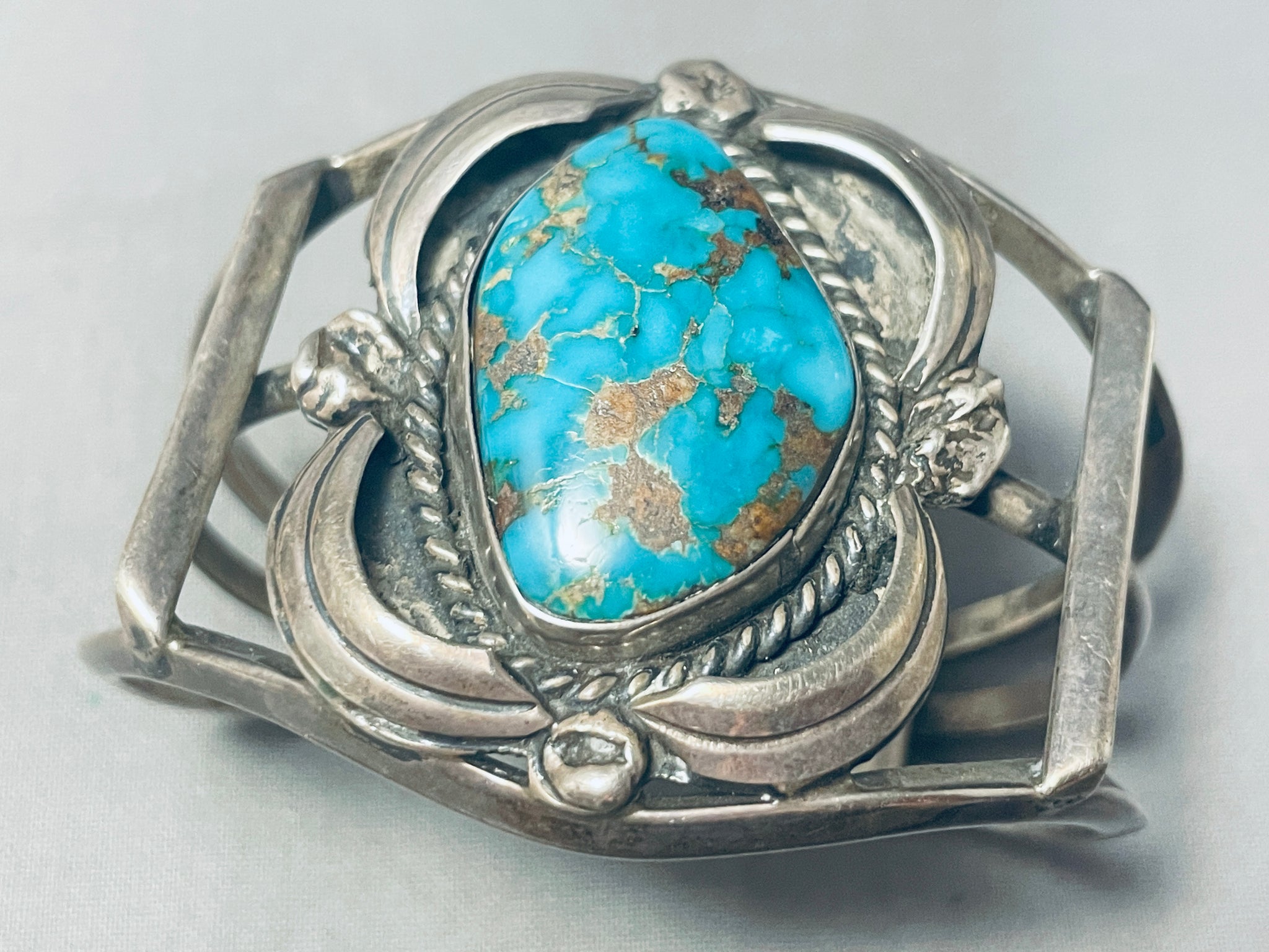 One Opf The Best Ever Vintage Native American Navajo Blue Gem Turquoise Sterling Silver Bracelet