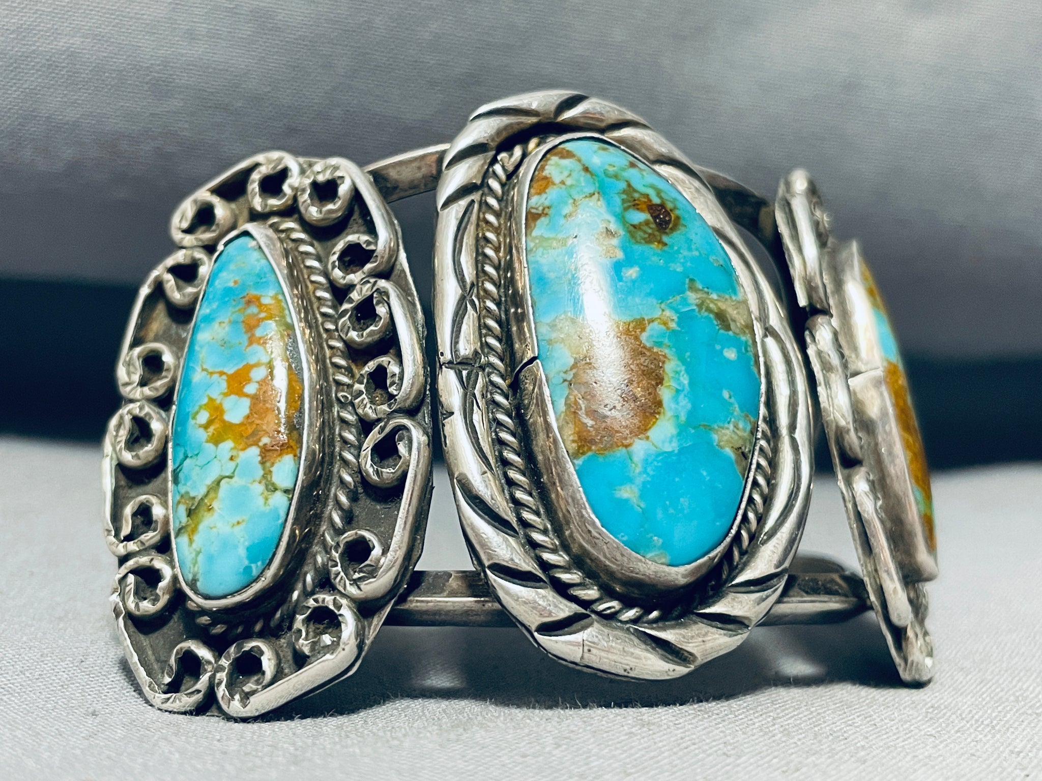 Opulent Vintage Native American Navajo #8 Turquoise Sterling Silver Bracelet