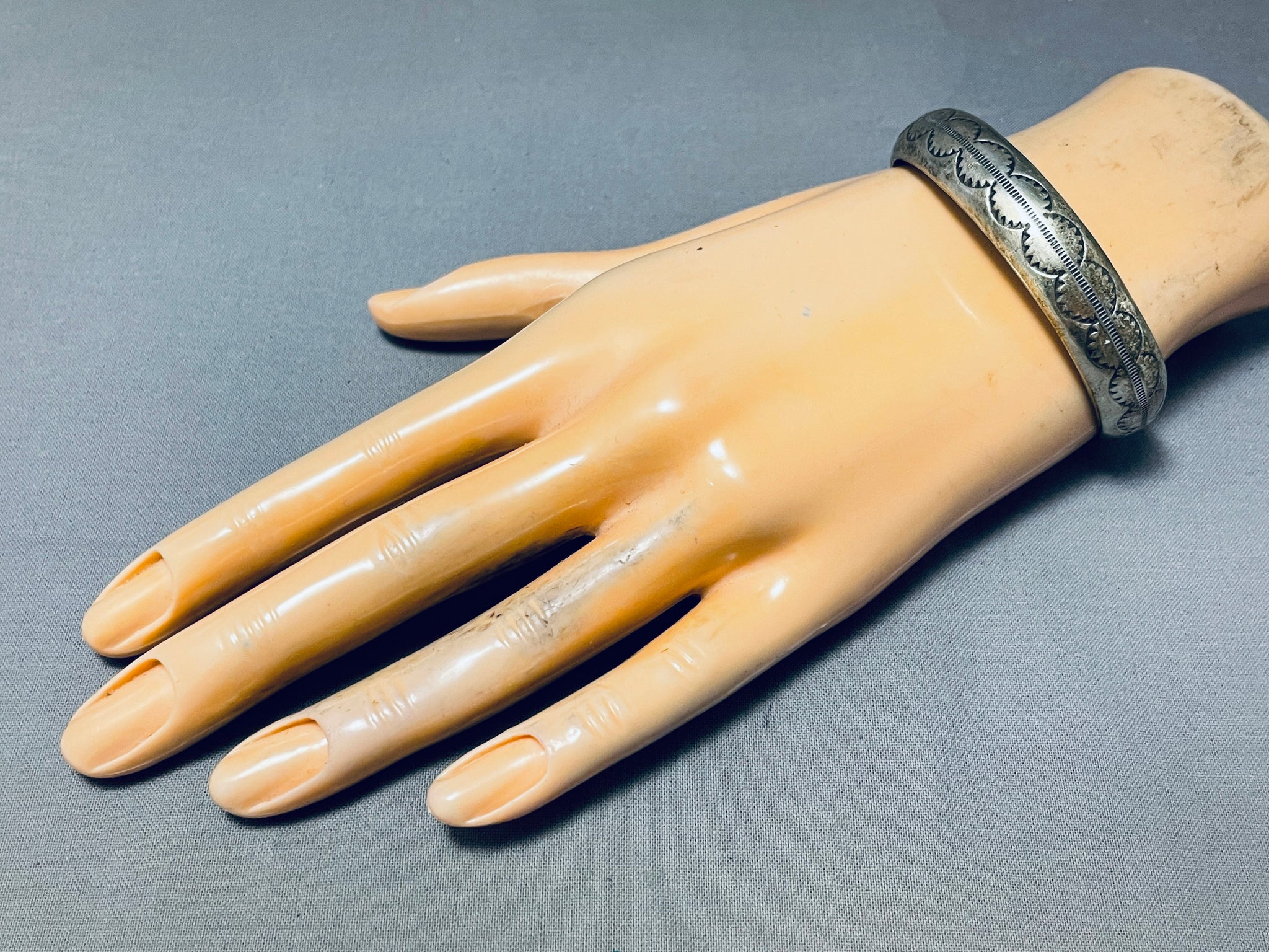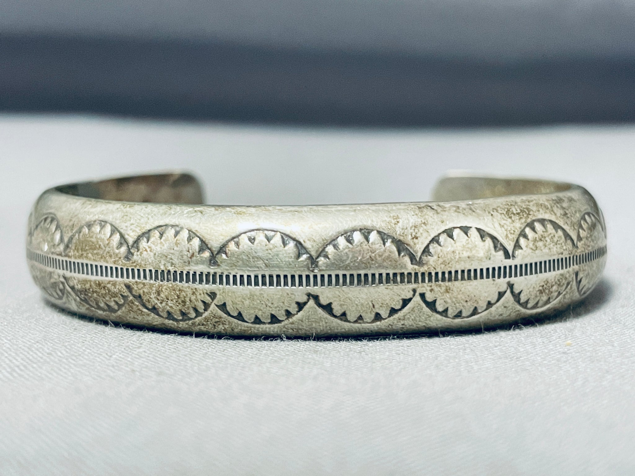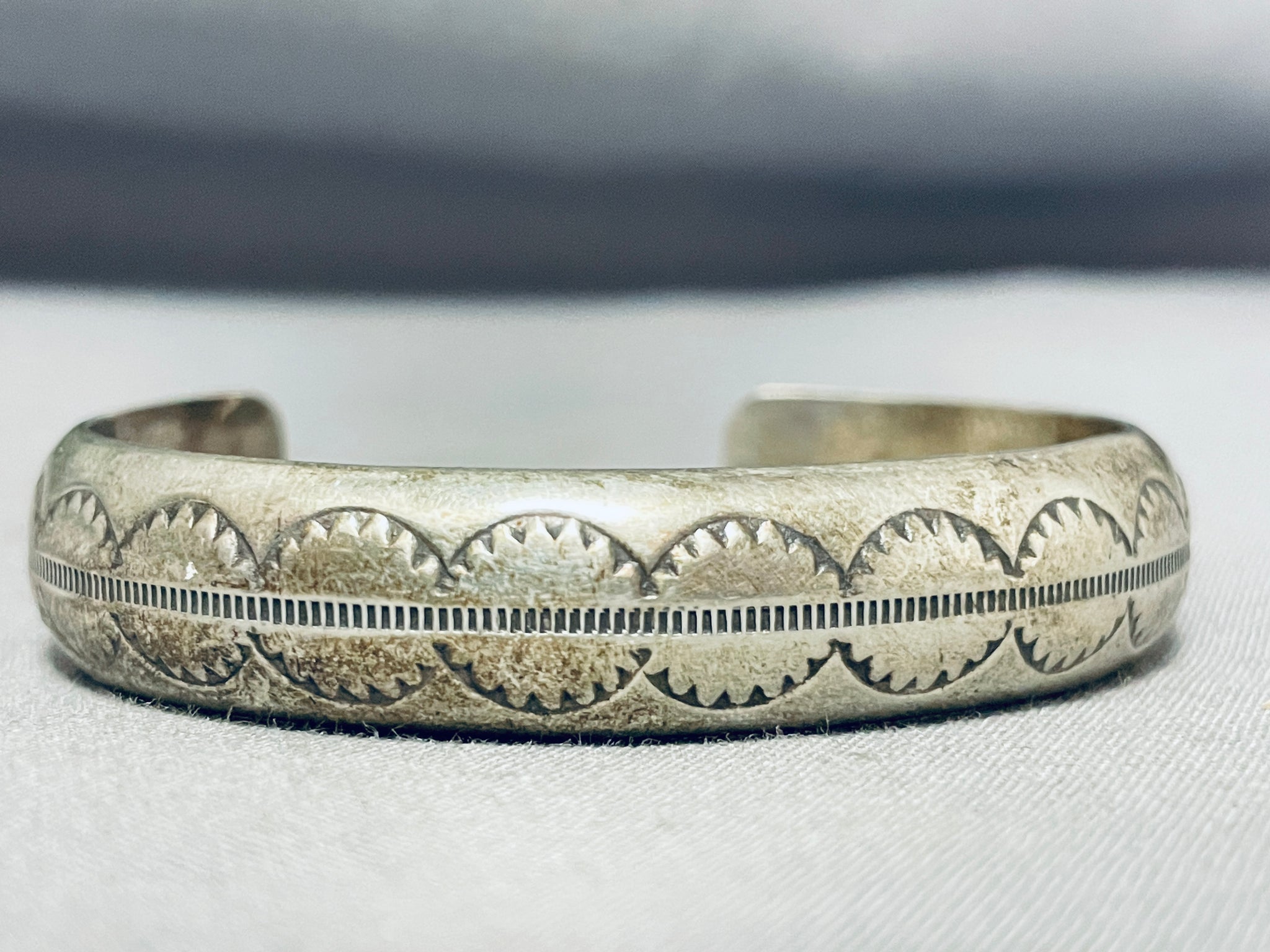Outstanding Vintage Native American Navajo Sterling Silver Handstamped Bracelet