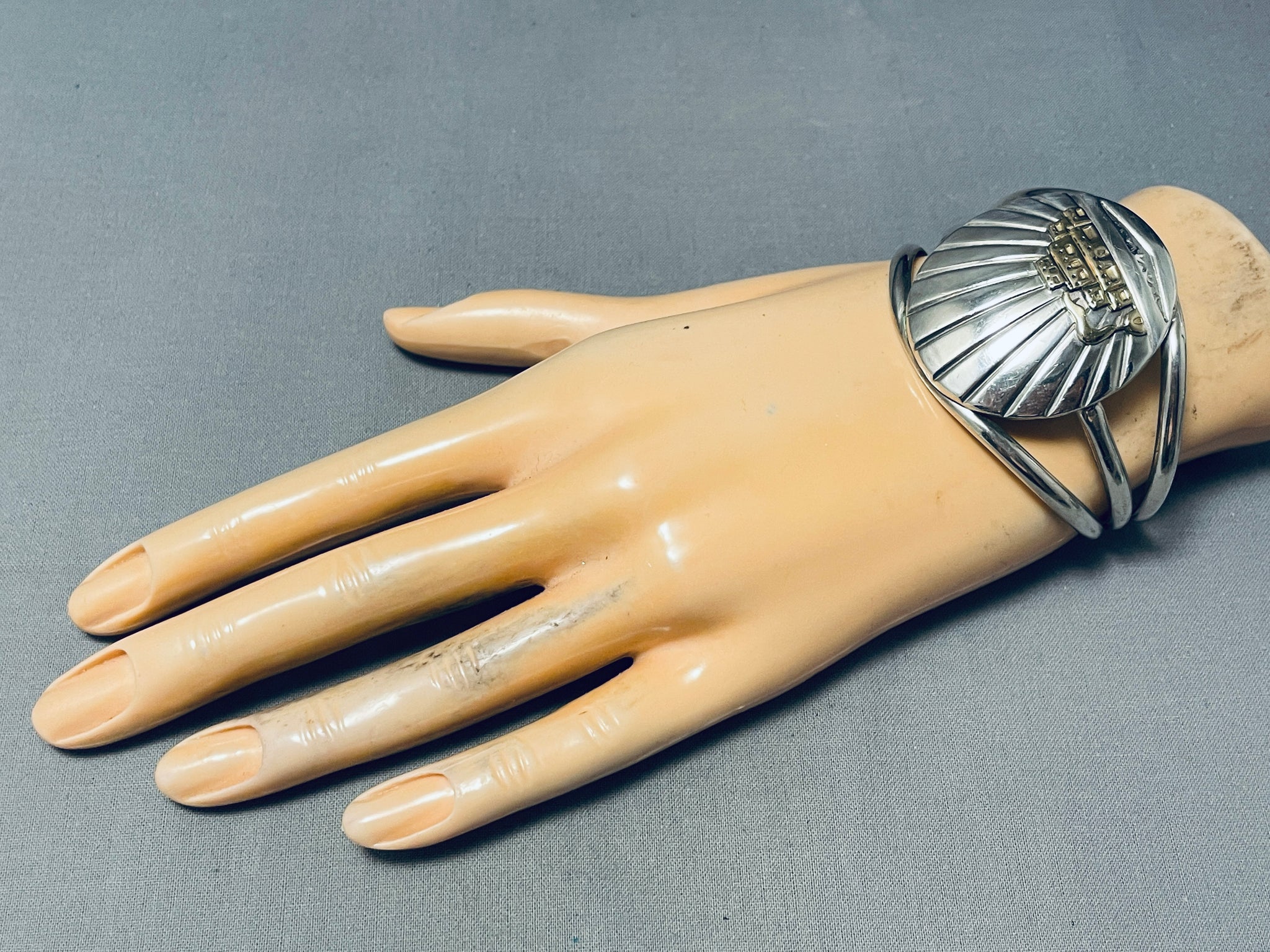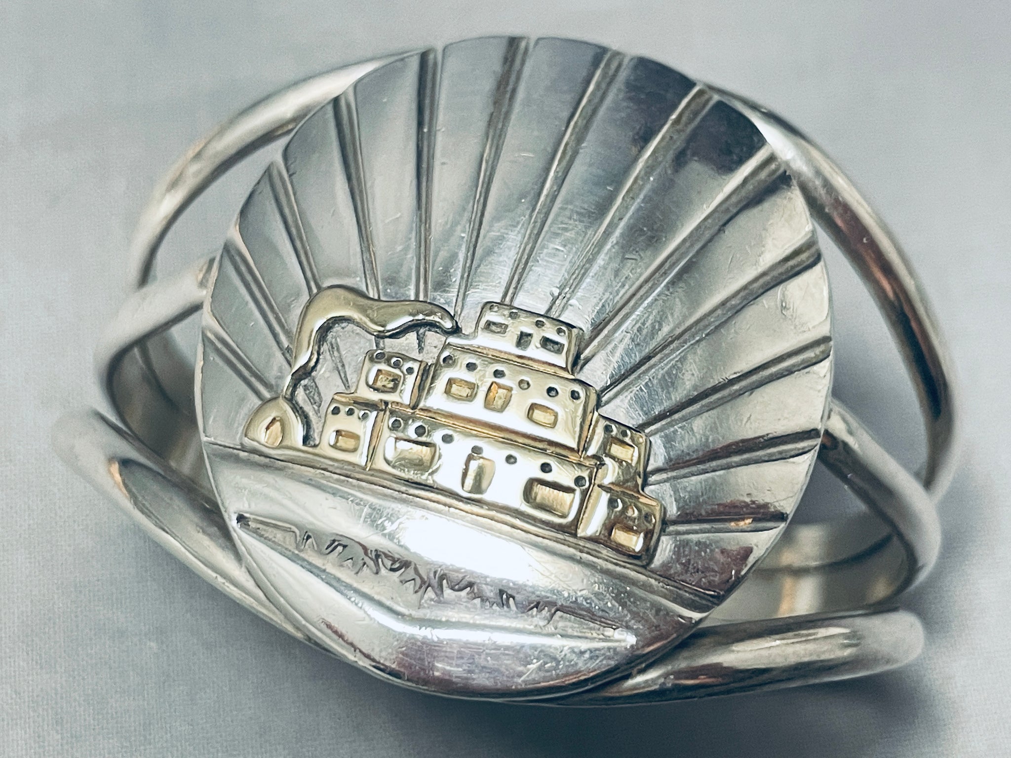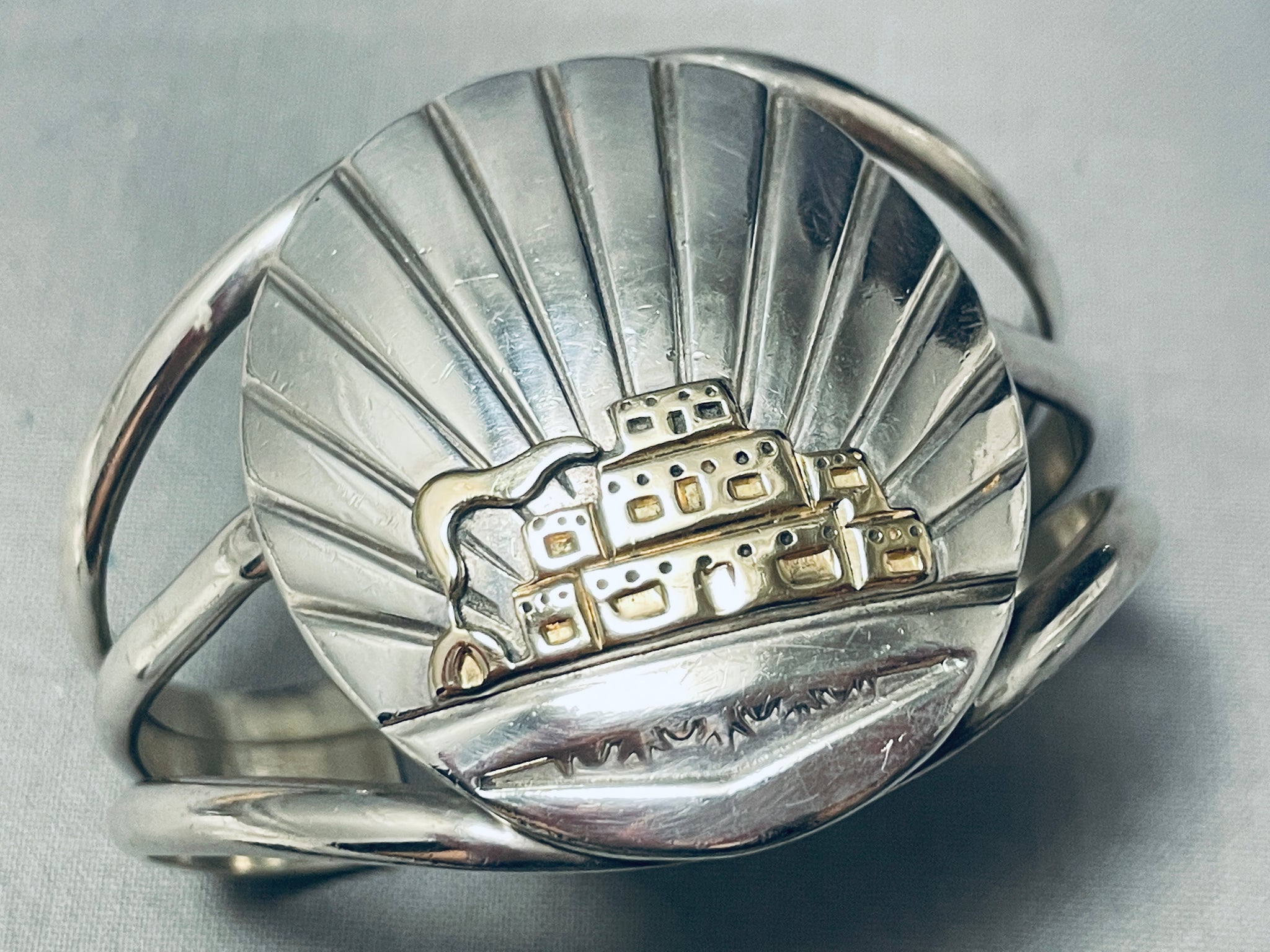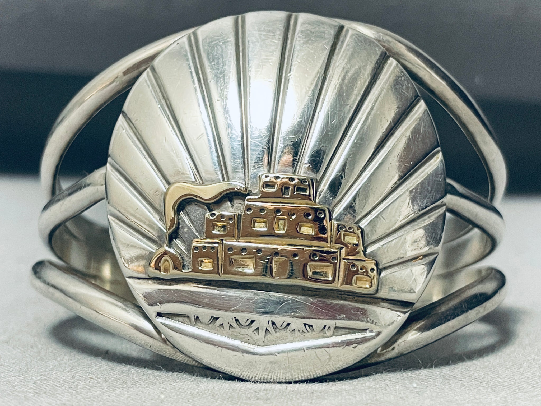 Pueblo Gold Vintage Native American Navajo Sterling Silver Bracelet Cuff