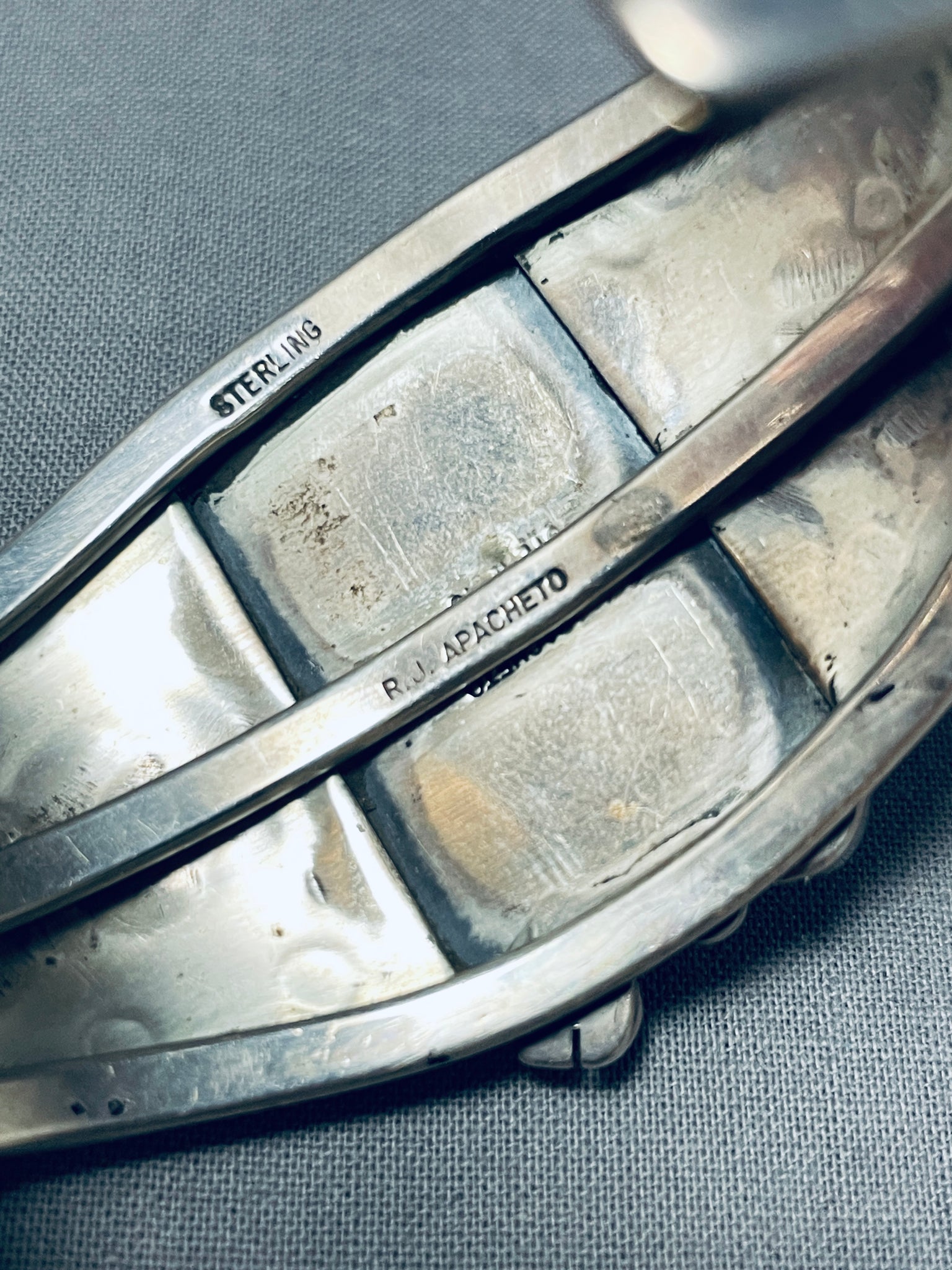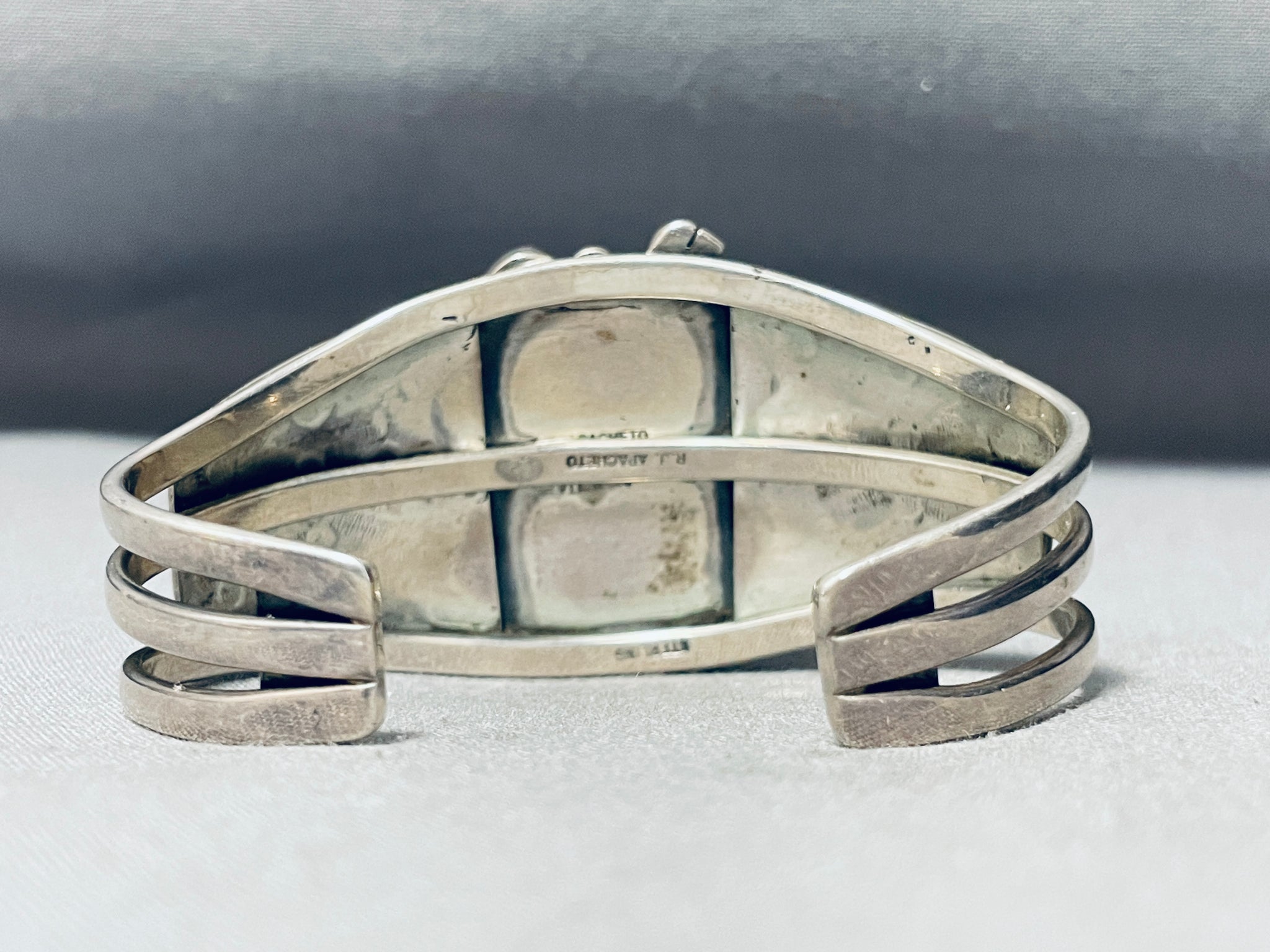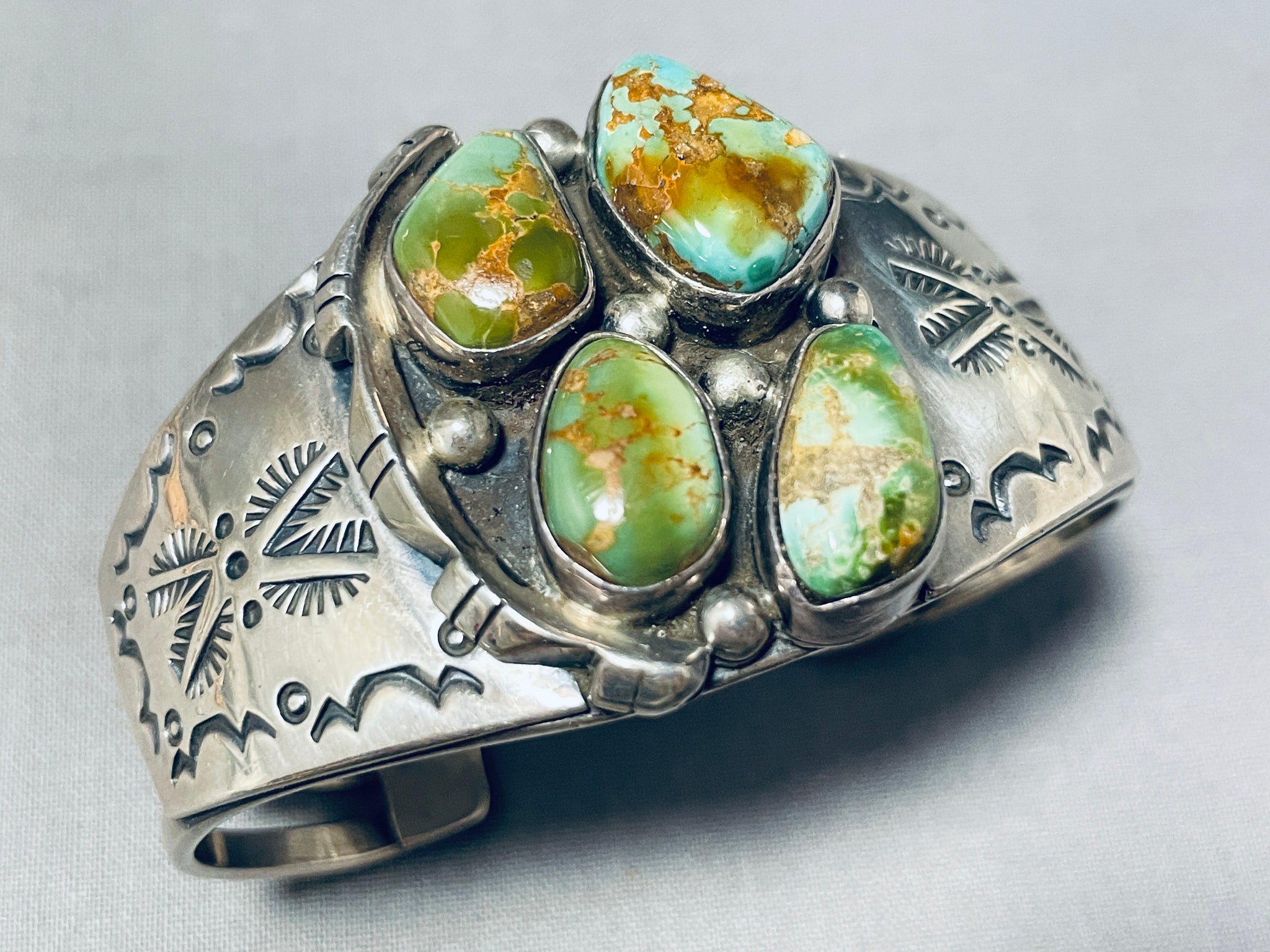 Quad Cluster Vintage Native American Navajo Royston Turquoise Sterling Silver Bracelet