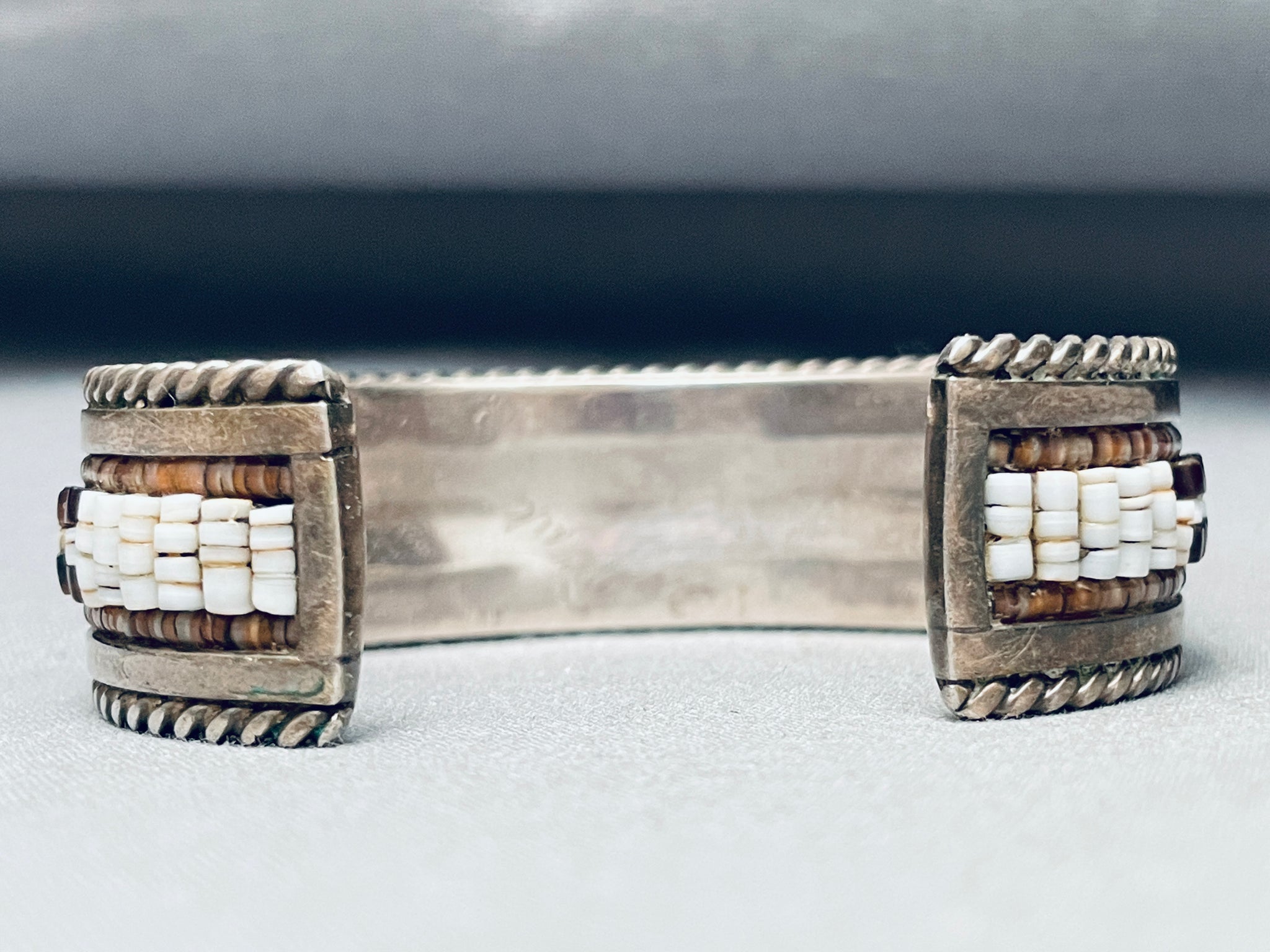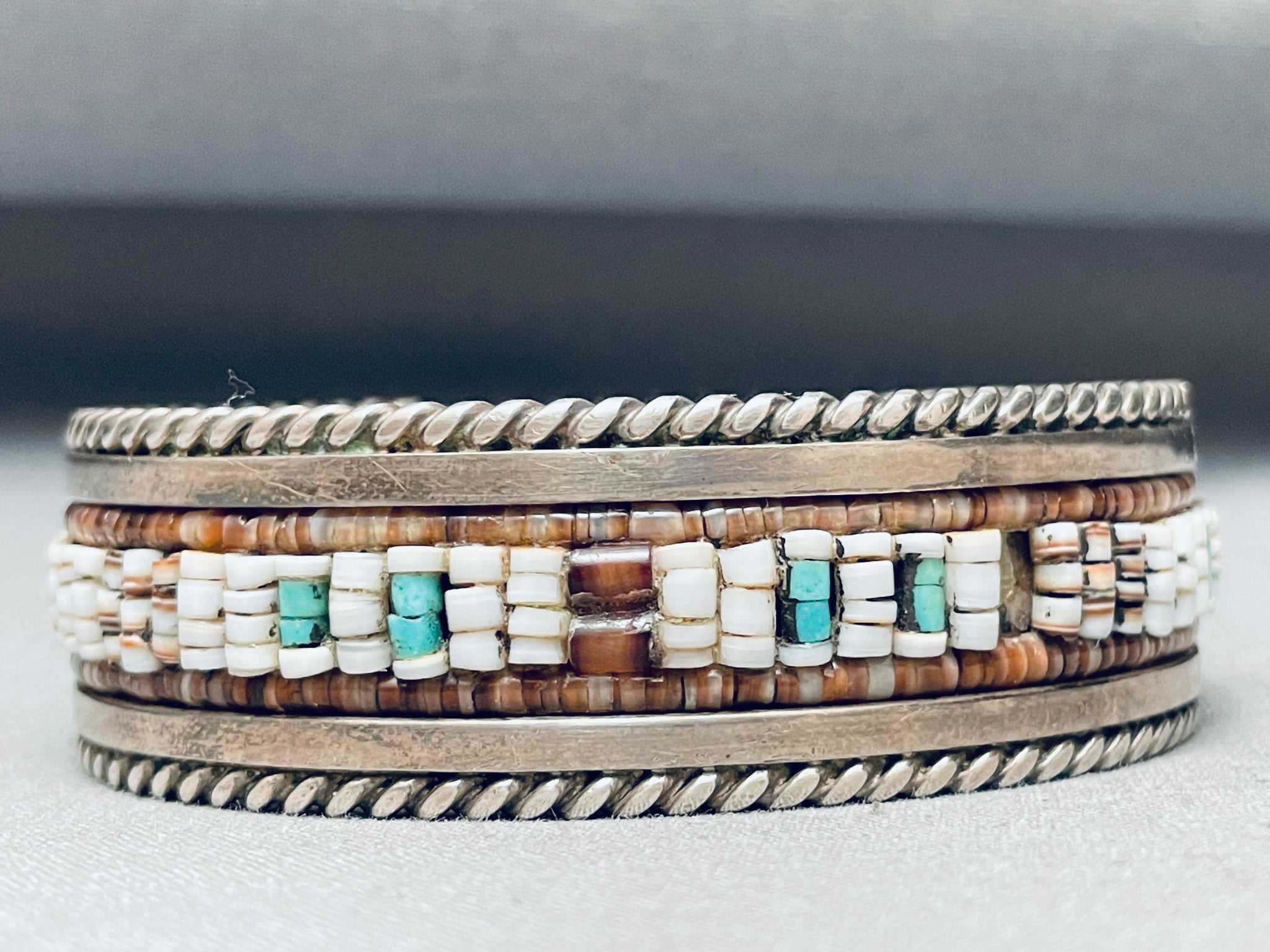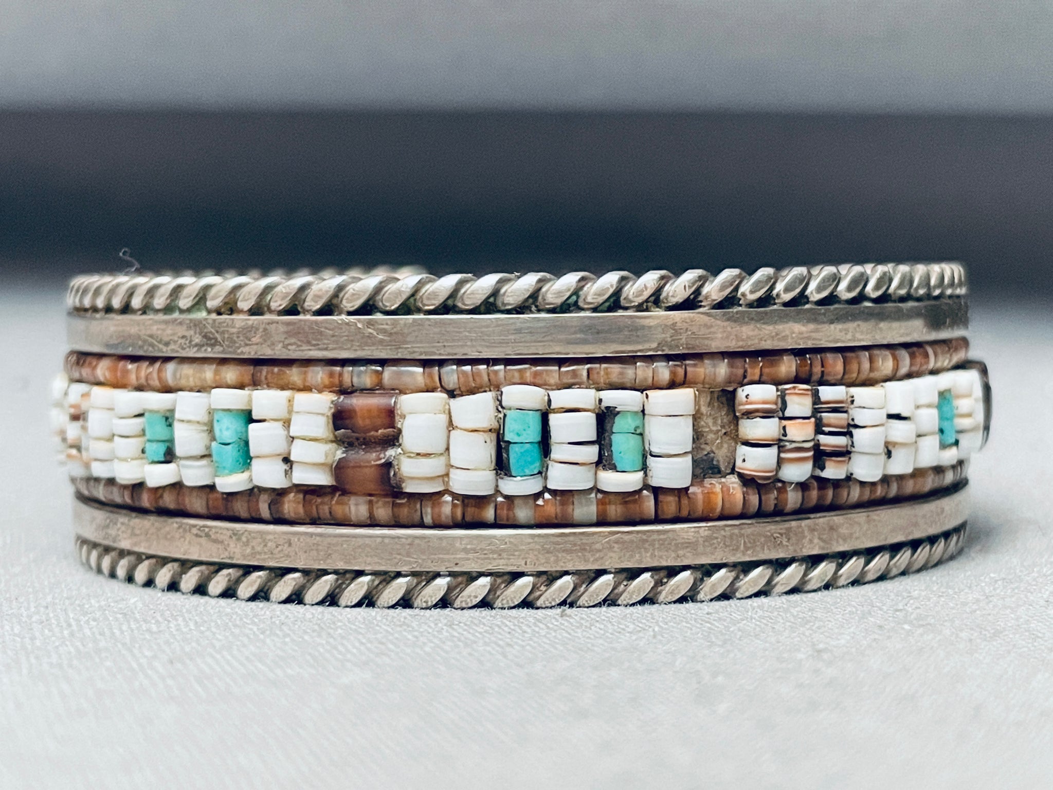 Rare Hand Beaded Vintage Native American Navajo Turquoise Sterling Silver Inlay Bracelet