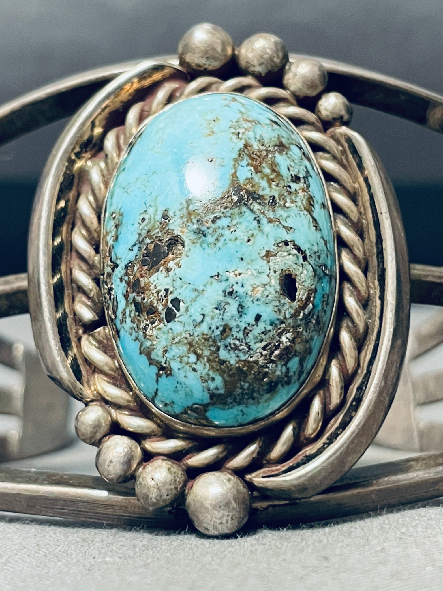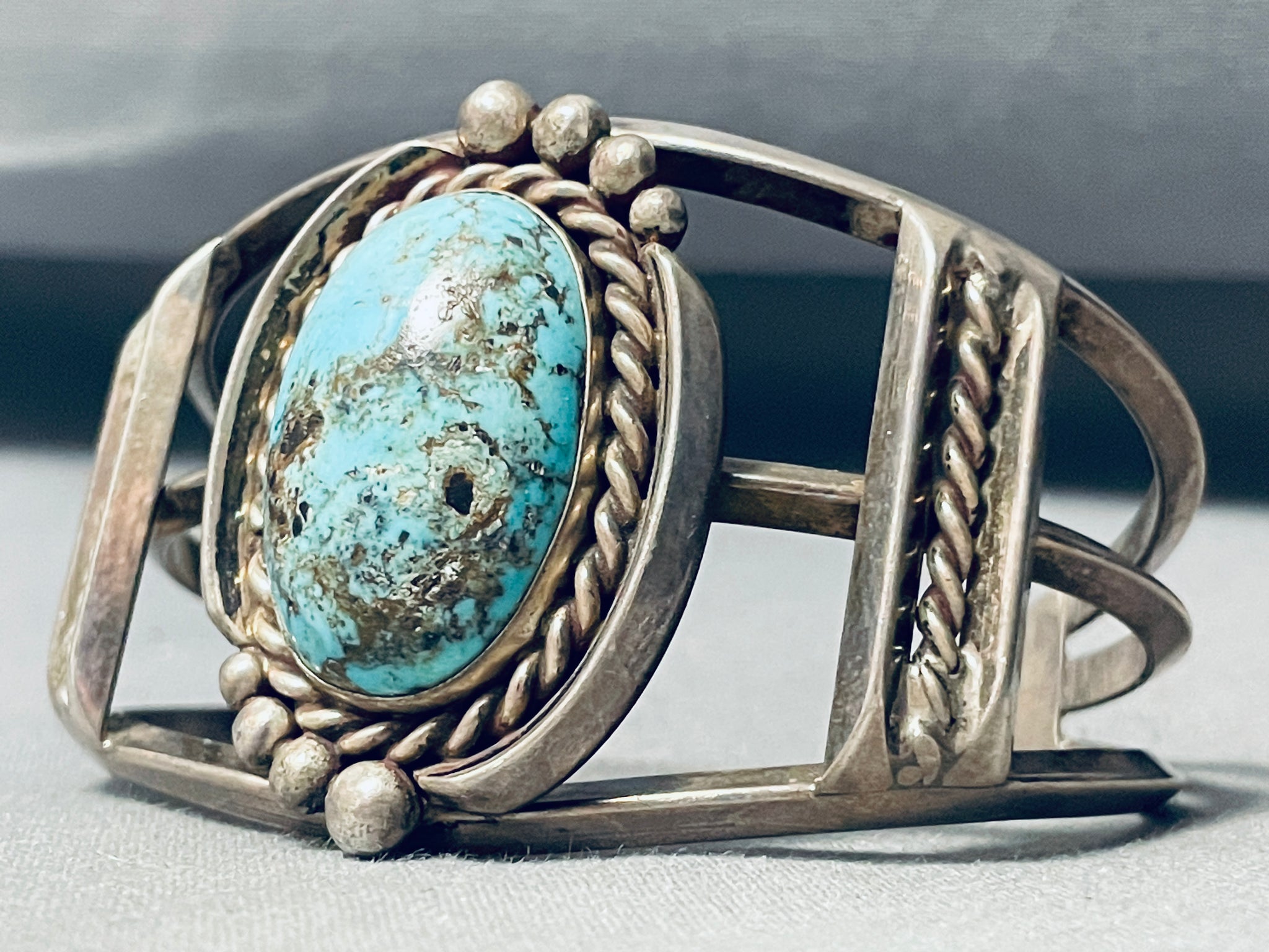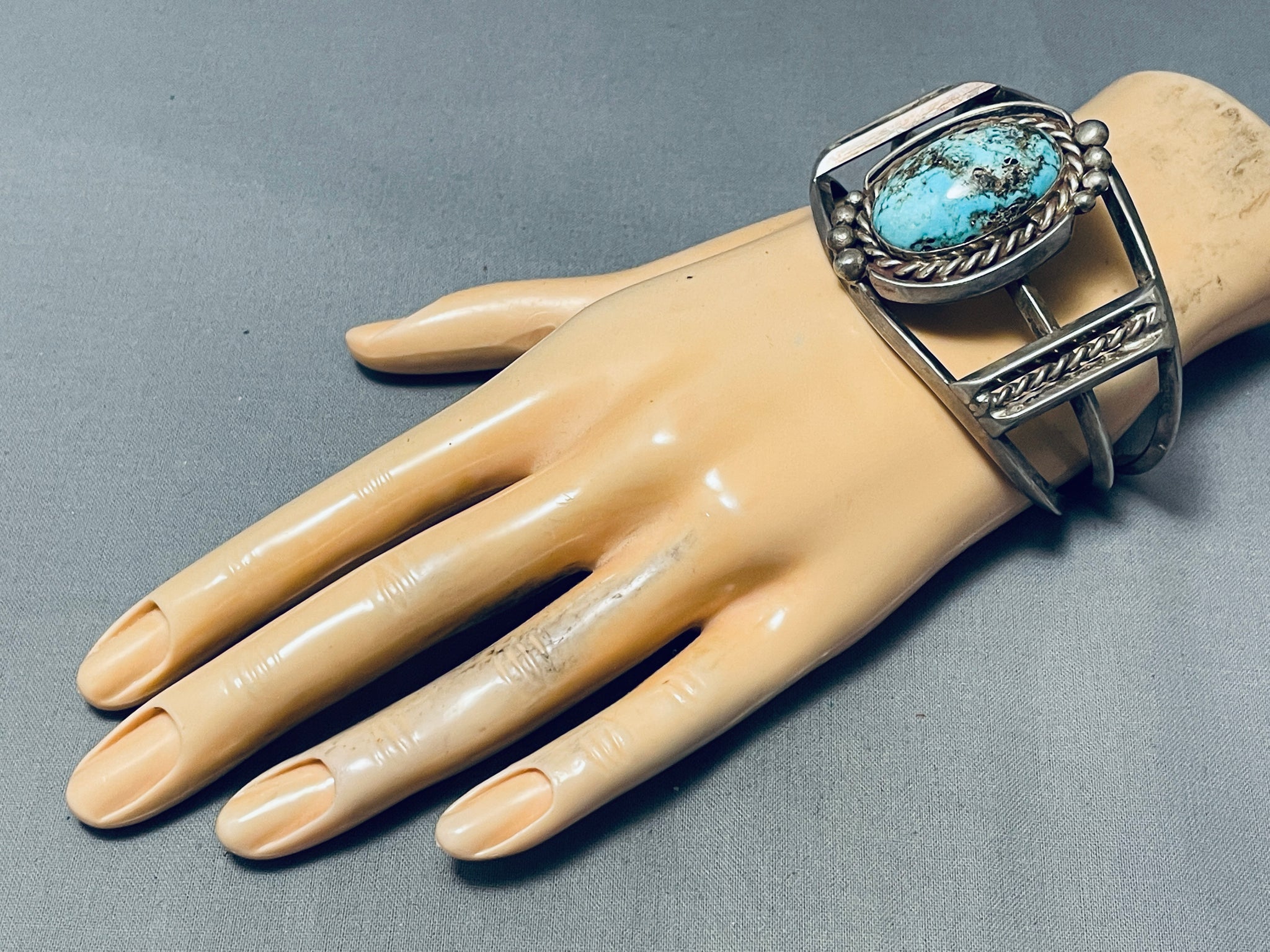 Rare Turquoise Mine Vintage Native American Navajo Sterling Silver Bracelet Cuff