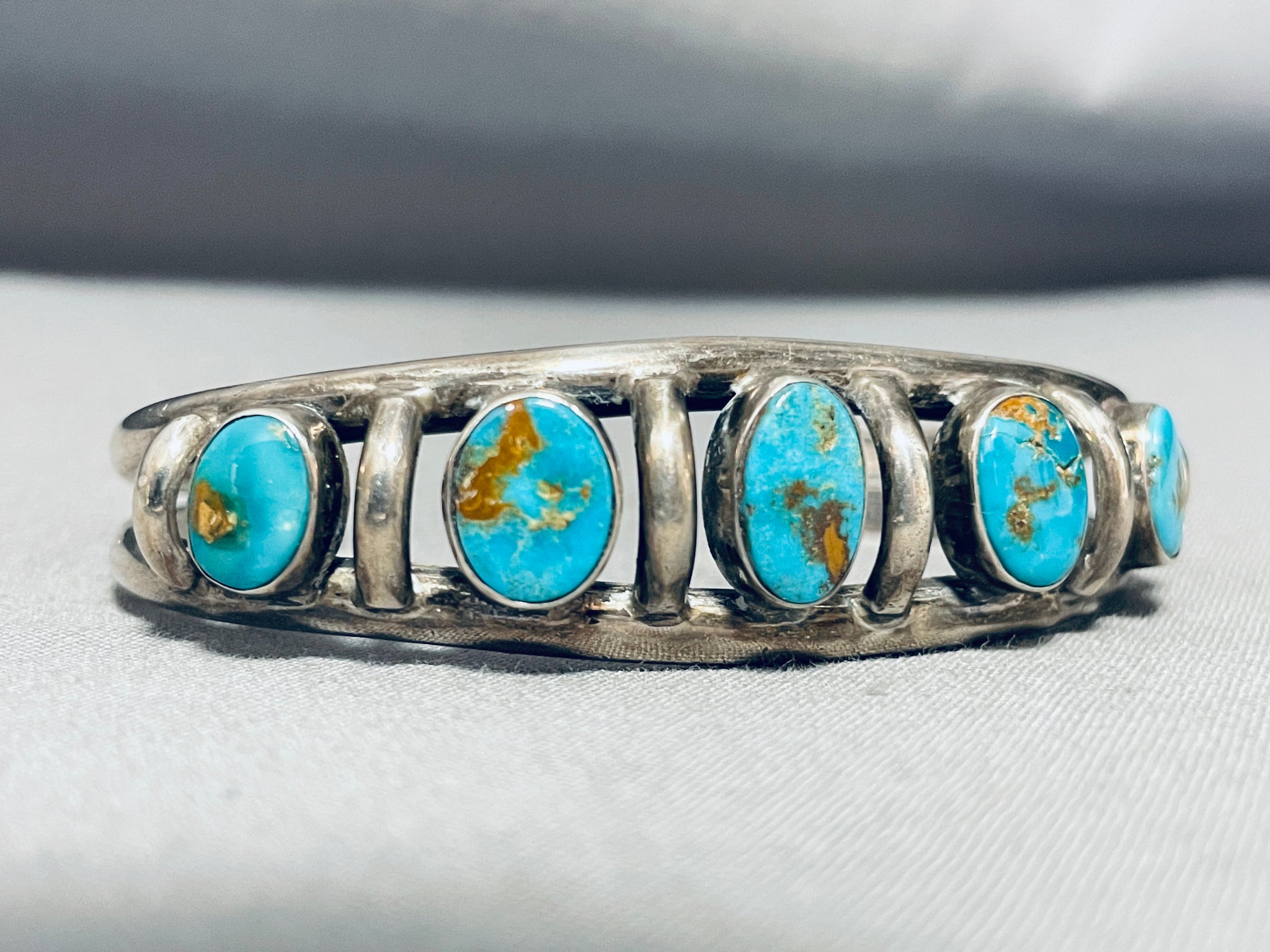 Rare Turquoise Vintage Native American Navajo Sterling Silver Bracelet