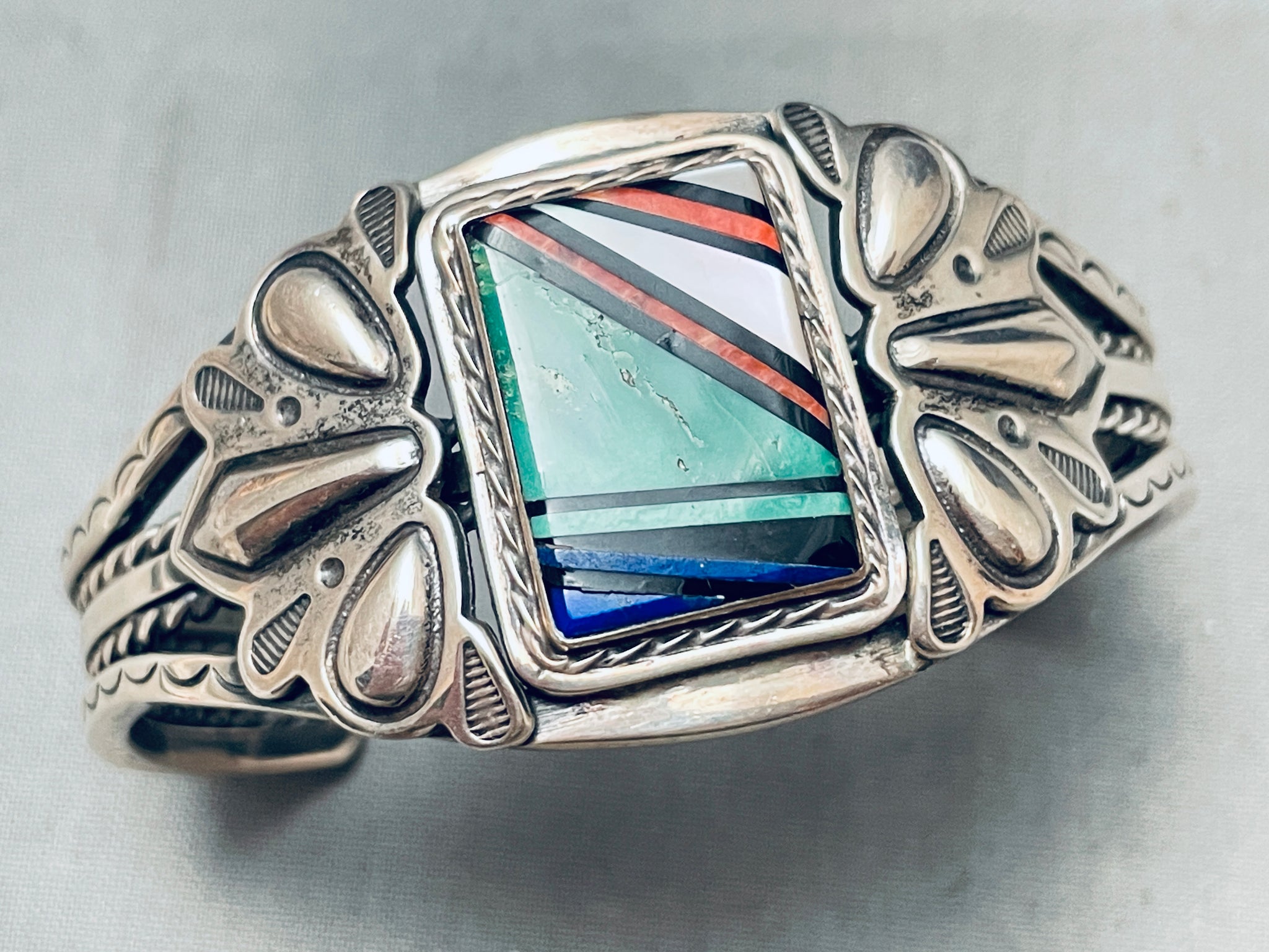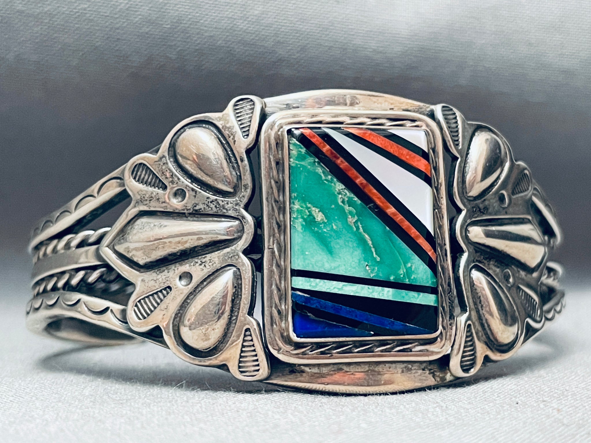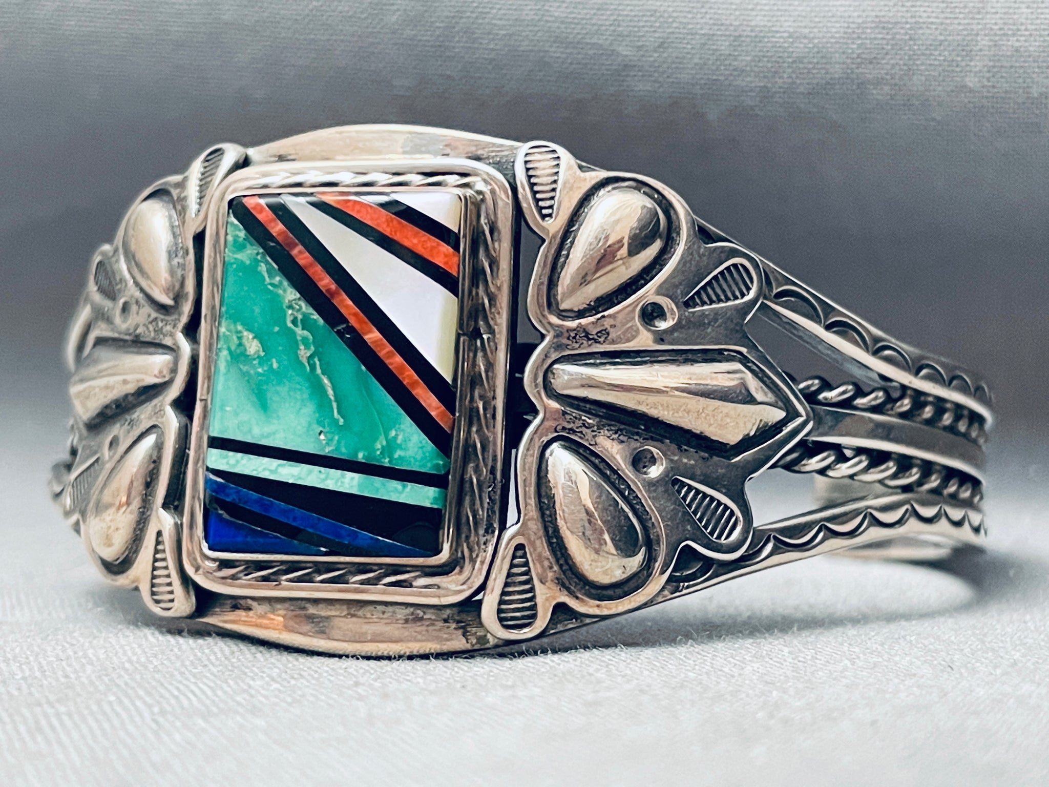 Rare Vintage Santo Domingo Kewa Turquoise Sterling Silve Rinlay Bracelet
