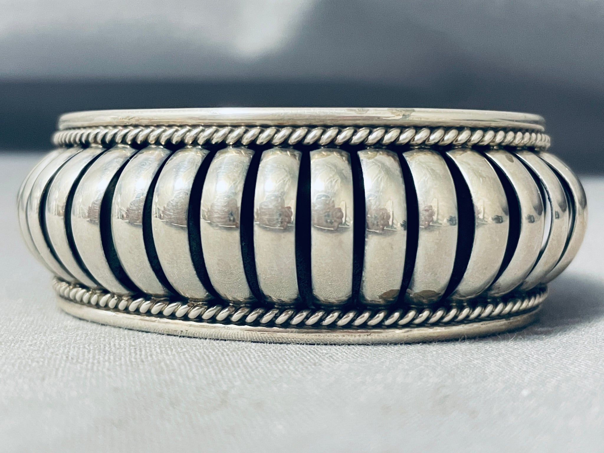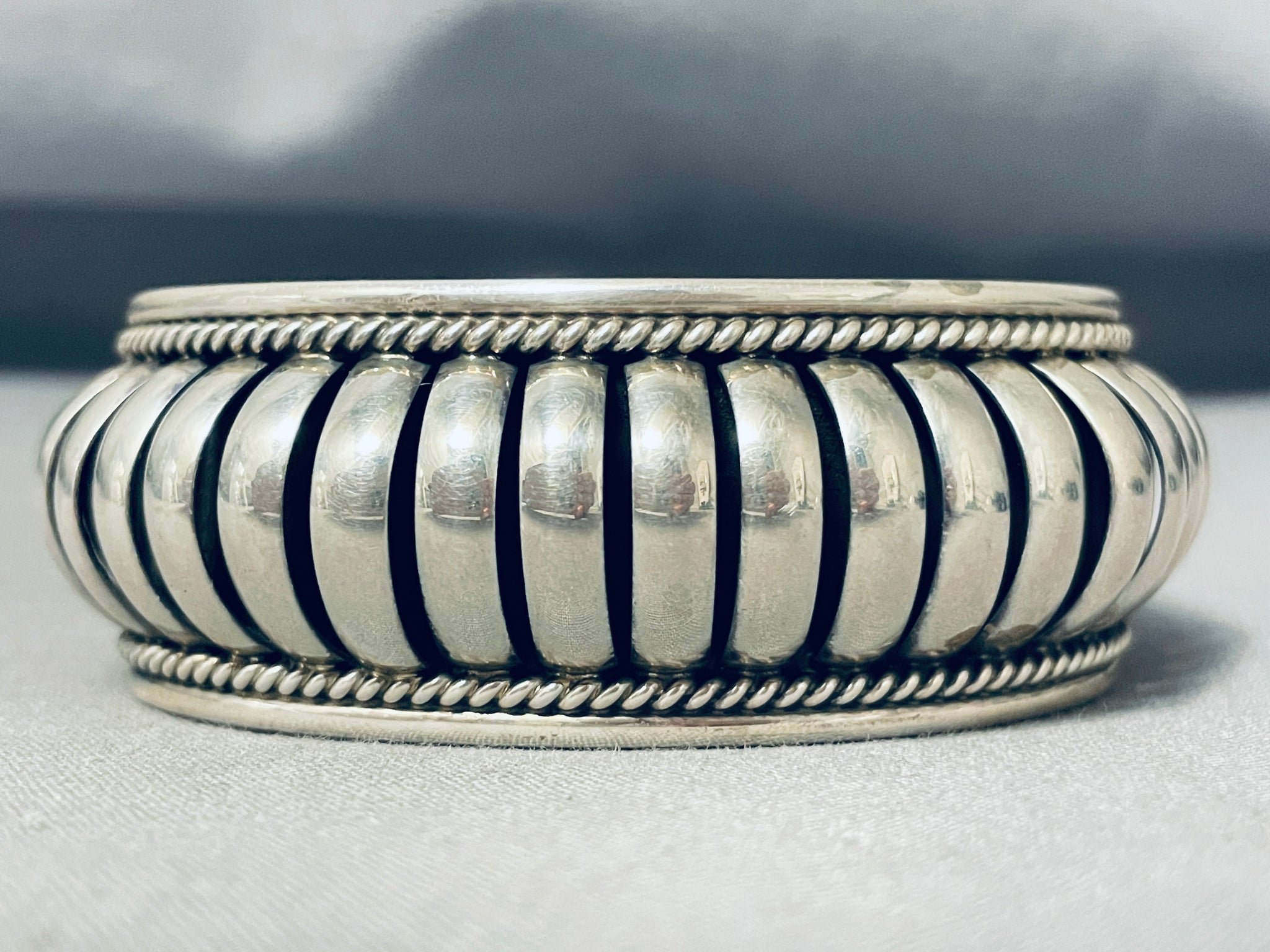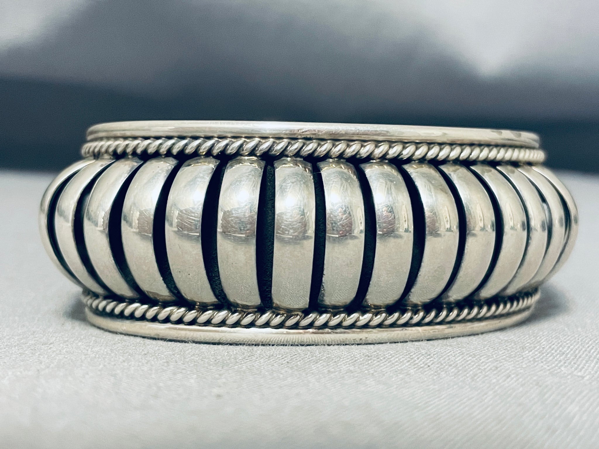 Remarkable Native American Navajo Handmade Basket Sterling Silver Bracelet Marked