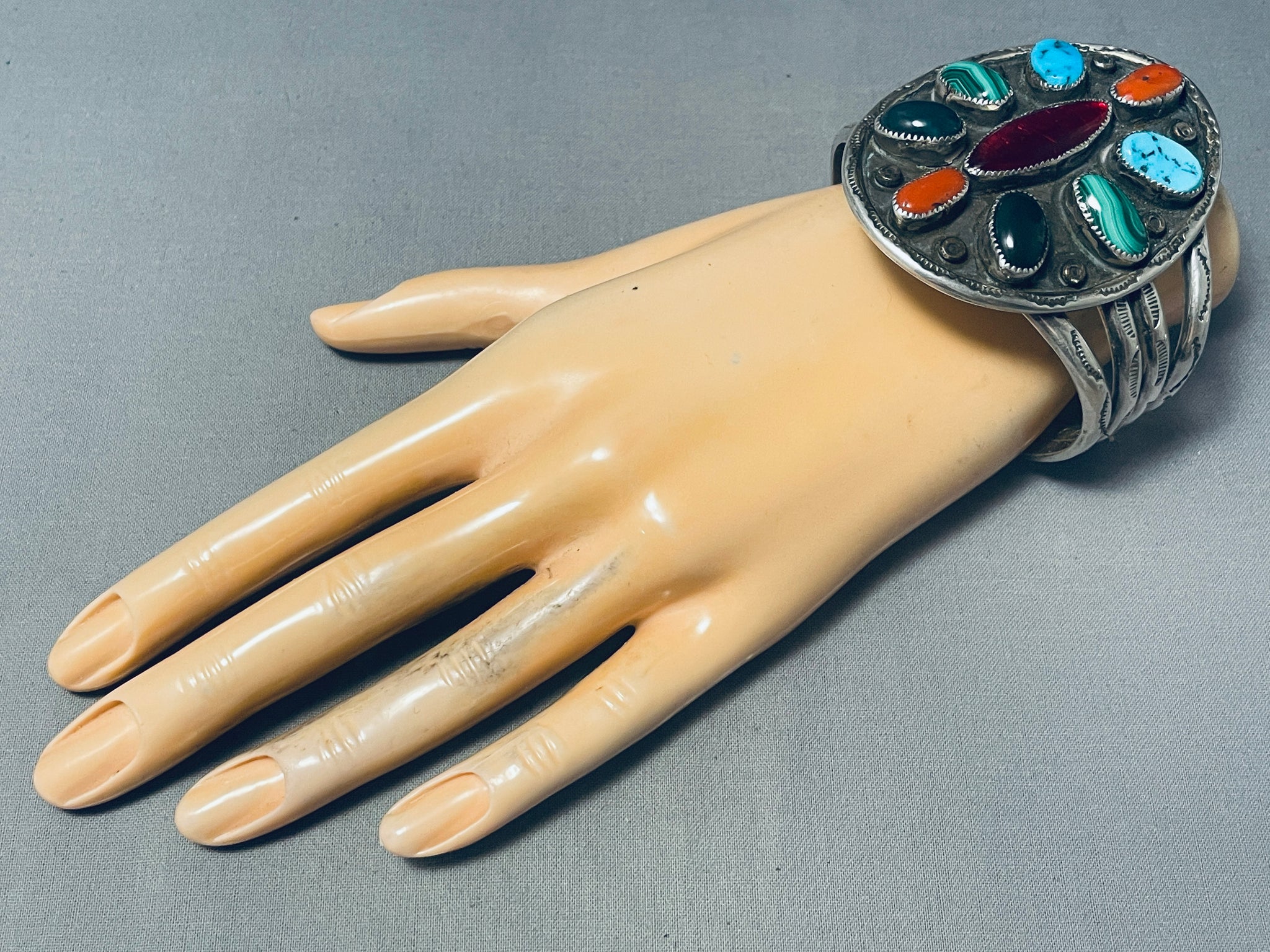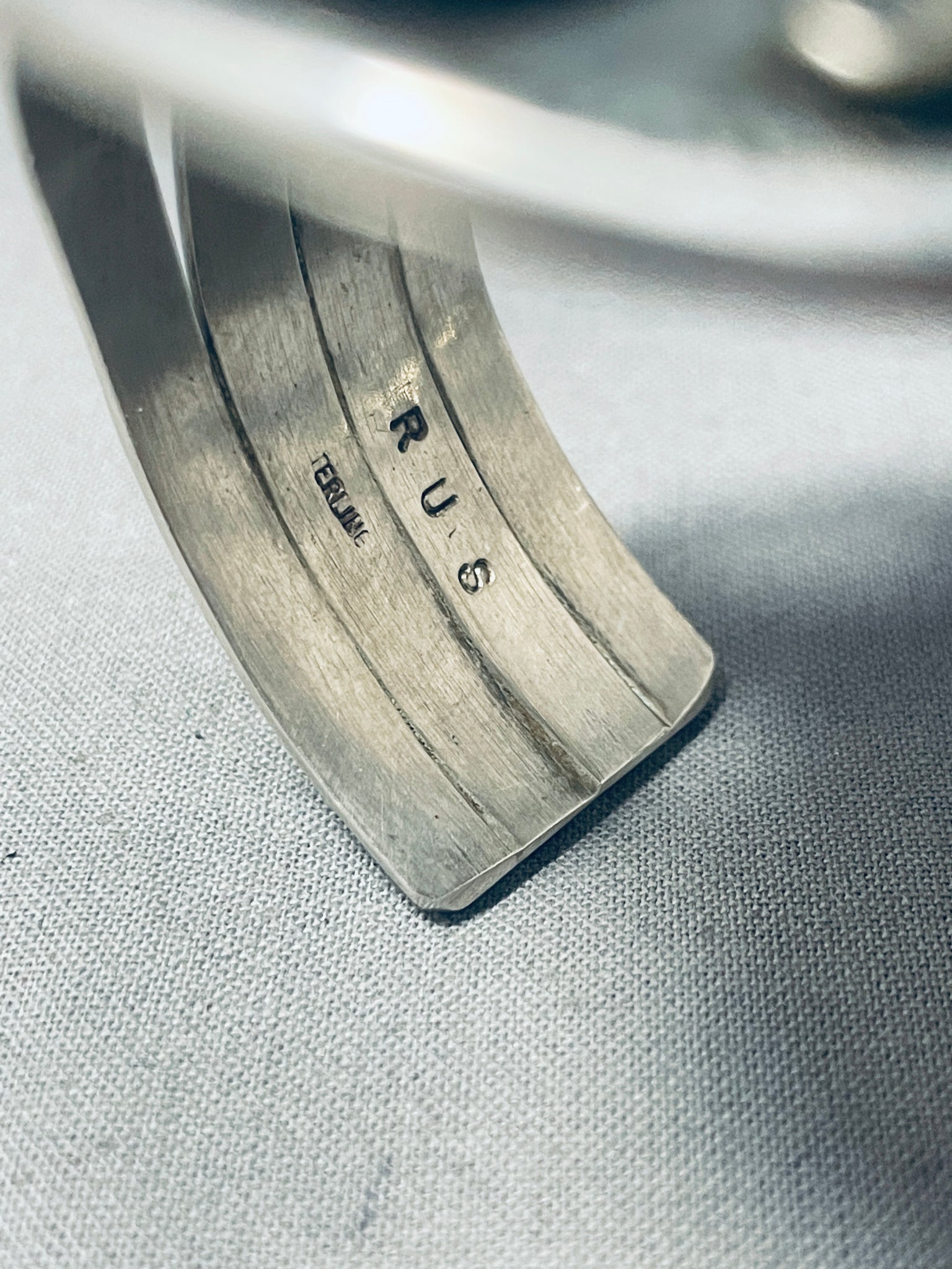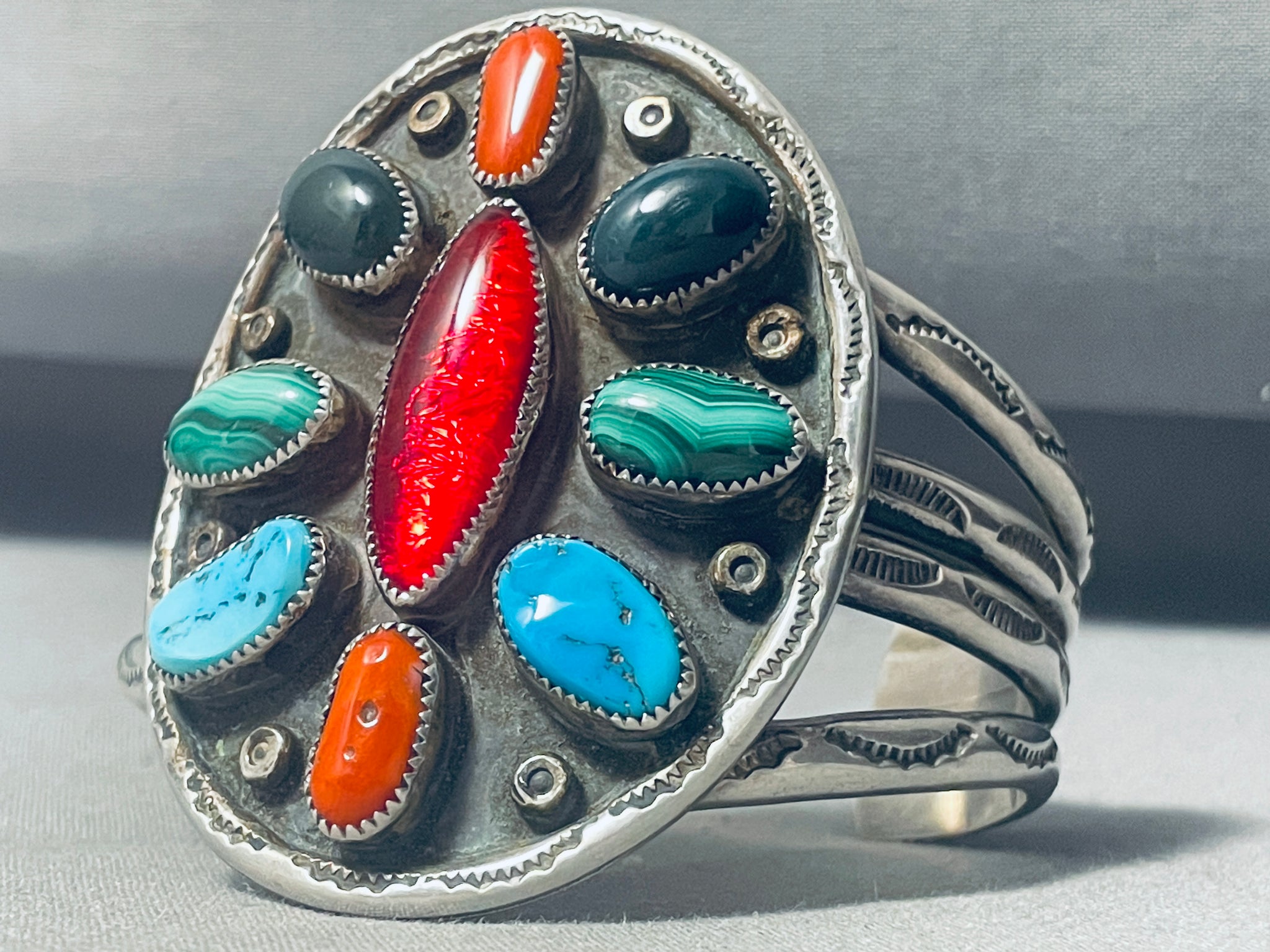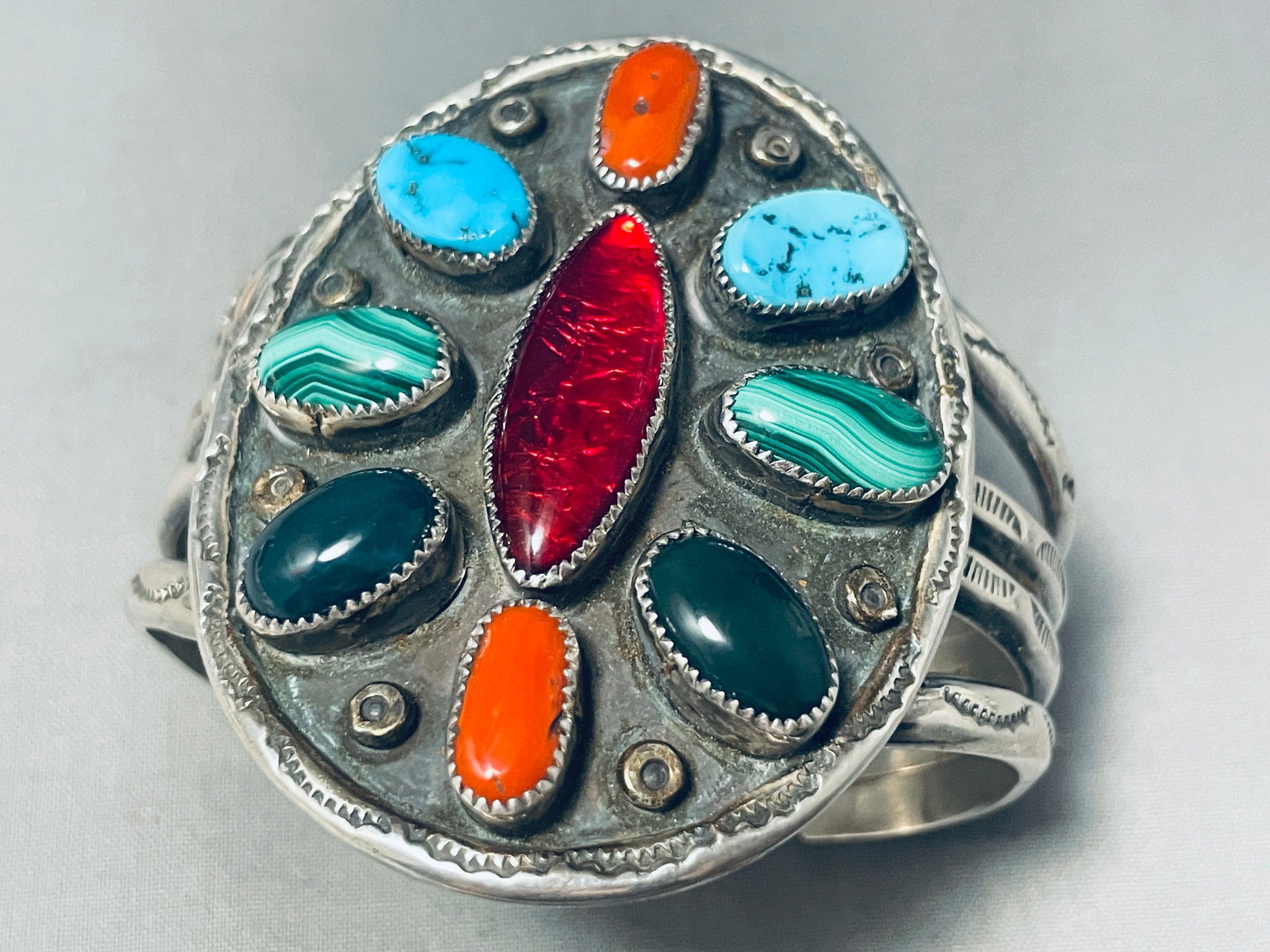 Ruby Red Vintage Native American Navajo Turquoise Sterling Silver Bracelet Cuff Old