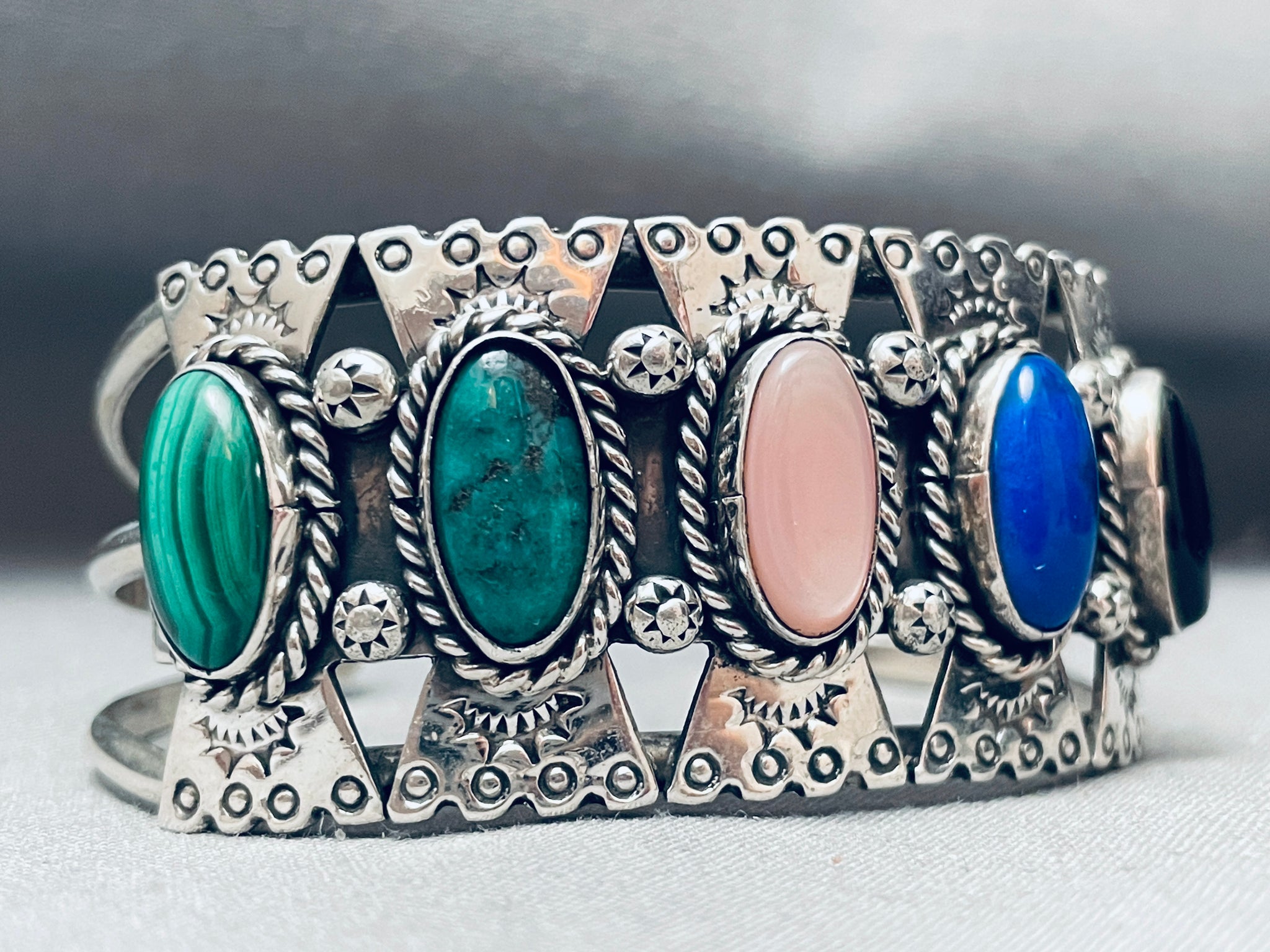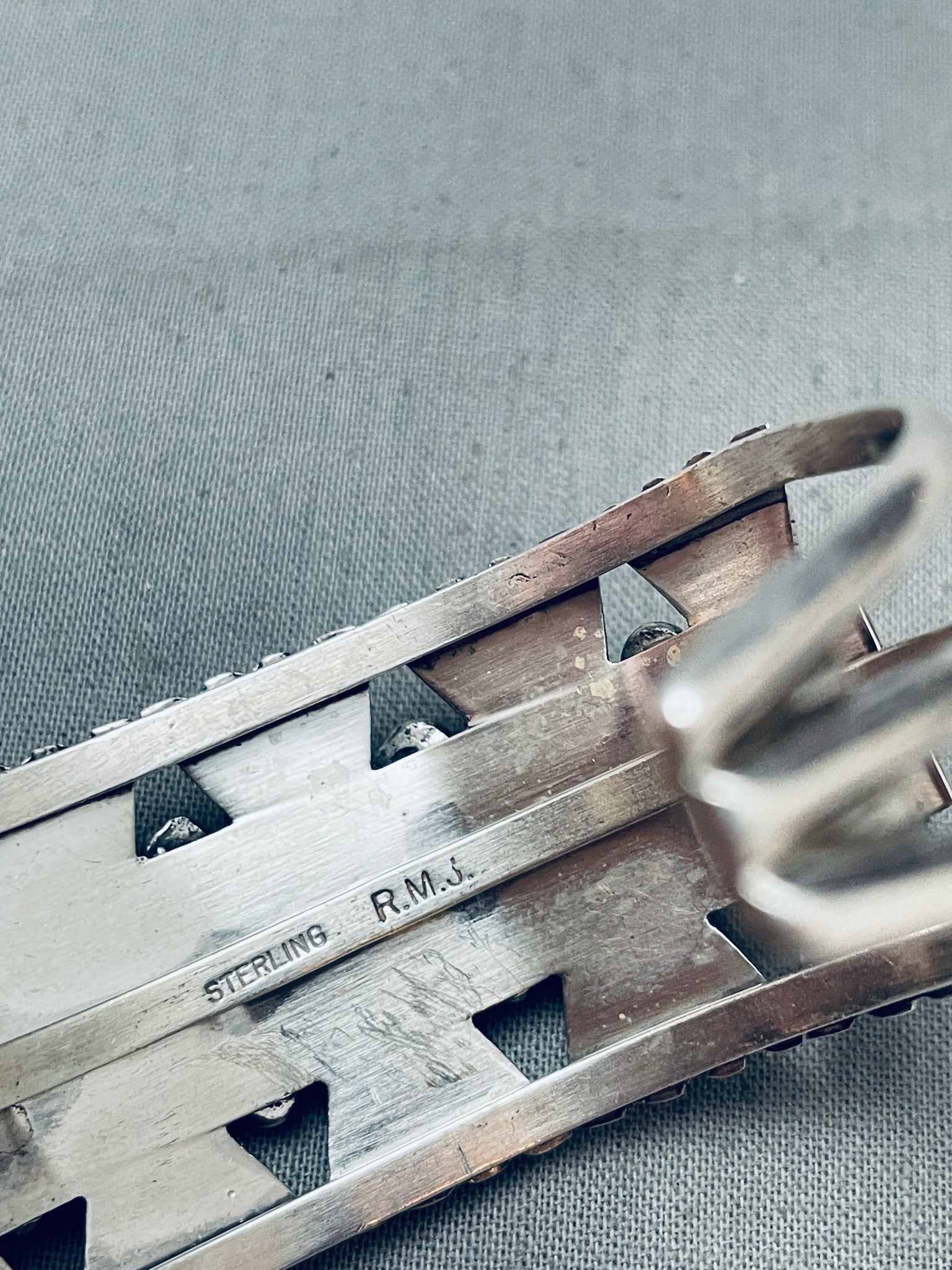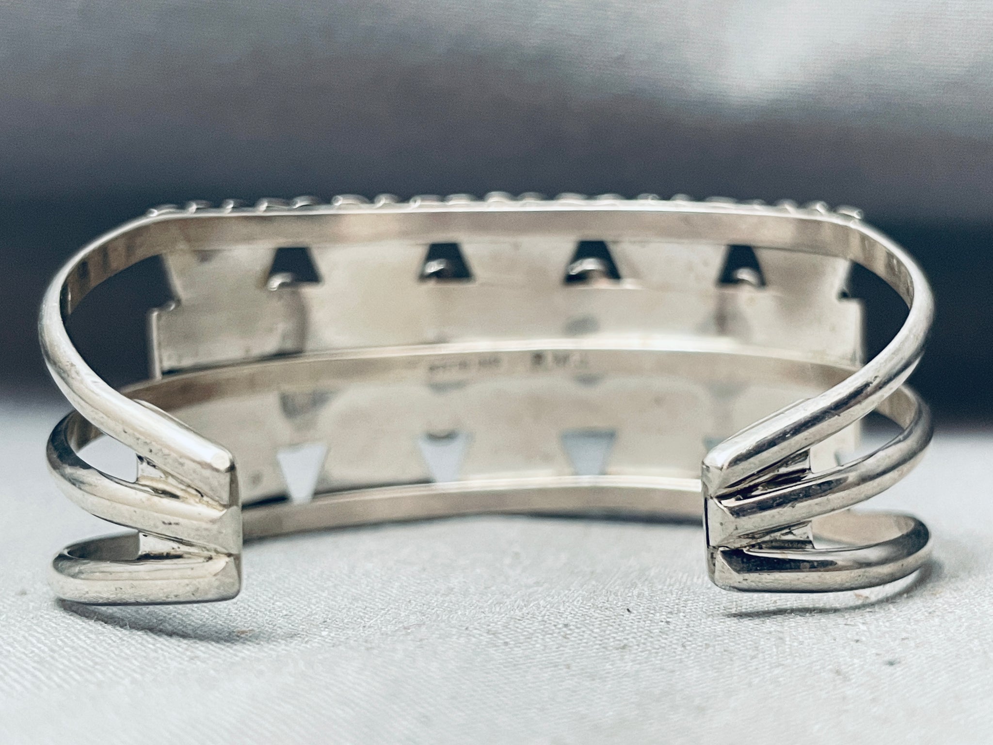 Signed Vintage Concho Native American Navajo Turquoise Sterling Silver Bracelet