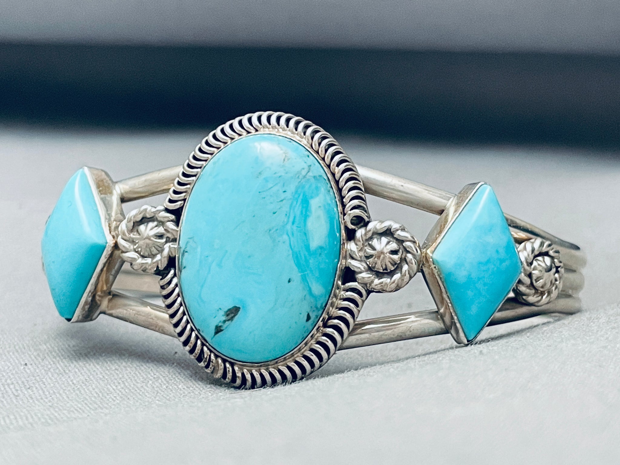 Sky Blue Turquosie Vintage Native American Navajo Sterling Silver Bracelet