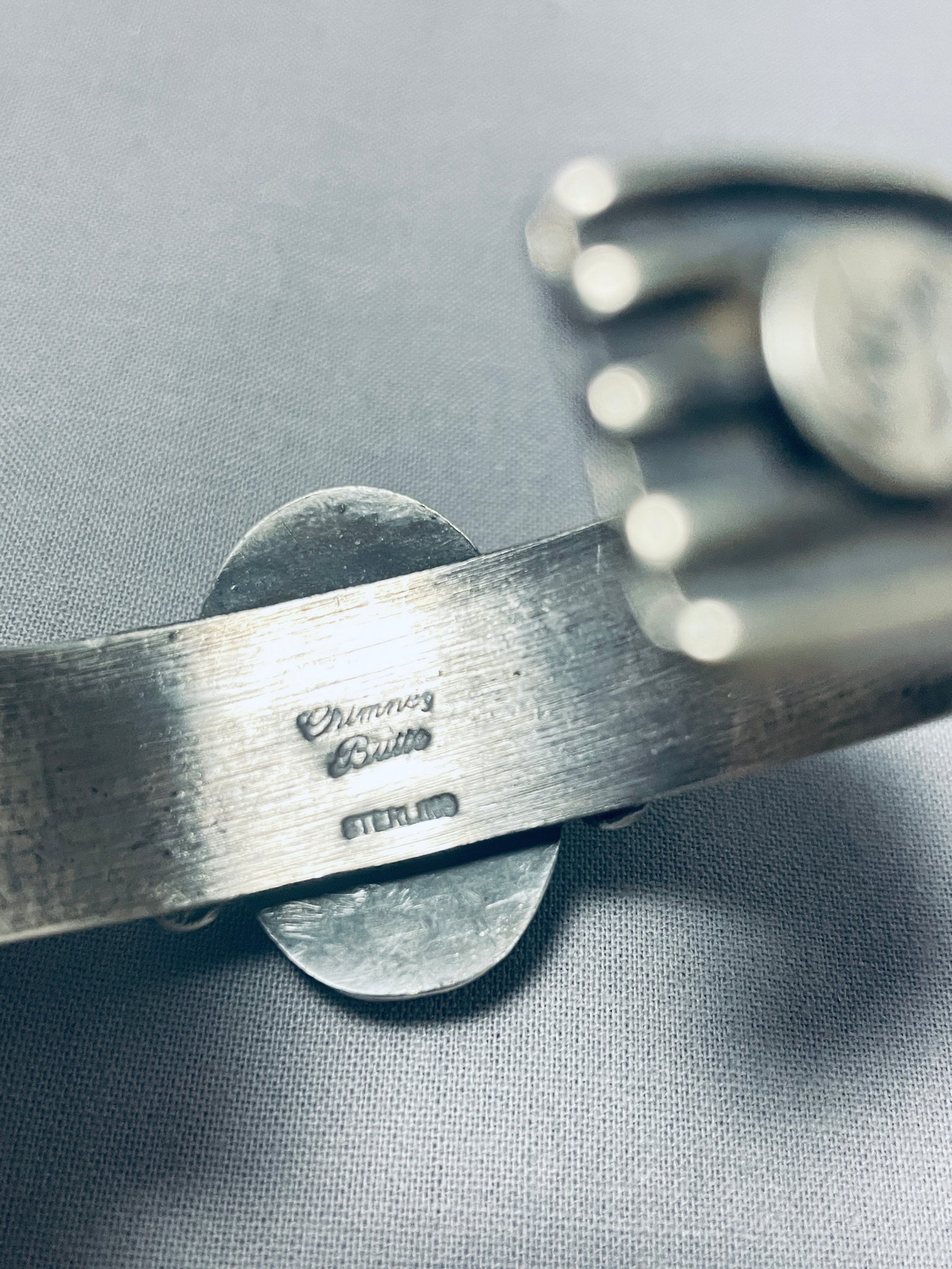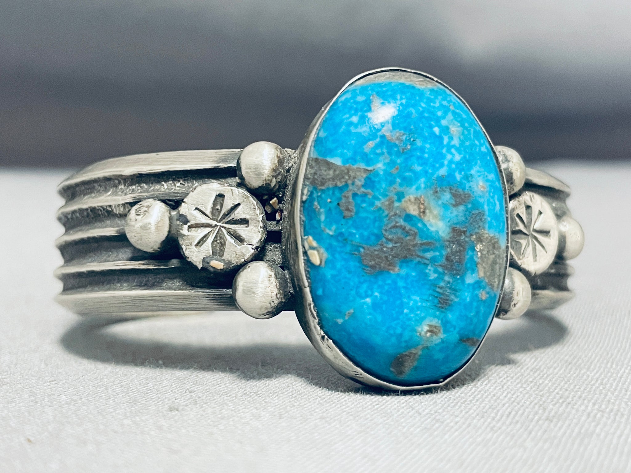 Stunning Native American Navajo Signed Turquoise Dome Sterling Silver Bracelet